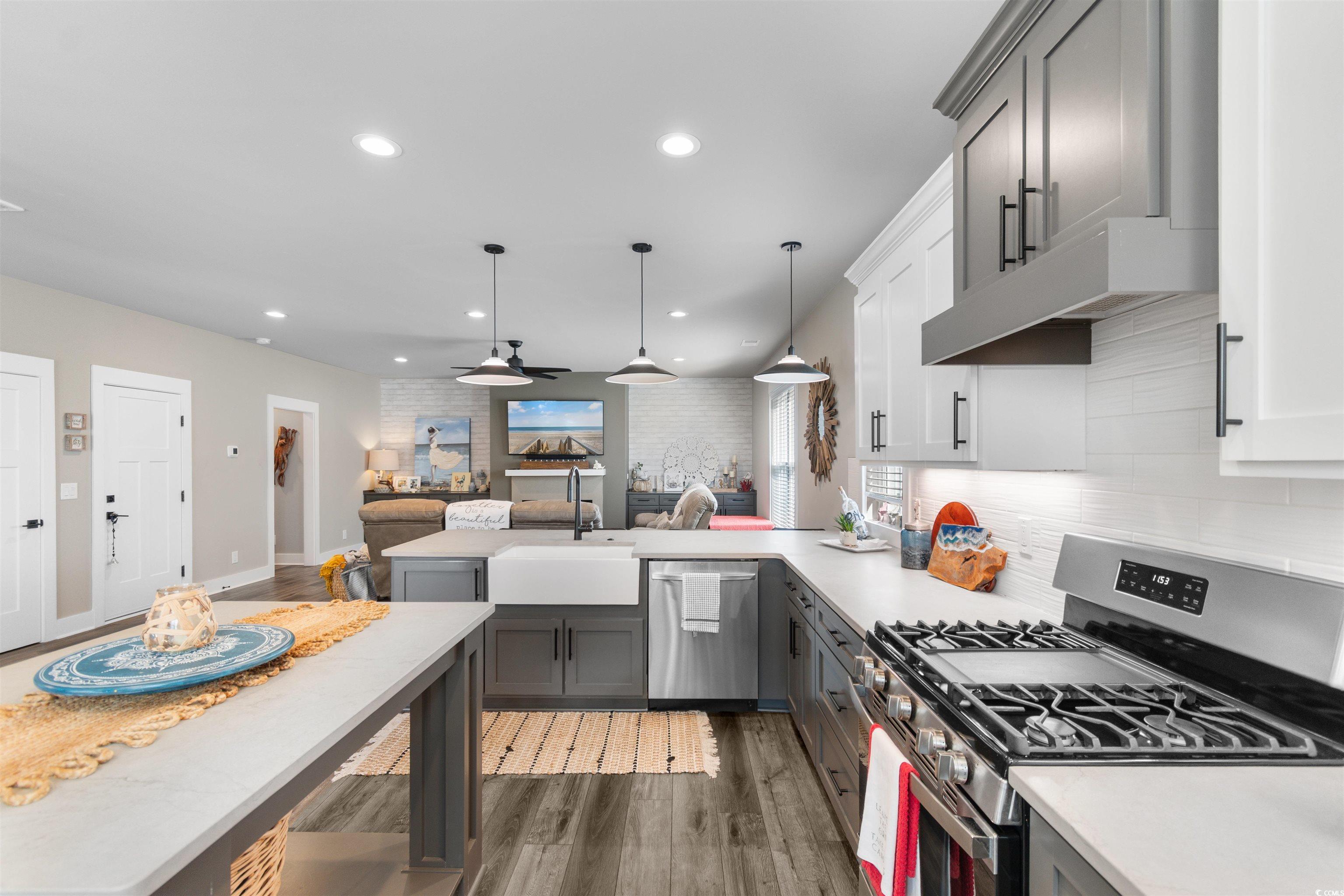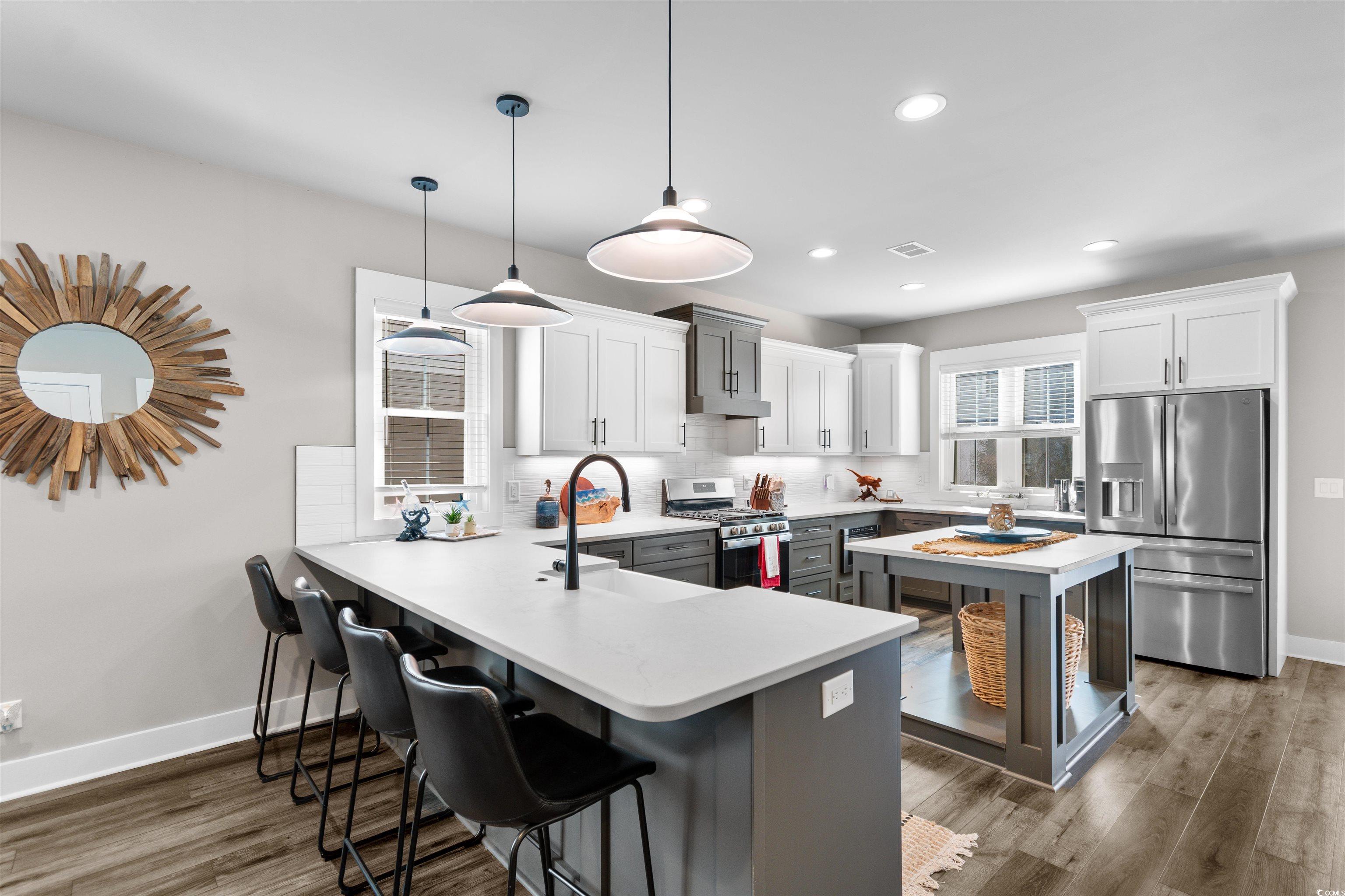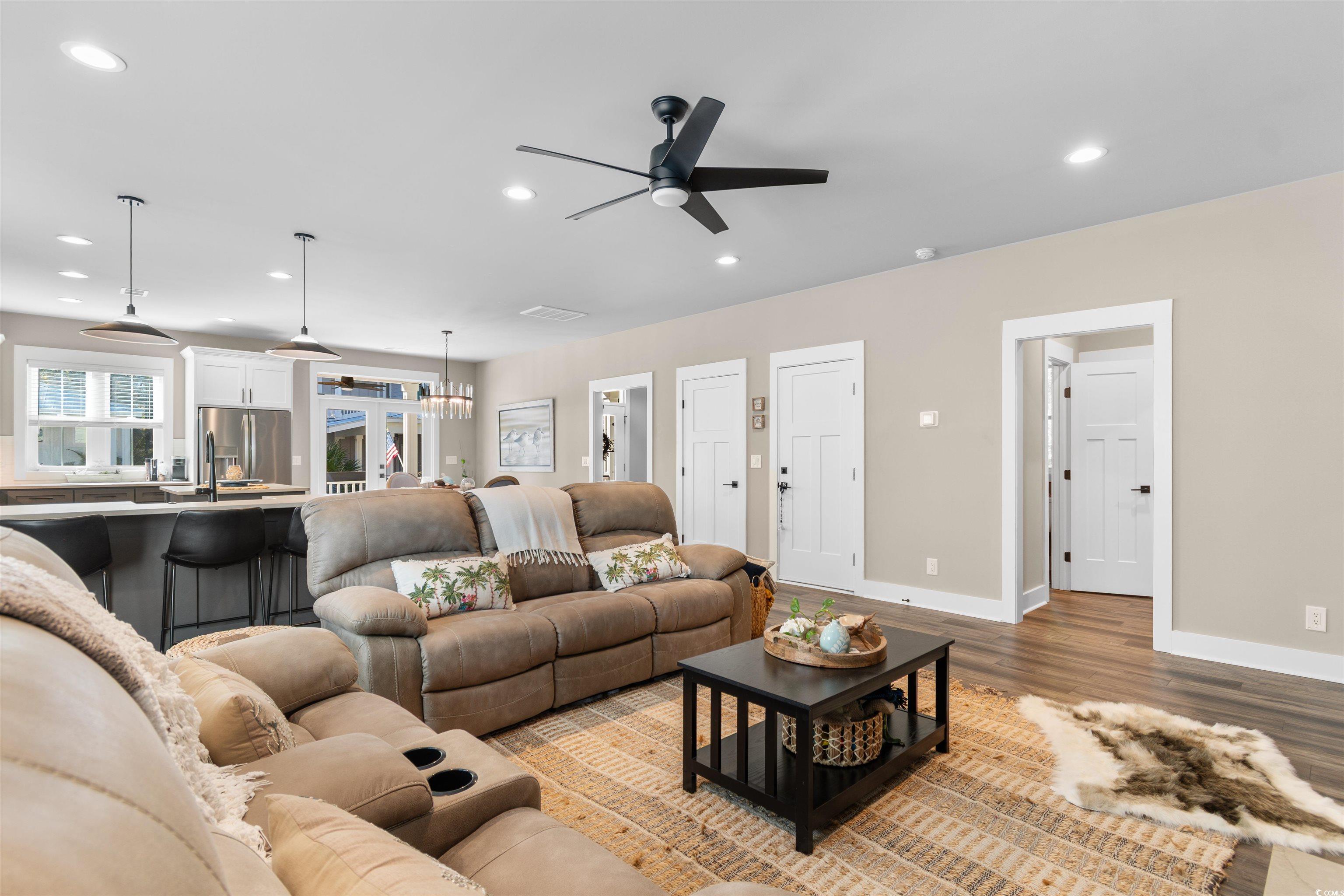 Welcome to this exquisite 3-bedroom, 2.5-bath raised beach home, located in the highly sought-after community of Marshland Park in Pawleys Island. With gorgeous details throughout, this home offers a perfect blend of comfort, style, and functionality—ideal for both everyday living and entertaining. Best of all, this beautiful home is being sold furnished, allowing you to move right in and start enjoying coastal living from day one! The open-concept main living space features a spacious and inviting floor plan that seamlessly connects the kitchen, dining, and living areas. The chef-inspired kitchen is a dream, complete with stainless steel appliances, a large center island, breakfast bar, and beautifully contrasting cabinetry. It opens into the cozy living room, where you’ll find a charming fireplace framed by custom built-ins, offering both warmth and extra storage. The living room flows out onto a private balcony—the perfect spot for sipping morning coffee or enjoying evening sunsets. The dedicated dining space offers plenty of room for hosting family and friends, making it ideal for gatherings. Upstairs, the primary suite is a true retreat, featuring a private balcony, a spacious bedroom, and an ensuite bath with an extended shower showcasing custom tilework and his-and-hers vanities. The two additional bedrooms share a beautifully appointed full bath with a dual-sink vanity and tub/shower combo. This home is thoughtfully designed for convenience, featuring built-in cabinetry in the laundry room for additional storage and organization. Every room showcases high-end finishes and thoughtful details that elevate the space and create a warm, welcoming atmosphere. Outside, the under-home area provides an incredible space for outdoor living—perfect for relaxing, entertaining, or storing beach gear. The additional storage area beneath the home keeps seasonal items neatly tucked away. Situated in a prime Pawleys Island location, you’ll be just moments from boutique shops, local restaurants, and, of course, the beach. This furnished, meticulously maintained home offers the perfect combination of luxury, comfort, and coastal charm—truly a slice of paradise in Marshland Park!