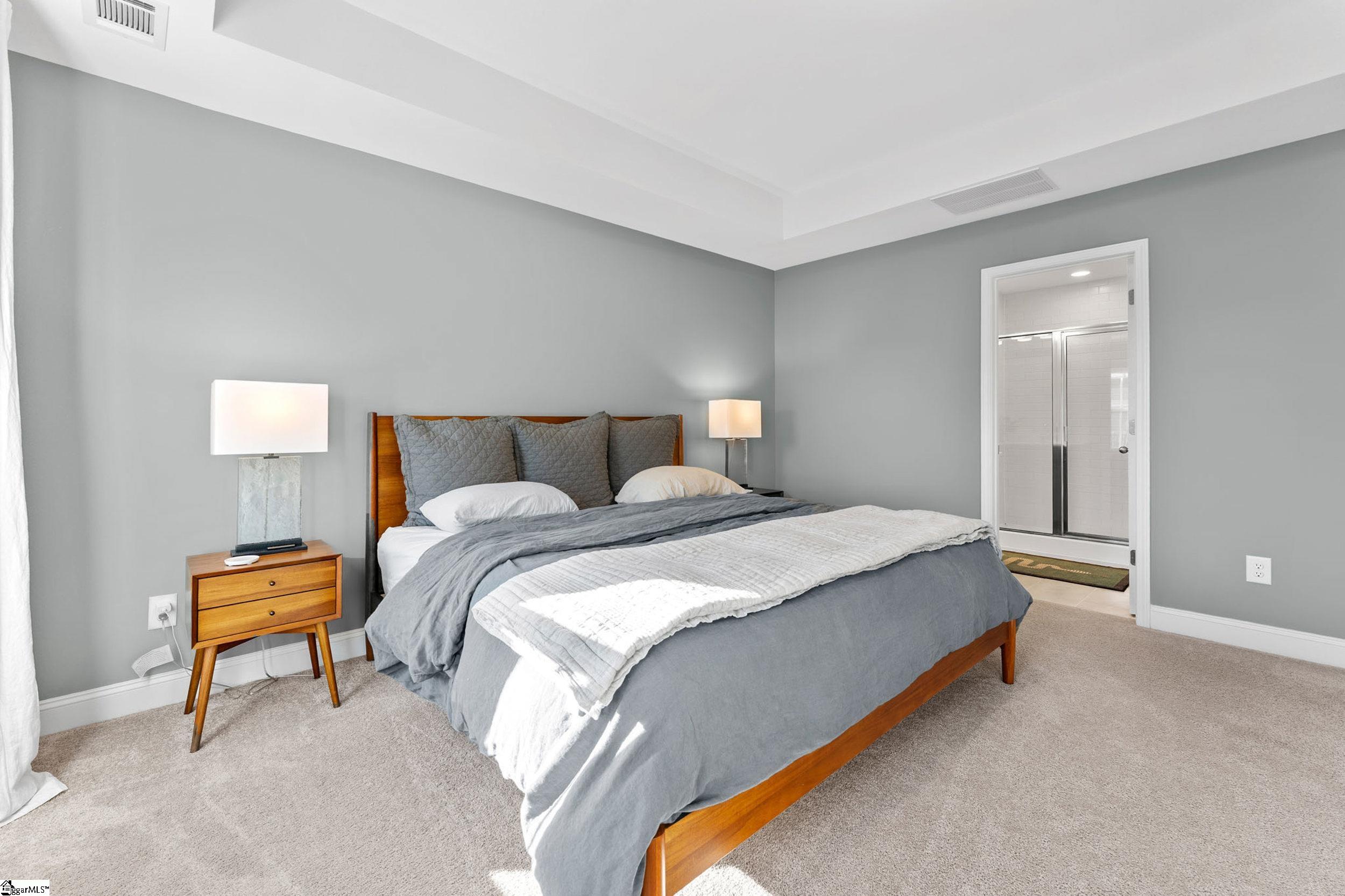 Welcome to 34 Red Horse Way in beautiful Greer, SC — your “better-than-new” model townhome that perfectly blends modern style, thoughtful upgrades, and that easy, low-maintenance lifestyle so many buyers are looking for right now. As the former model home in Saddlebrook Farm, this one already started with that designer sparkle — and the current owners elevated it even more with carefully chosen upgrades and meticulous care. It truly shows. From the moment you walk in, the extended foyer opens into a bright, airy living space with smooth 9’ ceilings and natural light that makes the whole home feel fresh and welcoming. The kitchen is absolutely the heart of it all, featuring 42” cabinets, quartz countertops, stainless appliances, recessed lighting, subway tile backsplash, and a large island that was made for gatherings, charcuterie nights, or slow mornings with coffee. Custom window treatments throughout add that extra touch, including top-down/bottom-up shades in the primary suite so you can enjoy privacy and sunshine exactly how you like it. Upstairs, the primary suite feels like a retreat with a tiled walk-in shower, dual adult-height vanities with quartz counters, ceramic tile flooring, and a spacious walk-in closet. Two additional bedrooms and another beautifully finished full bath offer flexibility for guests, a home office, or whatever season of life you’re in. Outside, you’ll love the fenced-in patio area — perfect for grilling, relaxing, or letting furry friends roam — plus a dedicated storage room and one-car garage for that extra space we all appreciate. Saddlebrook Farm offers charming craftsman-style architecture, a walking trail around the neighborhood pond, and even a dog park, creating a community that feels welcoming and connected. And the location truly delivers — just minutes to Downtown Greer, GSP Airport, I-85, and centrally positioned between Greenville and Spartanburg, with Riverside schools. If you’ve been waiting for a move-in ready townhome that feels elevated but still warm and livable, this is it.