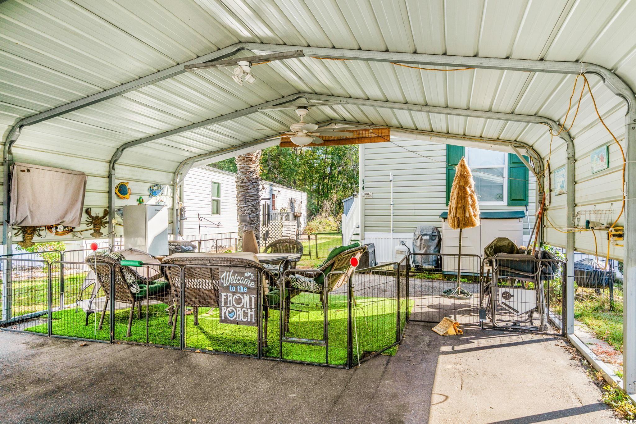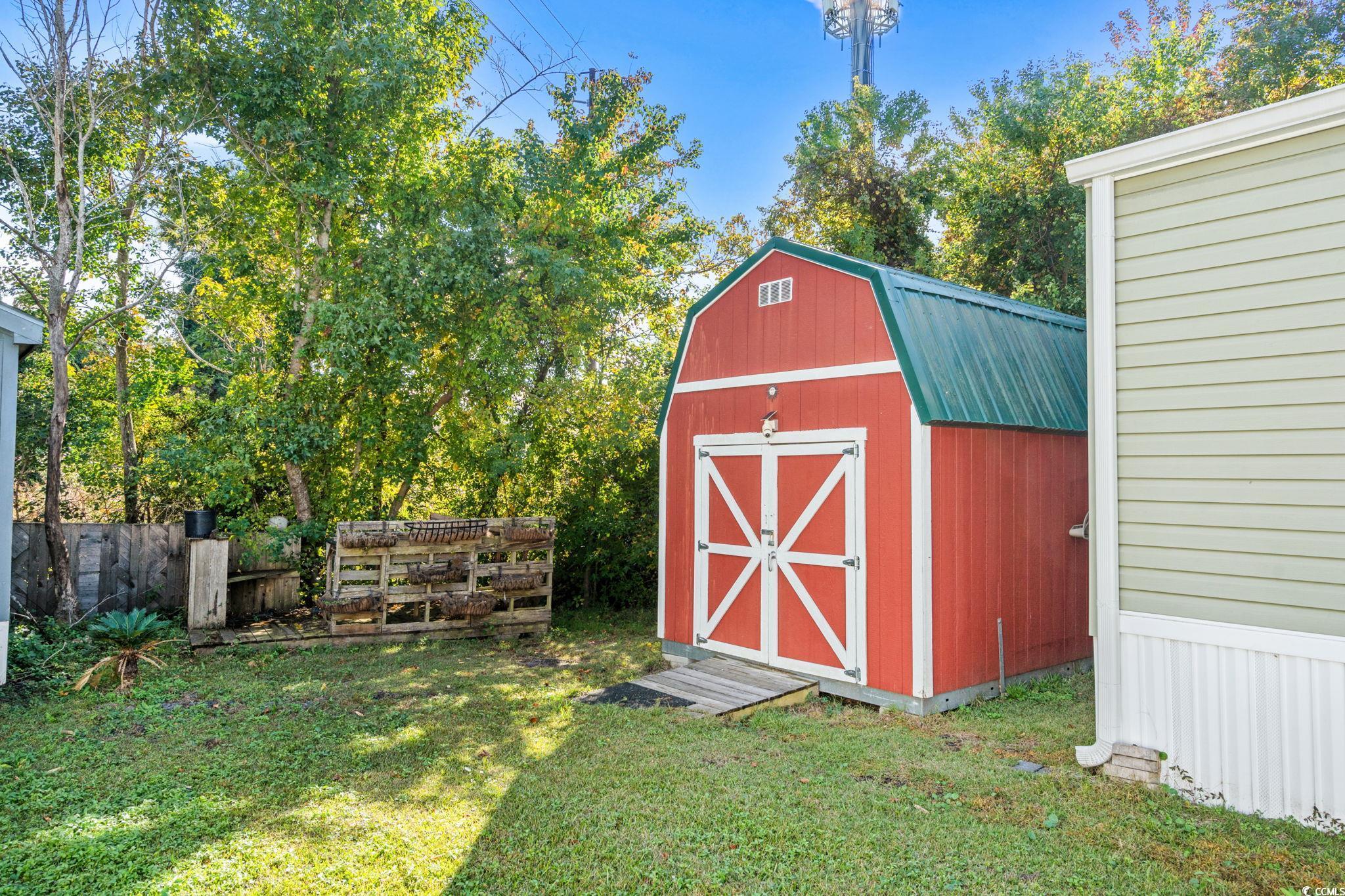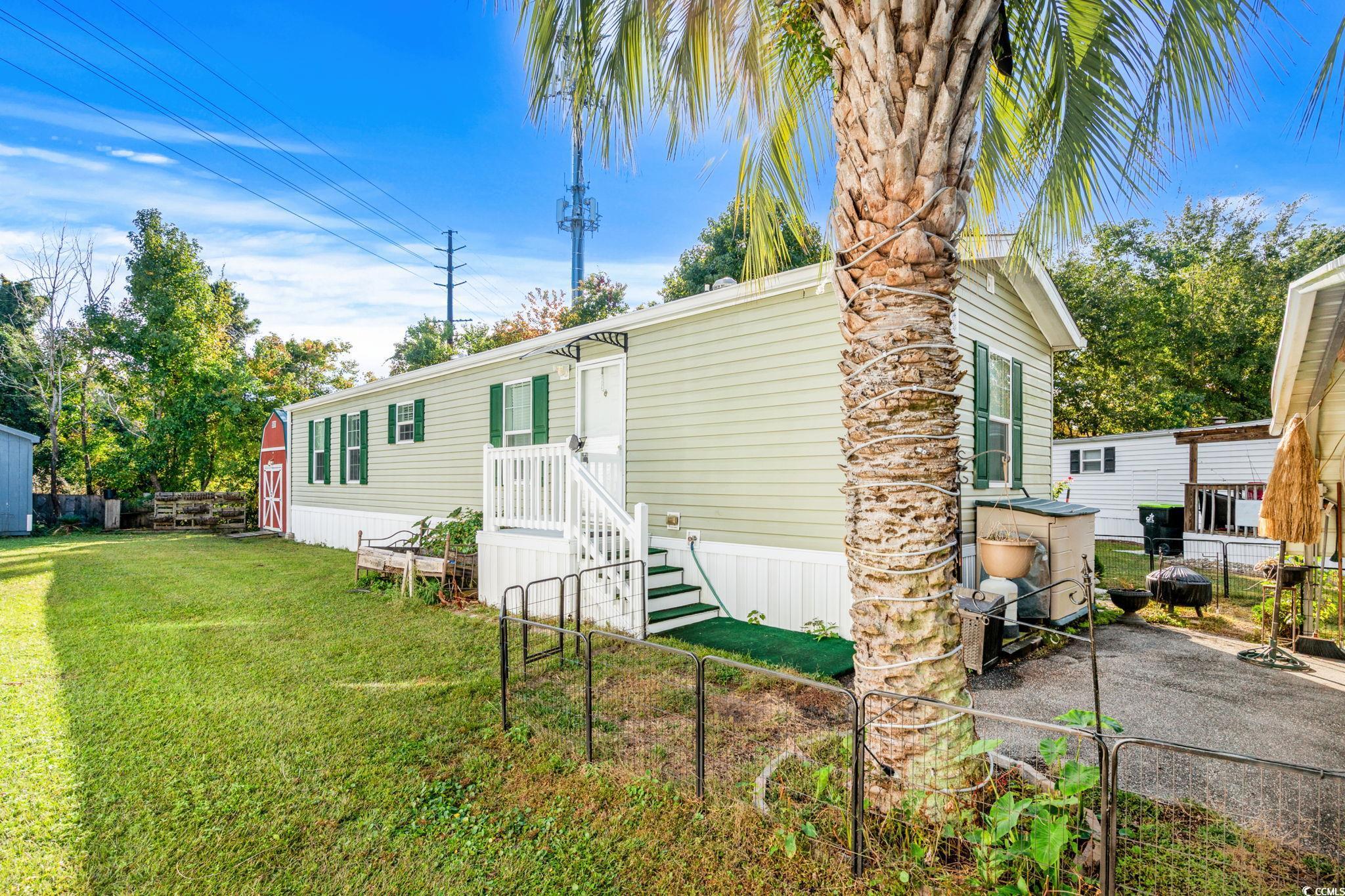 Discover comfort and convenience in this inviting 2-bedroom, 2-bathroom manufactured home located in the sought-after community of Windjammer Village. The open floor plan creates a welcoming flow between the main living areas, highlighted by a warm color palette that adds to the home’s cozy charm. The kitchen provides plenty of space for meal prep and storage, while the adjoining dining and living areas make it easy to relax or entertain. The primary bedroom offers a peaceful retreat with a ceiling fan, private bathroom featuring extra storage, and a spacious shower. A split bedroom layout ensures privacy, with the second bedroom and full bathroom situated on the opposite side of the home. Enjoy the outdoors from your covered carport or relax in the backyard that backs up to a wooded area for added privacy. A storage shed provides additional convenience for tools or beach gear. Windjammer Village residents enjoy access to a refreshing community pool and a friendly, coastal atmosphere. The location is hard to beat, less than two miles from the pier and the sandy shores of Garden City Beach, where you can spend your days enjoying the ocean breeze and local seaside attractions. Just under three miles away, the renowned Marsh Walk in Murrells Inlet offers waterfront dining, live music, and a vibrant mix of popular eateries to explore. The community also provides easy access to shopping, golf, and entertainment, making it a wonderful choice for those seeking both relaxation and convenience whether as a full-time residence or a coastal getaway. HOA information has been provided to the best of our ability. All information should be verified and approved by the buyer. Square footage is approximate and not guaranteed. The buyer is responsible for verification.