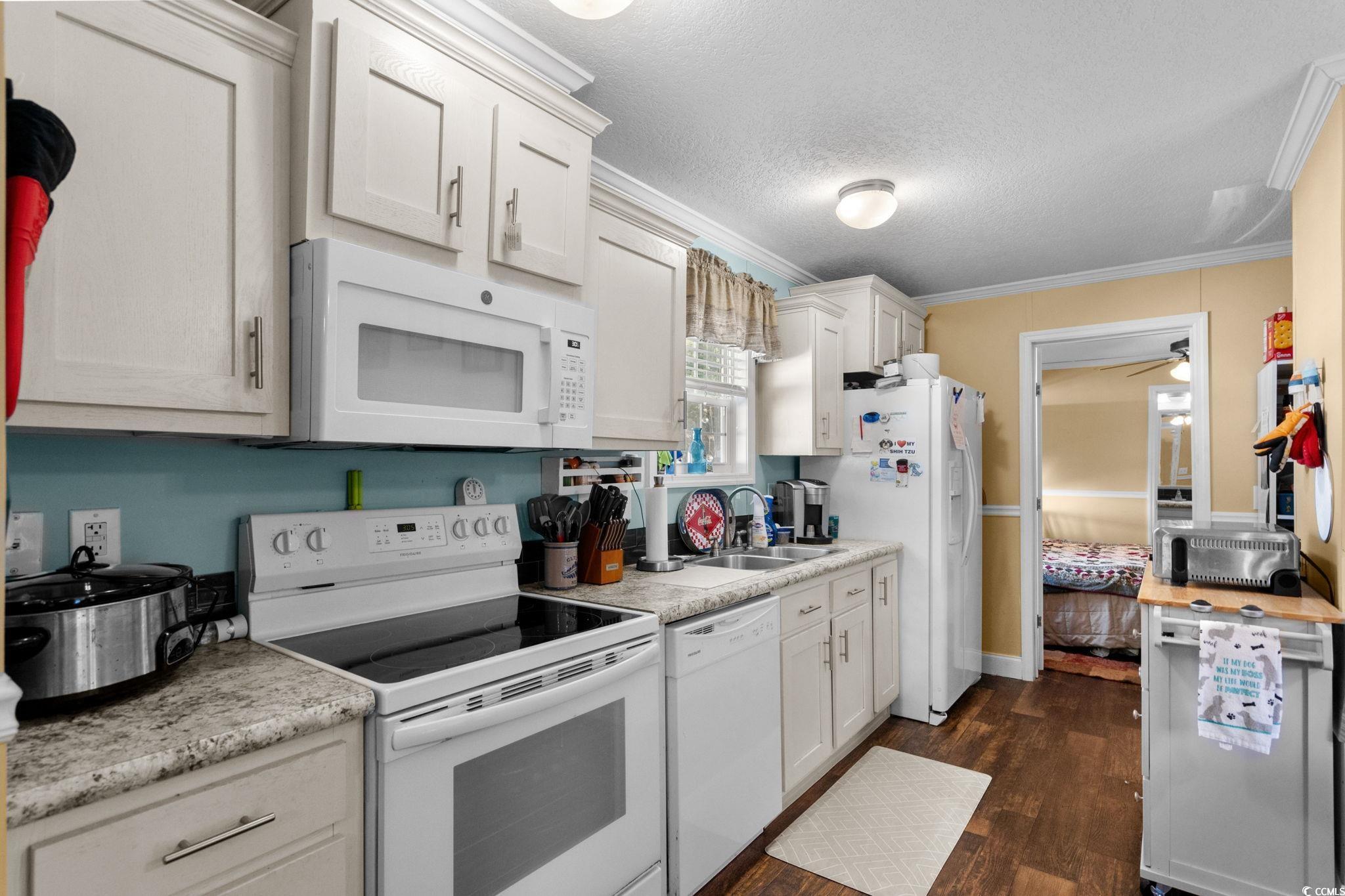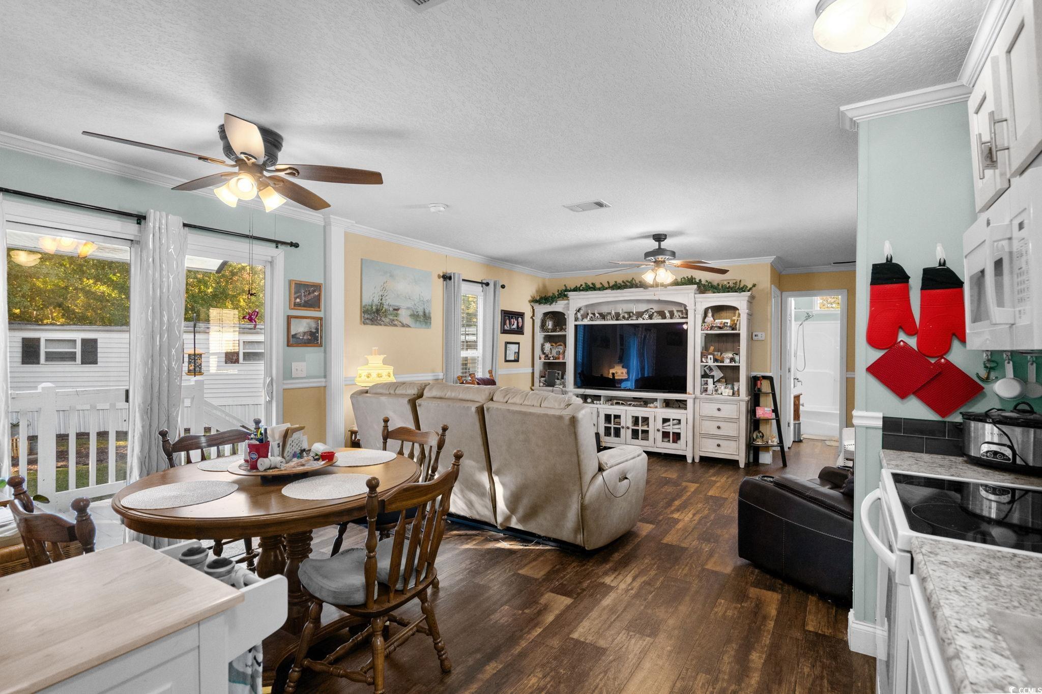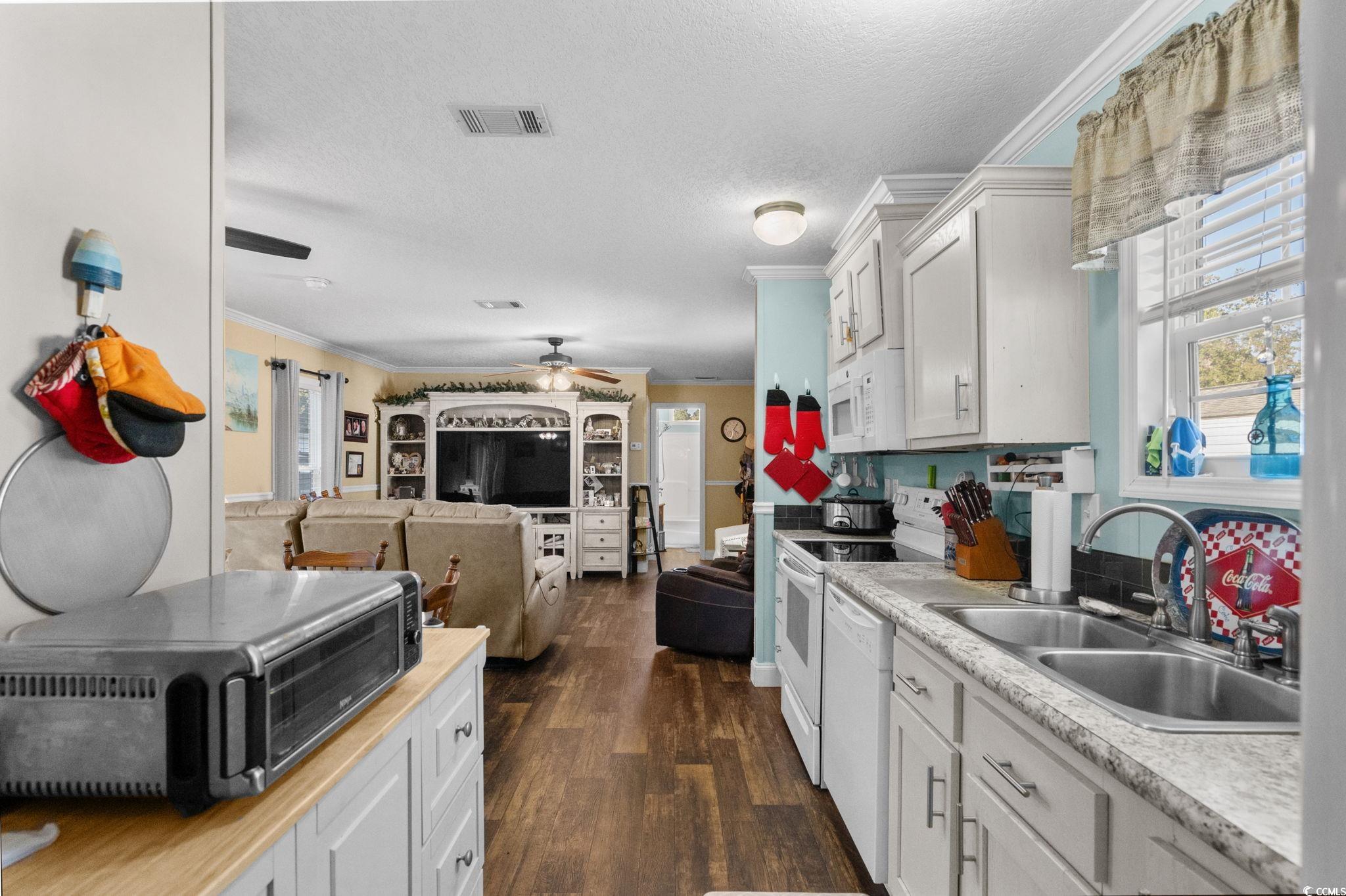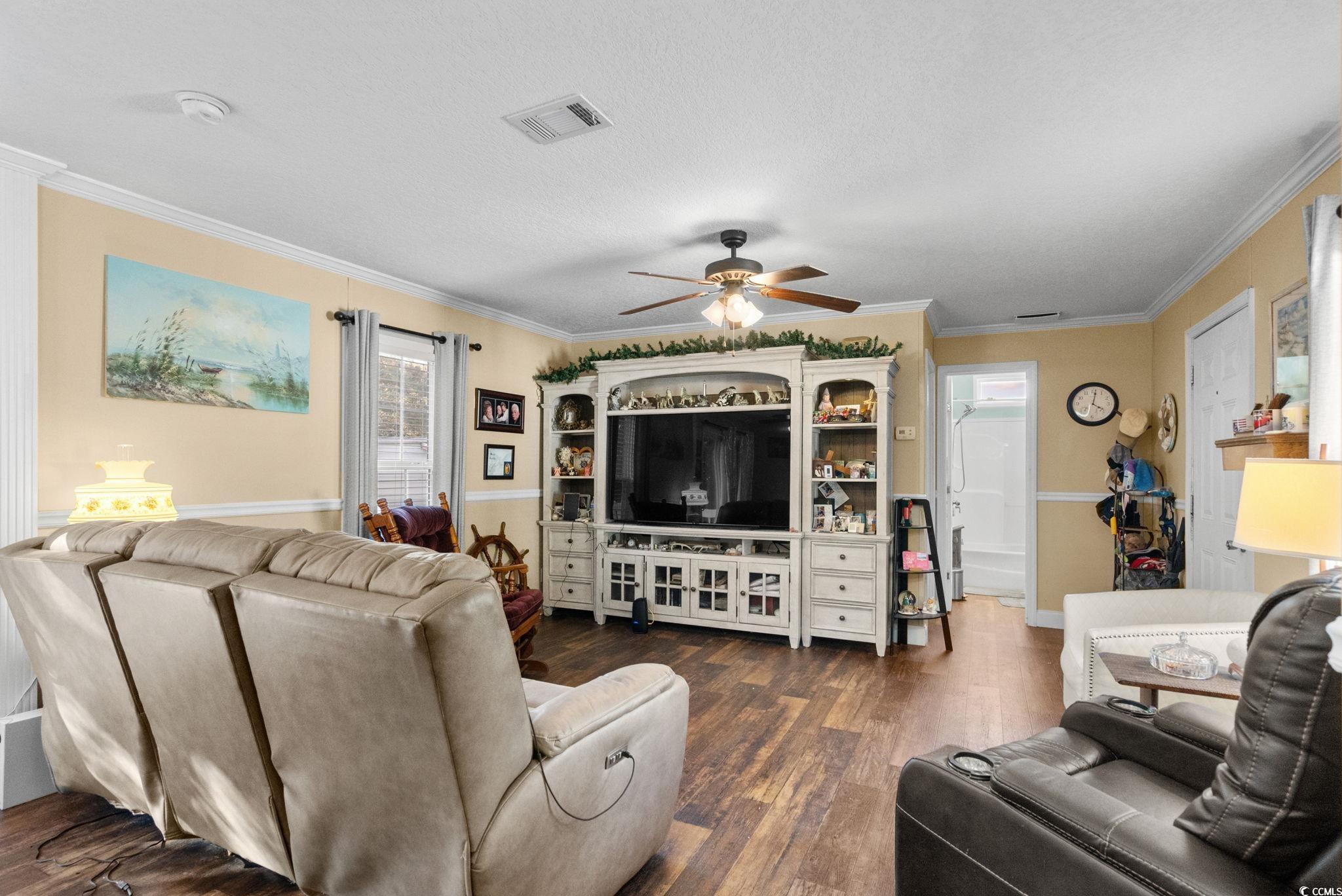 Discover comfort and convenience in this inviting 2-bedroom, 2-bathroom manufactured home located in the sought-after community of Windjammer Village. The open floor plan creates a welcoming flow between the main living areas, highlighted by a warm color palette that adds to the home’s cozy charm. The kitchen provides plenty of space for meal prep and storage, while the adjoining dining and living areas make it easy to relax or entertain. The primary bedroom offers a peaceful retreat with a ceiling fan, private bathroom featuring extra storage, and a spacious shower. A split bedroom layout ensures privacy, with the second bedroom and full bathroom situated on the opposite side of the home. Enjoy the outdoors from your covered carport or relax in the backyard that backs up to a wooded area for added privacy. A storage shed provides additional convenience for tools or beach gear. Windjammer Village residents enjoy access to a refreshing community pool and a friendly, coastal atmosphere. The location is hard to beat, less than two miles from the pier and the sandy shores of Garden City Beach, where you can spend your days enjoying the ocean breeze and local seaside attractions. Just under three miles away, the renowned Marsh Walk in Murrells Inlet offers waterfront dining, live music, and a vibrant mix of popular eateries to explore. The community also provides easy access to shopping, golf, and entertainment, making it a wonderful choice for those seeking both relaxation and convenience whether as a full-time residence or a coastal getaway. HOA information has been provided to the best of our ability. All information should be verified and approved by the buyer. Square footage is approximate and not guaranteed. The buyer is responsible for verification.