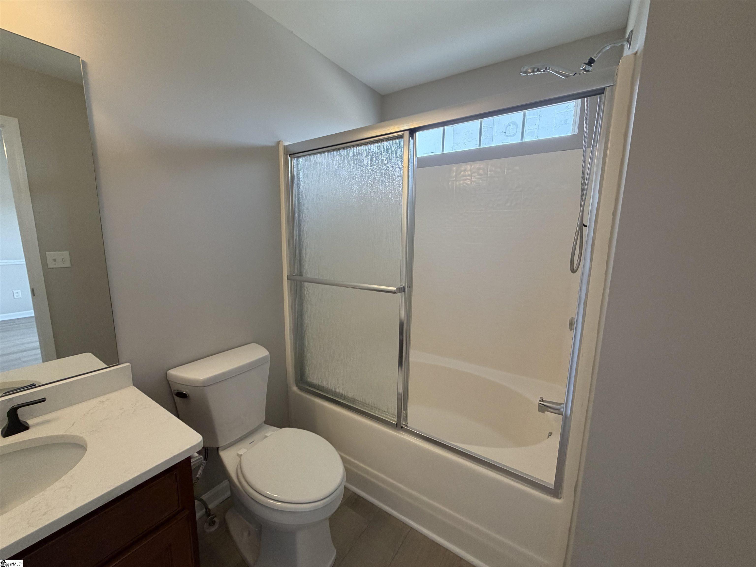 Move-in ready townhome in desirable Lismore Village in Greer offering nearly 1,500 square feet of stylish, low-maintenance living near the award winning Riverside Schools. Fresh interior paint and luxury vinyl plank flooring throughout the home (with the exception of the stairs), create a clean, modern feel, while the open floor plan and 9-foot ceilings make the main living area feel bright and spacious. The kitchen is designed for both functionality and style, featuring beautiful granite countertops, abundant cabinetry, a pantry, and a convenient breakfast bar—perfect for casual dining or entertaining guests. Whether hosting friends or enjoying a quiet night at home, this kitchen has everything you need. Also on the main level is a convenient half bath and laundry closet, with a washer and dryer less than three years old that convey with the home. Step outside to the private fenced backyard, offering the perfect space for relaxing, grilling or outdoor entertaining. There is also a storage room off the patio for added convenience. Upstairs, you’ll find two oversized bedrooms with vaulted ceilings, each with its own full bathroom. The primary suite features two walk-in closets and an en-suite bathroom with a relaxing garden tub, creating a comfortable retreat at the end of the day. This townhome offers low-maintenance living, with the HOA covering exterior maintenance, lawn care, and termite bond.The location is unbeatable and is within walking distance to highly regarded schools, shopping, and Riverside Park, which features pickleball courts, ball fields, playground, and picnic areas. Conveniently located near downtown Greer, I-85, Pelham Road, and GSP International Airport, this home offers easy access to everything the Upstate has to offer. Don’t miss the opportunity to make this beautifully maintained townhome your new home.
