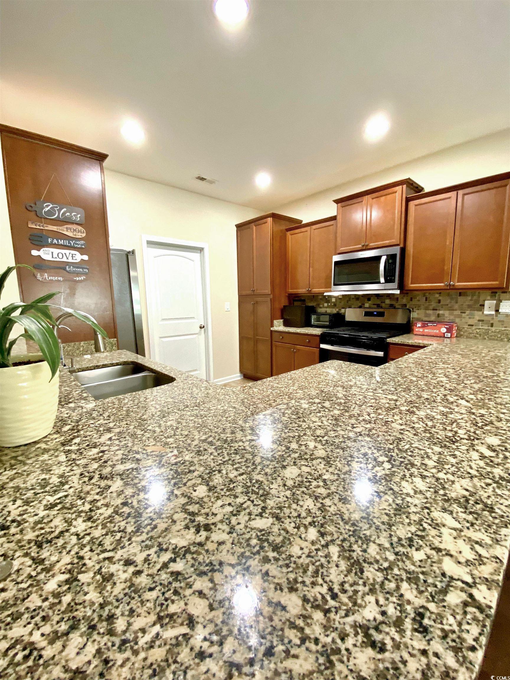 5 bedrooms, 3 full bathrooms. Master bedroom, 2 bedrooms, 2 full bathrooms downstairs. 2 bedrooms, 1 full bathroom and den (can be a living room). upstairs. Kitchen: granite counter top, stainless steel appliances, dining area. Backyard: screen covered porch, 20'x10' custom built storage house, patio, nice landscaping. Fully sprinkler, garage screened. Schedule for a tour, you won't be disappointed. The price IS INCLUDED FULLY FURNISHED, WASHER, DRYER, ALL LAWN TOOL EQUIPMENTS. REDUCED PRICE FOR A QUICK SALE TO MOVE!!!