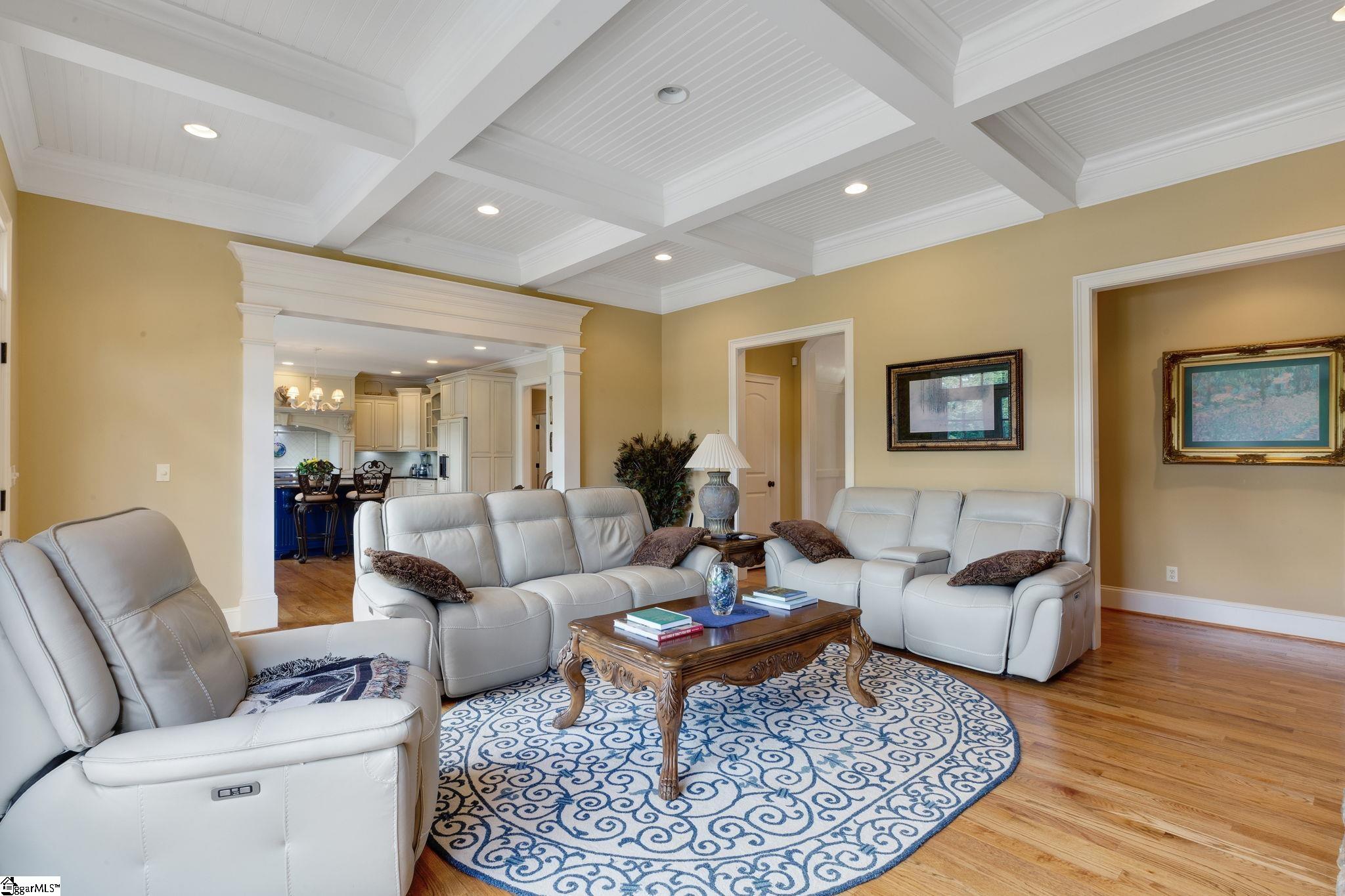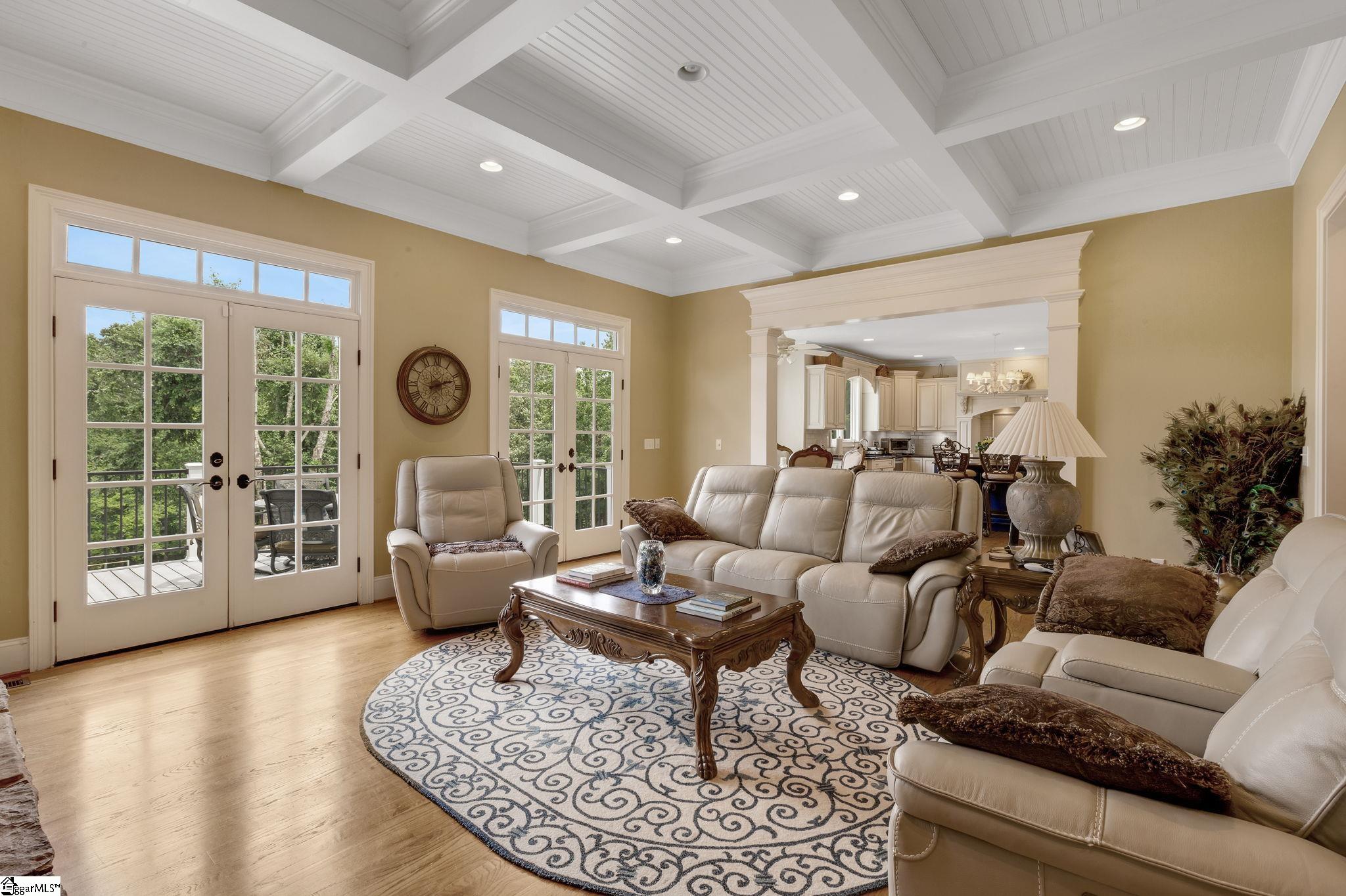 BRICK PAVERS lead you to an inviting FRONT PORCH. A dramatic DOUBLE DOOR ENTRY opens into a spacious FOYER, where the home's craftsmanship is immediately evident in the DETAILED MOLDINGS and a stunning BARREL ARCHWAY leading into the living room. There, your eye is drawn to the COFFERED CEILING, a striking STONE GAS-LOG FIREPLACE, and built-in shelving on either side. DOORS TO THE COMPOSITE DECK provide views of the INGROUND SALTWATER POOL. The oversized KITCHEN is a chef’s dream, featuring a LARGE GRANITE ISLAND WITH SINK, STAINLESS STEEL APPLIANCES, TILED BACKSPLASH, 5-STAR 6-BURNER WITH GRIDDLE GAS RANGE, UNDER-CABINET LIGHTING, and a WALK-IN PANTRY. A separate BUTLER’S PANTRY offers additional storage and serving space for the adjacent DINING ROOM, which is enhanced by a TRAY CEILING, CHAIR RAIL, and WAINSCOTING. The LAUNDRY ROOM includes a built-in office area with DESK and UTILITY SINK, while the MUD ROOM off the garage is generously sized with room for an extra refrigerator, coat and shoe storage, plus a HALF BATH. The PRIMARY BEDROOM on the main level features PLANTATION SHUTTERS, DUAL VANITIES, a WALK-IN CLOSET WITH BUILT-INS, CUSTOM TILE SHOWER, and WATER CLOSET. Upstairs, you'll find a SECOND PRIMARY BEDROOM with VAULTED CEILINGS, WALK-IN CLOSET, and EN-SUITE BATHROOM. Another bedroom currently used as an office could also serve as a school room or playroom and includes an EN-SUITE BATH. The third upstairs bedroom features a charming READING NOOK, EN-SUITE BATH, and a LARGE CLOSET WITH ATTIC ACCESS. A versatile FLEX AREA leads to the PARTIALLY FINISHED SPACE ABOVE THE 3-CAR GARAGE, which includes a STAIRWAY BACK TO THE GARAGE. The WALK-OUT BASEMENT is an entertainer’s dream plumbed for a 2nd kitchen with space for a home theater or game room, plus another BEDROOM AND FULL BATH, and DOORS LEADING TO THE STONE PATIO under the deck and out to the pool. Outside, you’ll find a FENCED AREA AND BARN FOR HORSES, with a ROUND PEN just beyond for exercise and training. Additional highlights include: FOAM INSULATION IN THE ATTIC, FRONT YARD SPRINKLER SYSTEM, WHOLE HOUSE GENERATOR, RADON SYSTEM WITH 2 FANS, 1-YEAR-OLD POOL LINER, and SURROUND SOUND IN KITCHEN, LIVING ROOM, AND BACK PORCH. Hidden Gem. Surrounded by tall beautiful trees, with a flowing water stream. But close to a variety of shopping; the sought after Dorman High School Campus; and State Parks with walking, biking, and horseback riding trails.