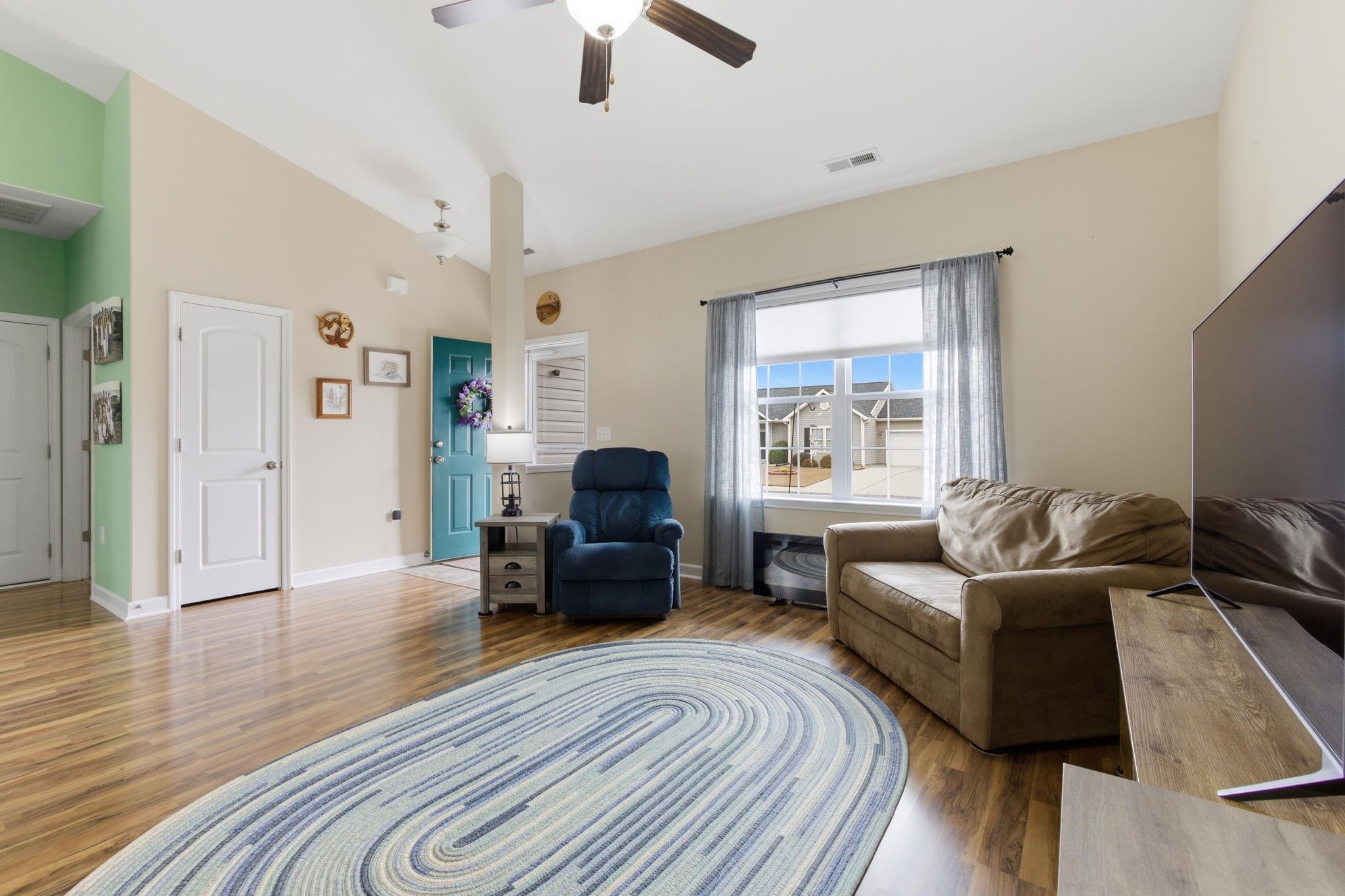 Welcome to 340 Oak Crest Circle, a beautifully maintained ranch-style patio home located in the desirable Myrtle Lakes North community, offering comfort, thoughtful upgrades, and easy coastal living just minutes from North Myrtle Beach. This well-cared-for home features major system updates, including a new roof in 2019, water heater replaced in 2022, and HVAC installed in 2023 by One Hour Heating & Cooling, providing peace of mind for years to come. Additional upgrades include a retaining wall redone in 2024, electric SunSetter awning (2016), front and back storm doors, gutters with gutter guards, TAEX in-wall pest control system, sprinkler system, and a whole-house power surge protector at the main electrical box. The washer and dryer convey, making this home truly move-in ready. Step onto the inviting covered front porch with mulch and paver landscaping, and enter through the storm door into a tile foyer. The spacious living room offers laminate flooring, vaulted ceilings, and a ceiling fan, flowing seamlessly into the dining area and kitchen—perfect for entertaining or everyday living. The kitchen features ample cabinetry and counter space, black appliances, a corner pantry, kitchen island, garbage disposal, and vaulted ceilings that enhance the open feel. The back door includes built-in blinds and a storm door, leading to a wooden back porch with an electric awning, ideal for relaxing outdoors. The split-bedroom layout provides privacy and functionality. The guest bedroom features carpet flooring, a closet, and a rear-facing window. The hallway guest bathroom includes a tub/shower combo, vanity, toilet, and linen closet. The third bedroom also offers carpet flooring and a closet. The spacious primary suite includes tray ceilings, a ceiling fan, plush carpet, a large walk-in closet, and an en-suite bathroom with double-sink vanity, soaking tub, separate glass-enclosed shower, and linoleum flooring. The laundry room is generously sized with a window and Samsung washer and dryer. The attached two-car garage features concrete flooring, shelving, and pull-down attic stairs for extra storage. Located in Myrtle Lakes North, residents enjoy low HOA fees, sidewalks, a community pool with sun deck, and a peaceful neighborhood atmosphere. Situated just 15 minutes from Cherry Grove Beach, and close to Highway 9, shopping, dining, golf, and entertainment, this home offers the perfect balance of quiet living and coastal convenience. Homes like this don’t last schedule your private showing today and see why 340 Oak Crest Circle is the perfect place to call home.
