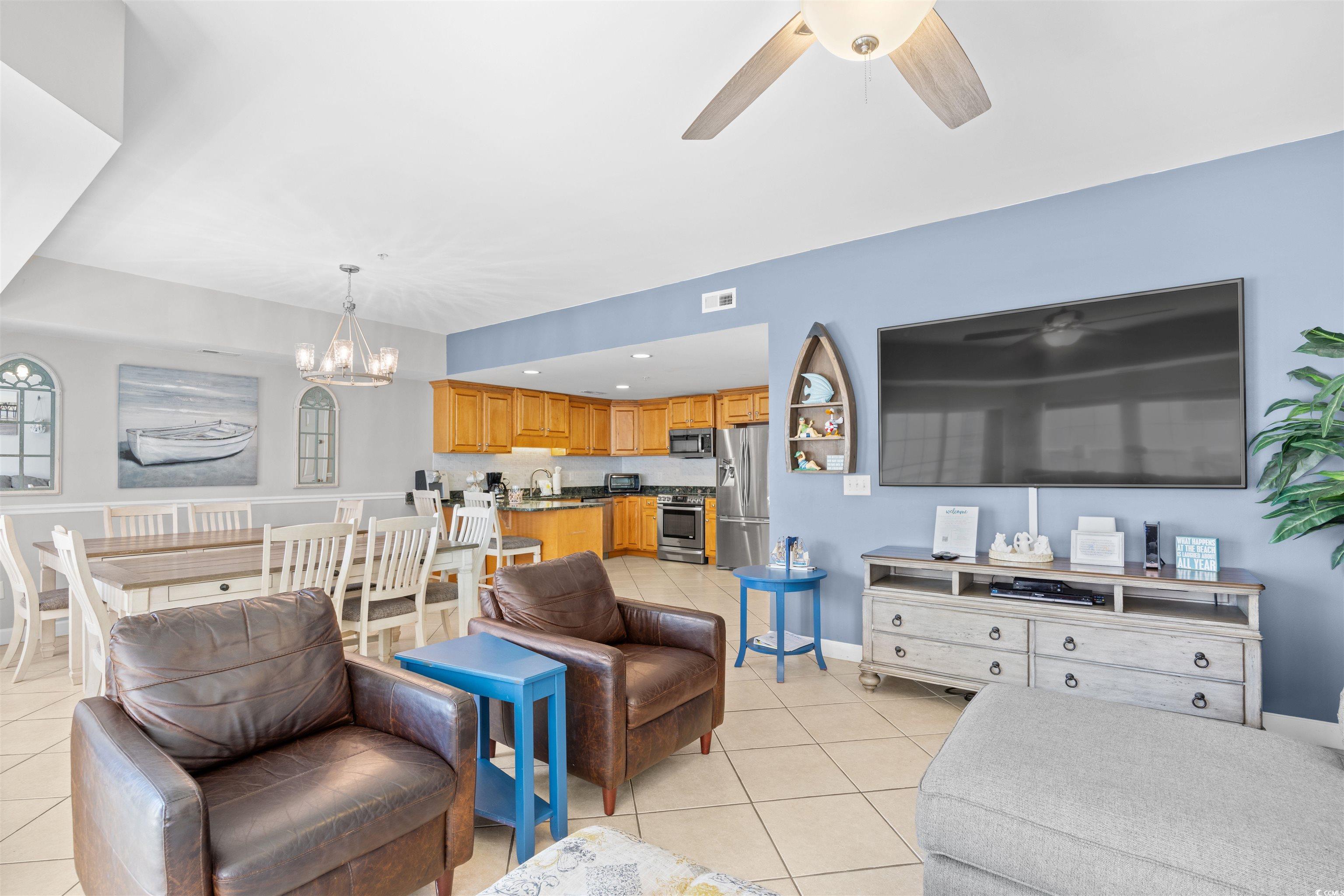 Ocean View Building with peaks of the ocean from balcony! Welcome to your ultimate beach getaway! Just steps from the sand and iconic Cherry Grove Pier, this spacious 6-bedroom, 4-bathroom condo in the popular Pier Watch complex is perfect for large families or group retreats. Spread across two stories, this fully furnished retreat offers convenient elevator access, on-site parking, and modern comfort throughout. Relax in the large great room, complete with comfy seating and access to a private balcony where you can catch glimpses of the ocean and feel the sea breeze. Main Level Features two bedrooms (one w/king, other w/queen), bathroom with tub/shower combo, fully equipped kitchen with stainless steel appliances, plenty of counter space and a Dining area with seating for 12, plus 4 at the island bar. Upstairs Highlights 4 bedrooms, 2 of which ocean-facing rooms with ensuite baths and shared balcony each with a king bed and two rooms with queen beds sharing a full hall bath. Hall Laundry room with full-size washer and dryer. Enjoy access to two outdoor pools and a hot tub—all just a quick stroll from the beach. The condo has been well maintained, with recent upgrades including a new water heater, and 2 new HVAC units installed in last 2-3 years. There's also plenty of locked storage inside the unit, perfect for your owners' closet supplies during quick turnarounds or longer stays. Whether you’re soaking in the sun or watching the waves roll in, this Cherry Grove gem is your perfect home base for a memorable coastal escape.