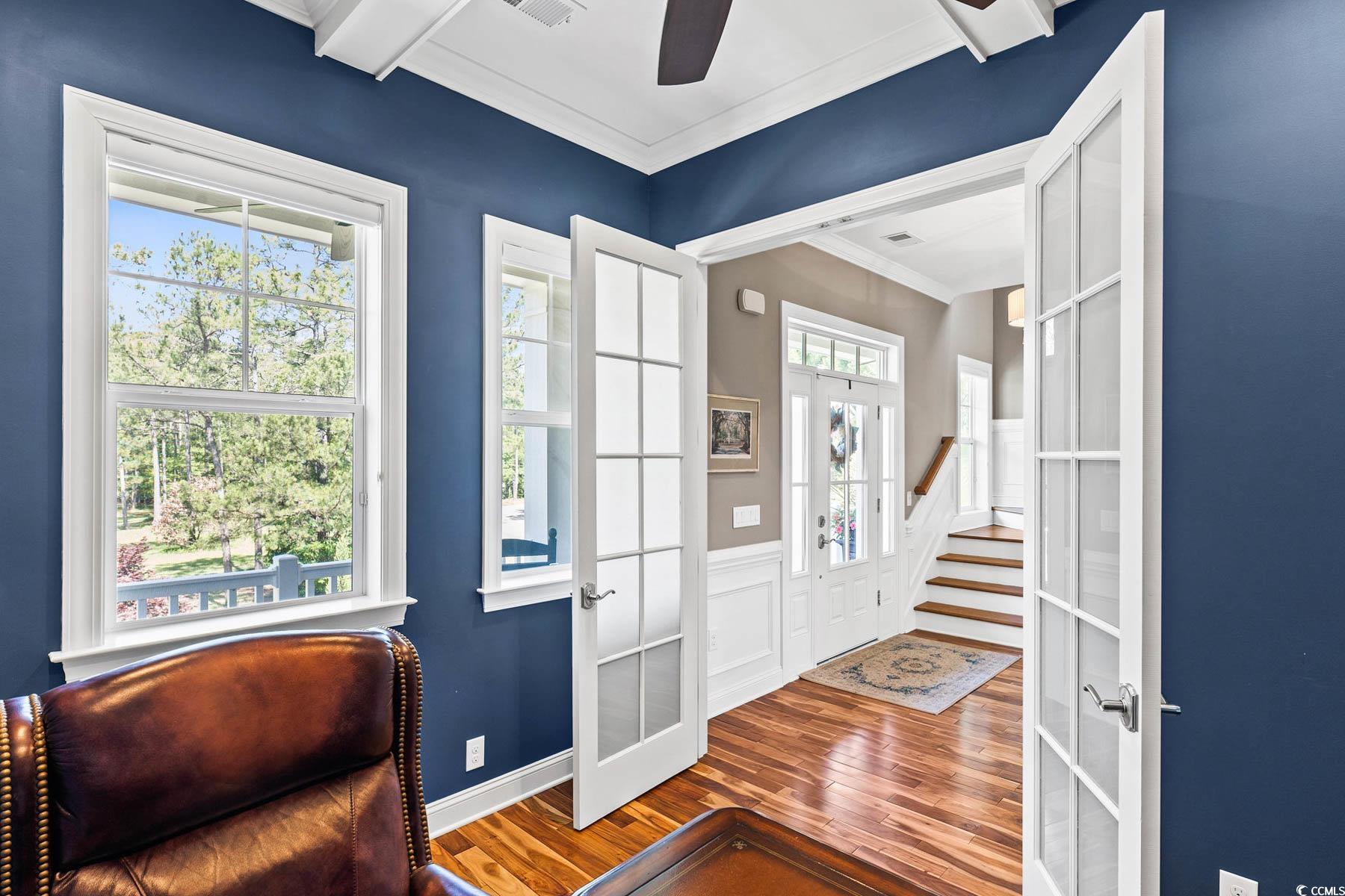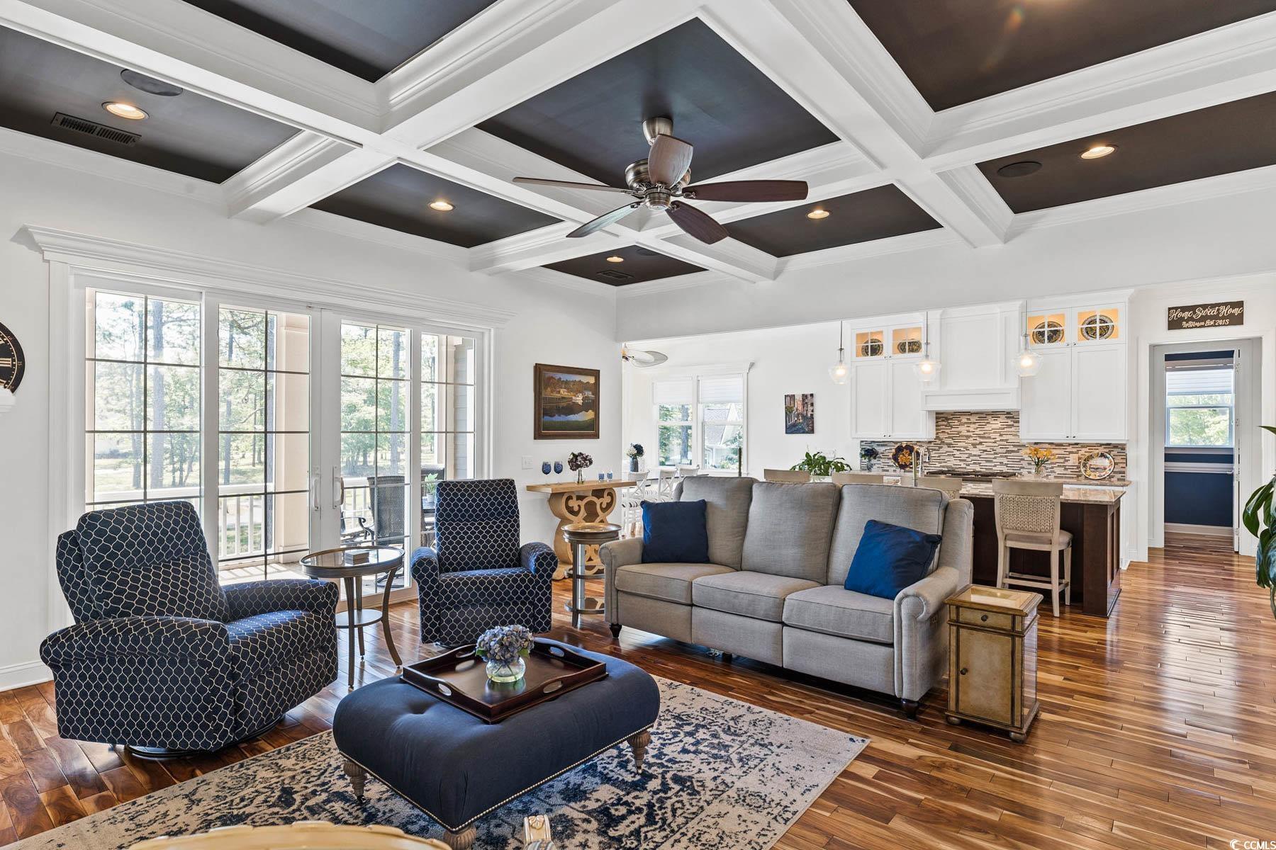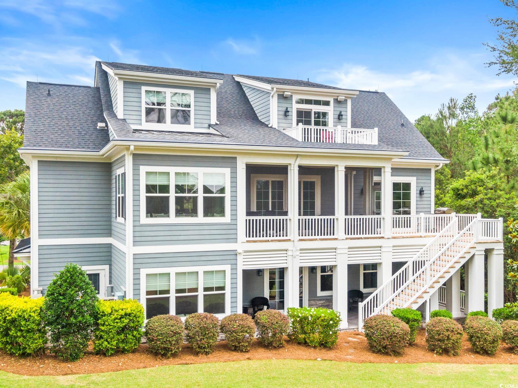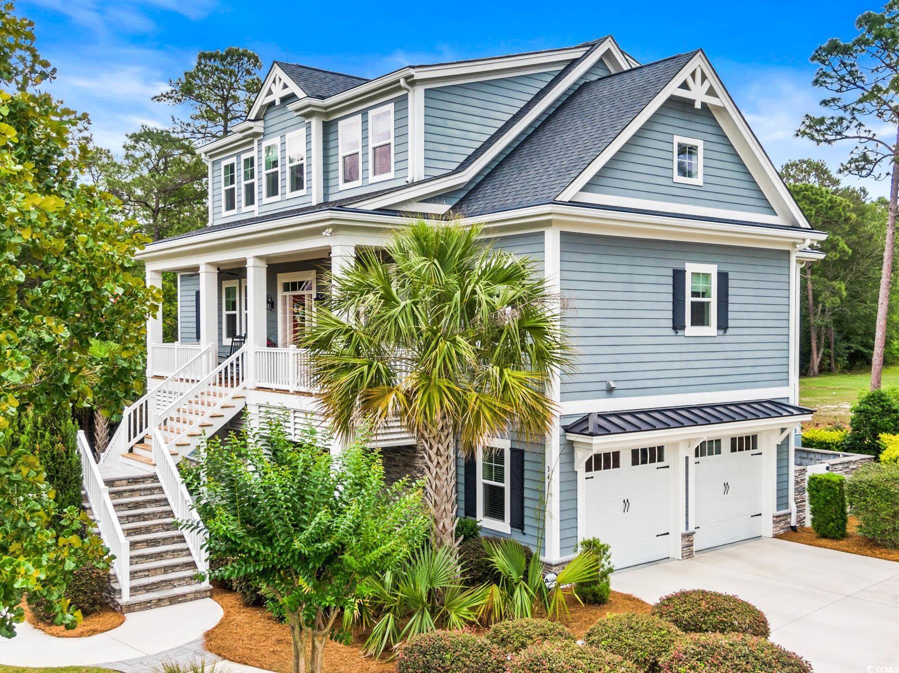 Welcome to 341 Bay Hill Court, an extraordinary custom-built home by Ernie Crews, artfully situated on the 7th tee of the renowned Arnold Palmer designed course in Rivers Edge. Listed below a recent appraisal, this home offers exceptional value. With sweeping, unobstructed views down the fairway & 2.5+ acres of nature preserve to the left, this setting provides rare privacy & breathtaking beauty - where every sunrise greets you over the golf course & every evening ends in quiet, golden stillness. Step into craftsmanship rarely found: 10+ foot ceilings, rich hardwood floors, crown molding throughout, a propane fireplace framed by custom built-ins, & a coffered ceiling anchoring the living room. The chef's kitchen features soft-close cabinetry, a large island with storage, a propane stove & electric double oven, refrigerator with water filtration & ice maker, & a built-in window bench overlooking the greens. Designed for comfort & connection, this 3 bed, 4.5 bath home includes an office, home elevator, walk-in attic storage, tankless water heater w/ booster, whole-home Sonos speaker system, central vacuum, security system, & a generator serving the main living areas. The primary suite offers a spa-like tiled shower, abundant natural light, & an oversized walk-in closet w/ custom storage. Outdoor living is exceptional with a front porch, second-story screened porch, open-air patio, & a third floor balcony for panoramic views. The oversized garage includes epoxy flooring. A Rivers Edge golf membership conveys w/ transfer of ownership, adding exceptional value & immediate access to premier golf amenities. Residents of Rivers Edge enjoy access to an oceanfront beach club, clubhouse with fitness center, tennis, pickleball, indoor/outdoor pools, walking & biking trails around a 27-acre lake, & vibrant social clubs all just 15-20 minutes from local beaches & perfectly positioned between Wilmington & Myrtle Beach. This home is a sanctuary of craftsmanship.
