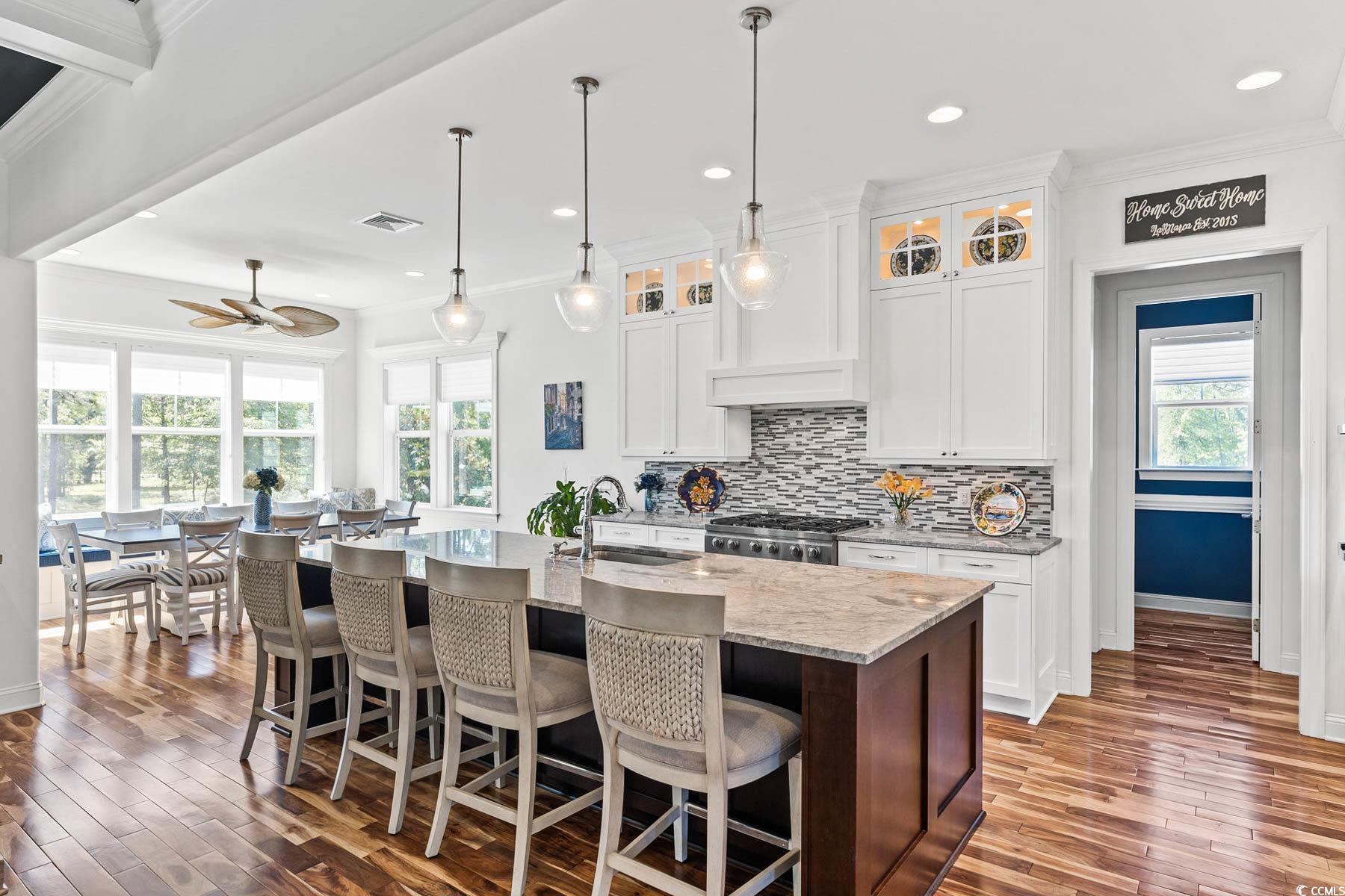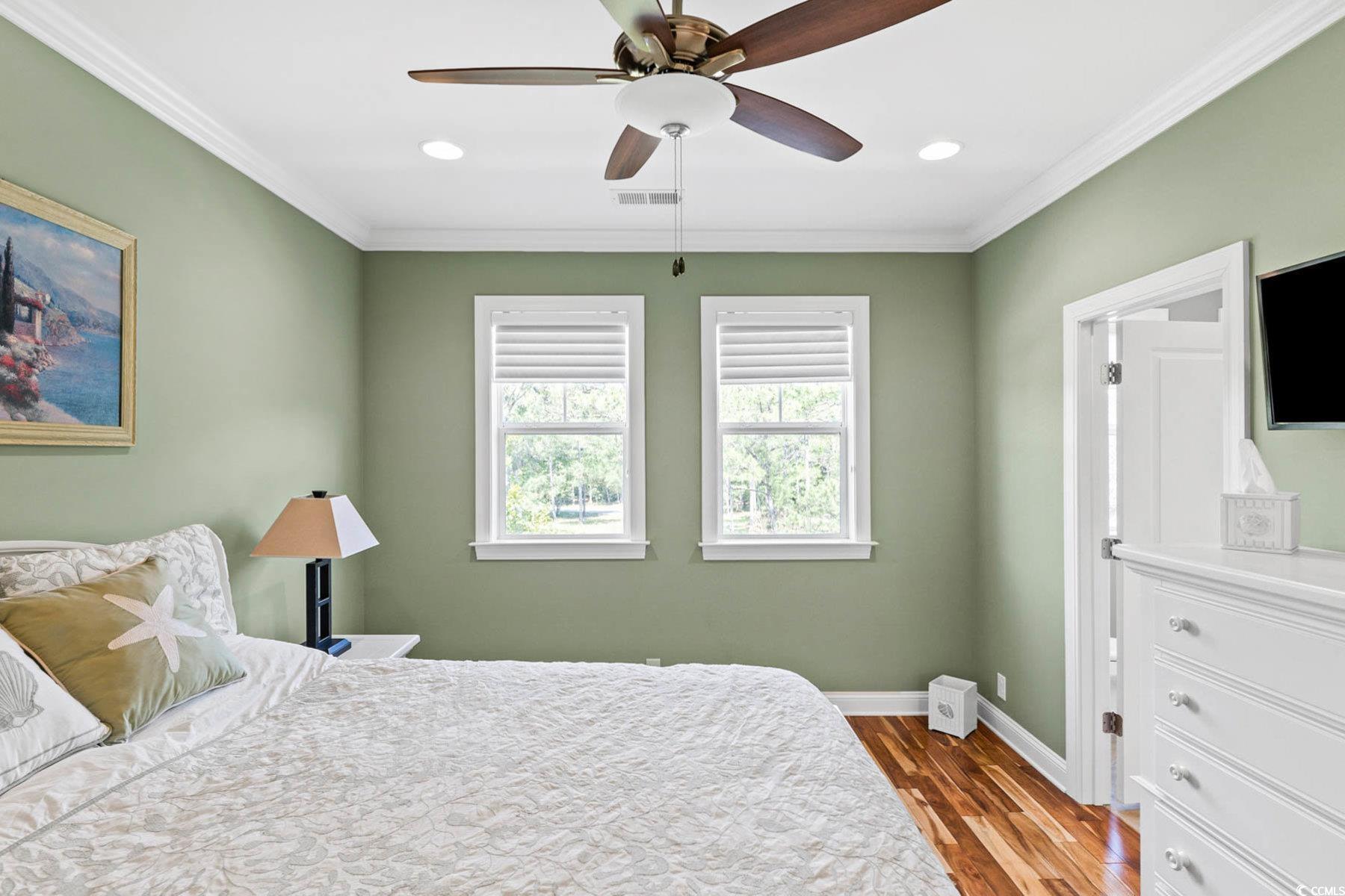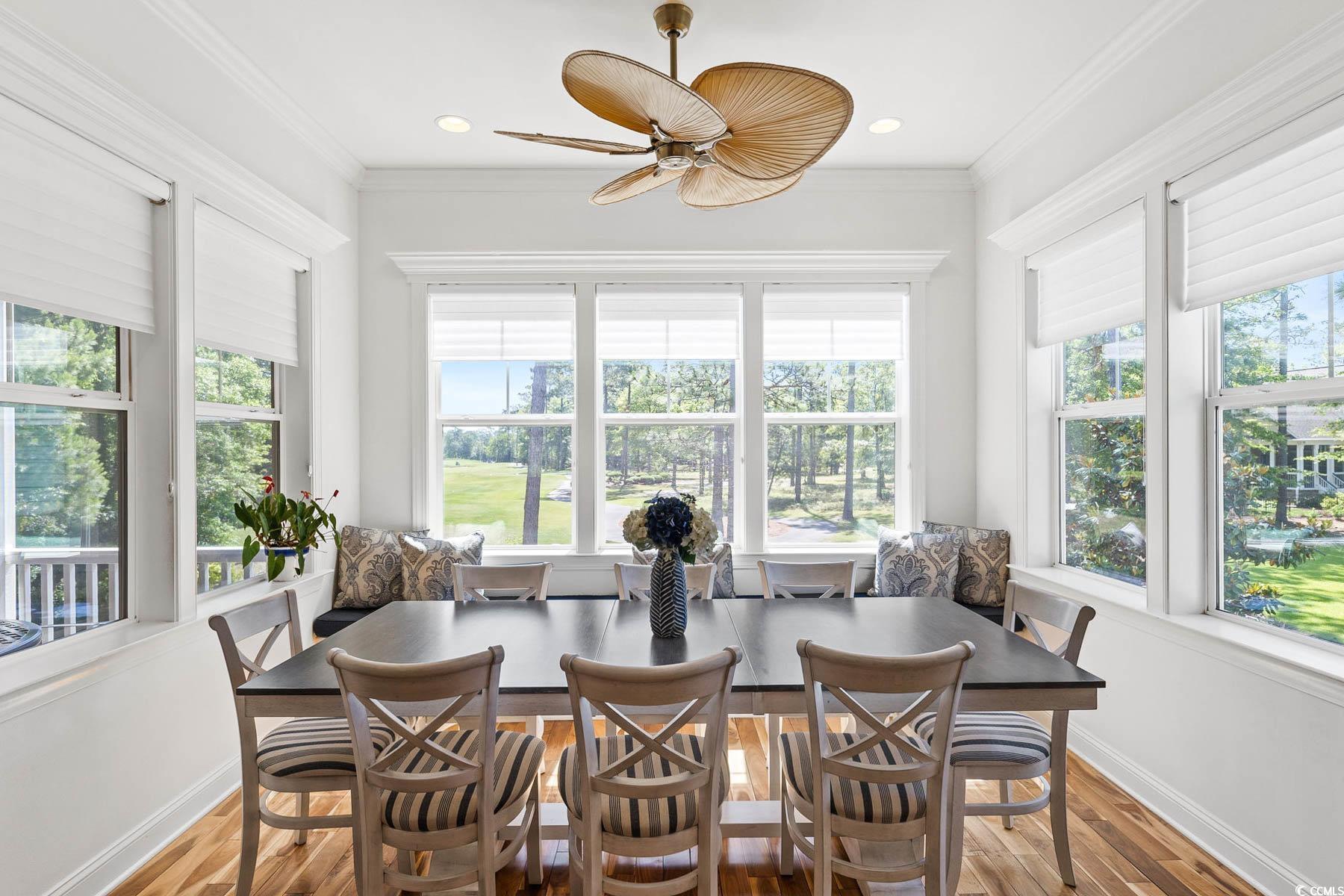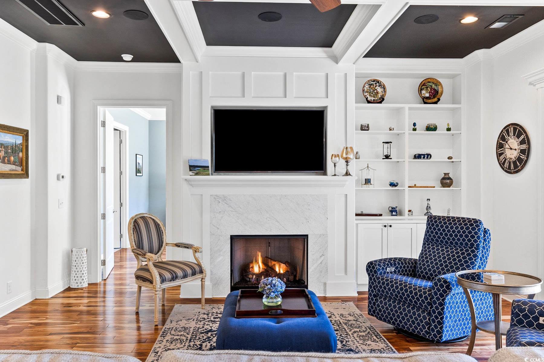 Welcome to 341 Bay Hill Court, an extraordinary custom-built home by Ernie Crews, artfully situated on the 7th tee of the renowned Arnold Palmer designed course in Rivers Edge. Listed below a recent appraisal, this home offers exceptional value. With sweeping, unobstructed views down the fairway & 2.5+ acres of nature preserve to the left, this setting provides rare privacy & breathtaking beauty - where every sunrise greets you over the golf course & every evening ends in quiet, golden stillness. Step into craftsmanship rarely found: 10+ foot ceilings, rich hardwood floors, crown molding throughout, a propane fireplace framed by custom built-ins, & a coffered ceiling anchoring the living room. The chef's kitchen features soft-close cabinetry, a large island with storage, a propane stove & electric double oven, refrigerator with water filtration & ice maker, & a built-in window bench overlooking the greens. Designed for comfort & connection, this 3 bed, 4.5 bath home includes an office, home elevator, walk-in attic storage, tankless water heater w/ booster, whole-home Sonos speaker system, central vacuum, security system, & a generator serving the main living areas. The primary suite offers a spa-like tiled shower, abundant natural light, & an oversized walk-in closet w/ custom storage. Outdoor living is exceptional with a front porch, second-story screened porch, open-air patio, & a third floor balcony for panoramic views. The oversized garage includes epoxy flooring. A Rivers Edge golf membership conveys w/ transfer of ownership, adding exceptional value & immediate access to premier golf amenities. Residents of Rivers Edge enjoy access to an oceanfront beach club, clubhouse with fitness center, tennis, pickleball, indoor/outdoor pools, walking & biking trails around a 27-acre lake, & vibrant social clubs all just 15-20 minutes from local beaches & perfectly positioned between Wilmington & Myrtle Beach. This home is a sanctuary of craftsmanship.