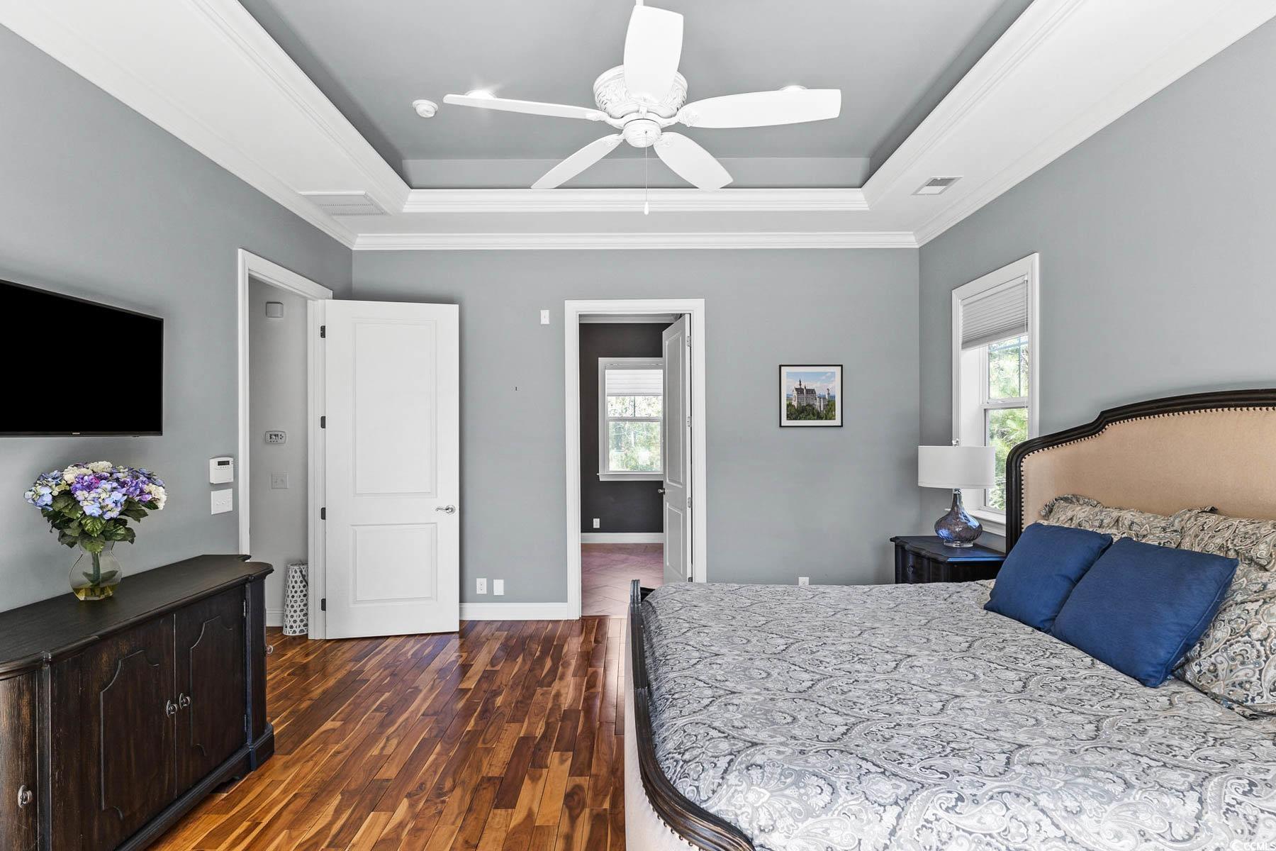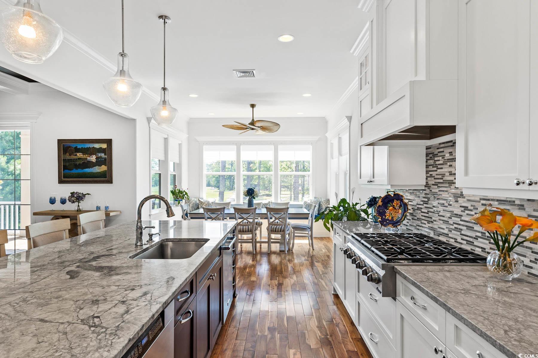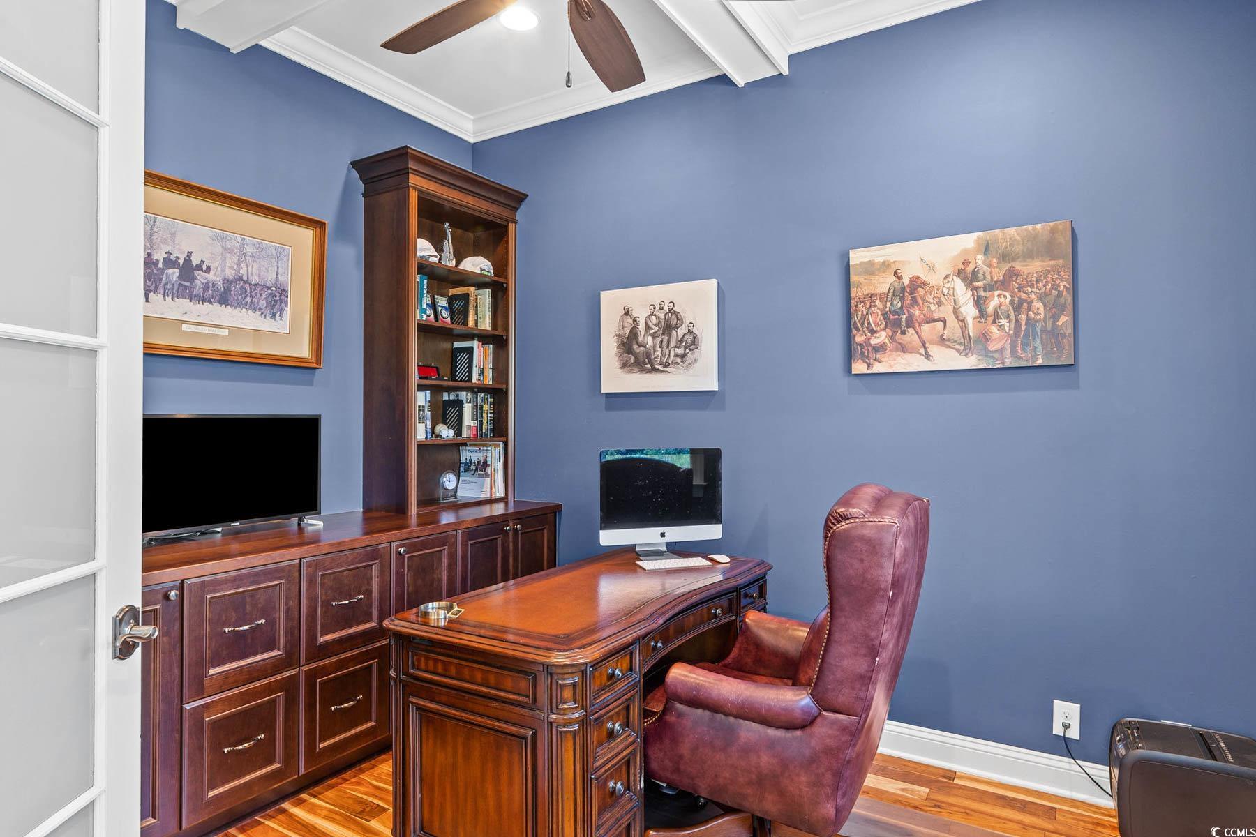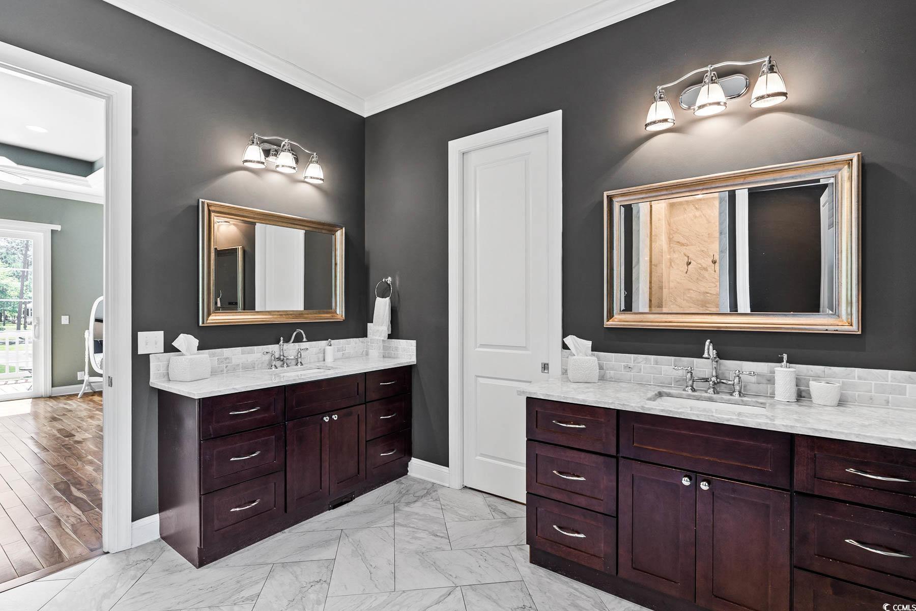 Welcome to 341 Bay Hill Court, an extraordinary custom-built home by Ernie Crews, artfully situated on the 7th tee of the renowned Arnold Palmer designed course in Rivers Edge. Listed below a recent appraisal, this home offers exceptional value. With sweeping, unobstructed views down the fairway & 2.5+ acres of nature preserve to the left, this setting provides rare privacy & breathtaking beauty - where every sunrise greets you over the golf course & every evening ends in quiet, golden stillness. Step into craftsmanship rarely found: 10+ foot ceilings, rich hardwood floors, crown molding throughout, a propane fireplace framed by custom built-ins, & a coffered ceiling anchoring the living room. The chef's kitchen features soft-close cabinetry, a large island with storage, a propane stove & electric double oven, refrigerator with water filtration & ice maker, & a built-in window bench overlooking the greens. Designed for comfort & connection, this 3 bed, 4.5 bath home includes an office, home elevator, walk-in attic storage, tankless water heater w/ booster, whole-home Sonos speaker system, central vacuum, security system, & a generator serving the main living areas. The primary suite offers a spa-like tiled shower, abundant natural light, & an oversized walk-in closet w/ custom storage. Outdoor living is exceptional with a front porch, second-story screened porch, open-air patio, & a third floor balcony for panoramic views. The oversized garage includes epoxy flooring. A Rivers Edge golf membership conveys w/ transfer of ownership, adding exceptional value & immediate access to premier golf amenities. Residents of Rivers Edge enjoy access to an oceanfront beach club, clubhouse with fitness center, tennis, pickleball, indoor/outdoor pools, walking & biking trails around a 27-acre lake, & vibrant social clubs all just 15-20 minutes from local beaches & perfectly positioned between Wilmington & Myrtle Beach. This home is a sanctuary of craftsmanship.