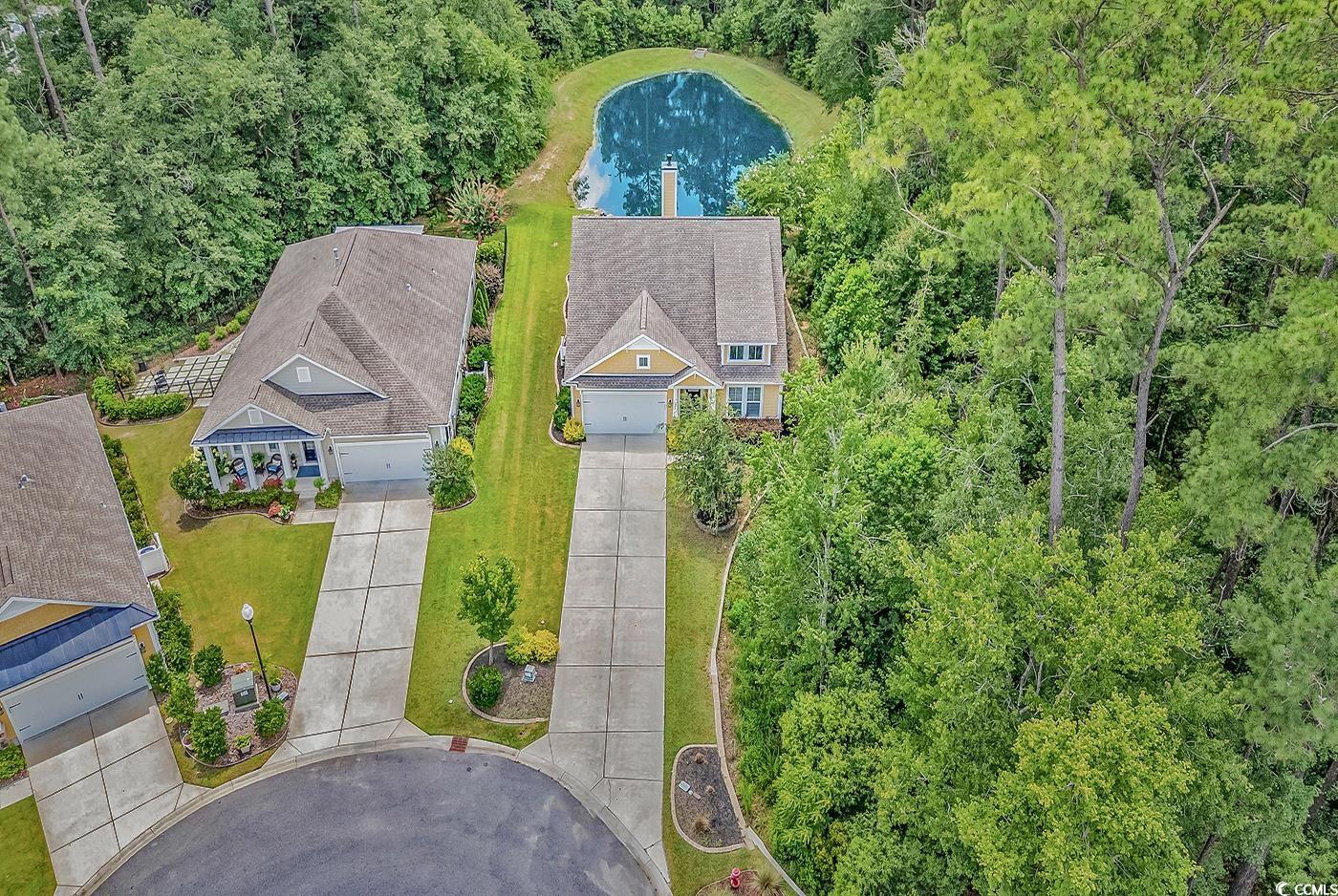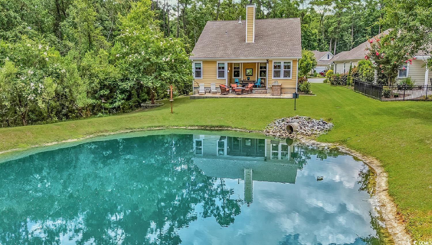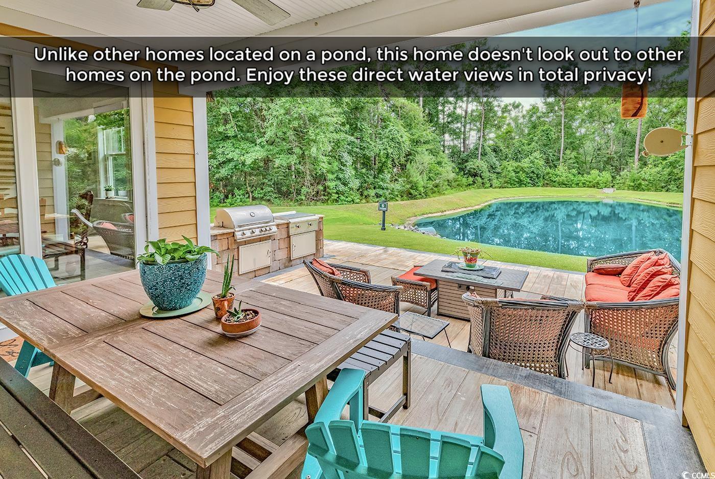 This is truly a one-of-a-kind opportunity along the coast. You could spend years searching and still not find something this special at this price point anywhere in the Grand Strand, let alone within Prince Creek. The home backs up to what feels like your very own private pond. It’s maintained by the HOA but the view and feel are all yours. And unlike most waterfront lots where you stare across at another home, this one is wrapped in lush privacy foliage. You can sit on the covered back porch and feel like you're tucked away on your own quiet estate. The porch is already a relaxing spot but could easily be screened in too. The pond even gets treated a couple times a year by the HOA so the water stays that clean and inviting blue tone that’s rare to find. Outside, the home sits on a peaceful cul de sac with woods on one side and a wider easement on the other. There’s a longer driveway for extra parking and a great outdoor setup with a built in kitchen and an extended tiled patio. The home also features concrete fiber siding and a raised slab foundation for added durability and peace of mind. Step inside and the charm continues. This open concept layout offers natural gas heat, cooking, a cozy fireplace and gas hot water. There’s plenty of space in the large kitchen with extra cabinetry and sleek tile flooring throughout (Huge value in this flooring as it's the luxury tile that looks like wood. This stuff is pricey!). Upstairs you’ll find a unique super bonus suite complete with its own living space, bedroom, and full bath (perfect for guests or a private retreat). Some other lovely features to mention: Tiled porch & patio and custom plantation shutters. This home sits within a newer boutique golf community that people absolutely love. If you’re considering new construction, you owe it to yourself to take a look here. Champions Village is made up of only around 75 homesites and offers a beautiful clubhouse and swimming pool. All the homes here are newer construction, thoughtfully designed, and built with raised slab foundations and concrete fiber siding for lasting quality. Best of all, it’s one of the only neighborhoods built right on the prestigious TPC golf course; the only TPC course in the state of South Carolina. Prince Creek itself is a master planned community spread across 2800 acres in the heart of Murrells Inlet. It offers a mix of condos, townhomes and custom estates and is known for its beautiful layout, active lifestyle and unbeatable location. Not to mention only a quick golf cart ride away to shopping & dining. And the famous Murrells Inlet Marshwalk (the Seafood Capital of South Carolina), Huntington Beach State Park, and the Garden City Beaches are only a few miles away.. The vibe here is relaxed coastal living with a resort feel and perfect for golfers, walkers, bikers and and those ready to just relax COASTAL STYLE. Schedule your showing today! **Note: Image editing software used on the photos which may alter the sky, grass, water color, or lighting. Also, the front bedroom has no closet so has been listed as a none non-conforming 4th bedroom in MLS. *Flood elevation certificate shows elevation at 10.2 at the lowest elevation grade! Ask agent for details.