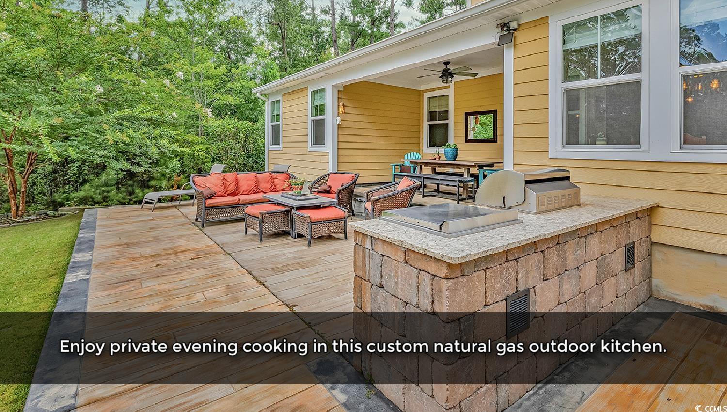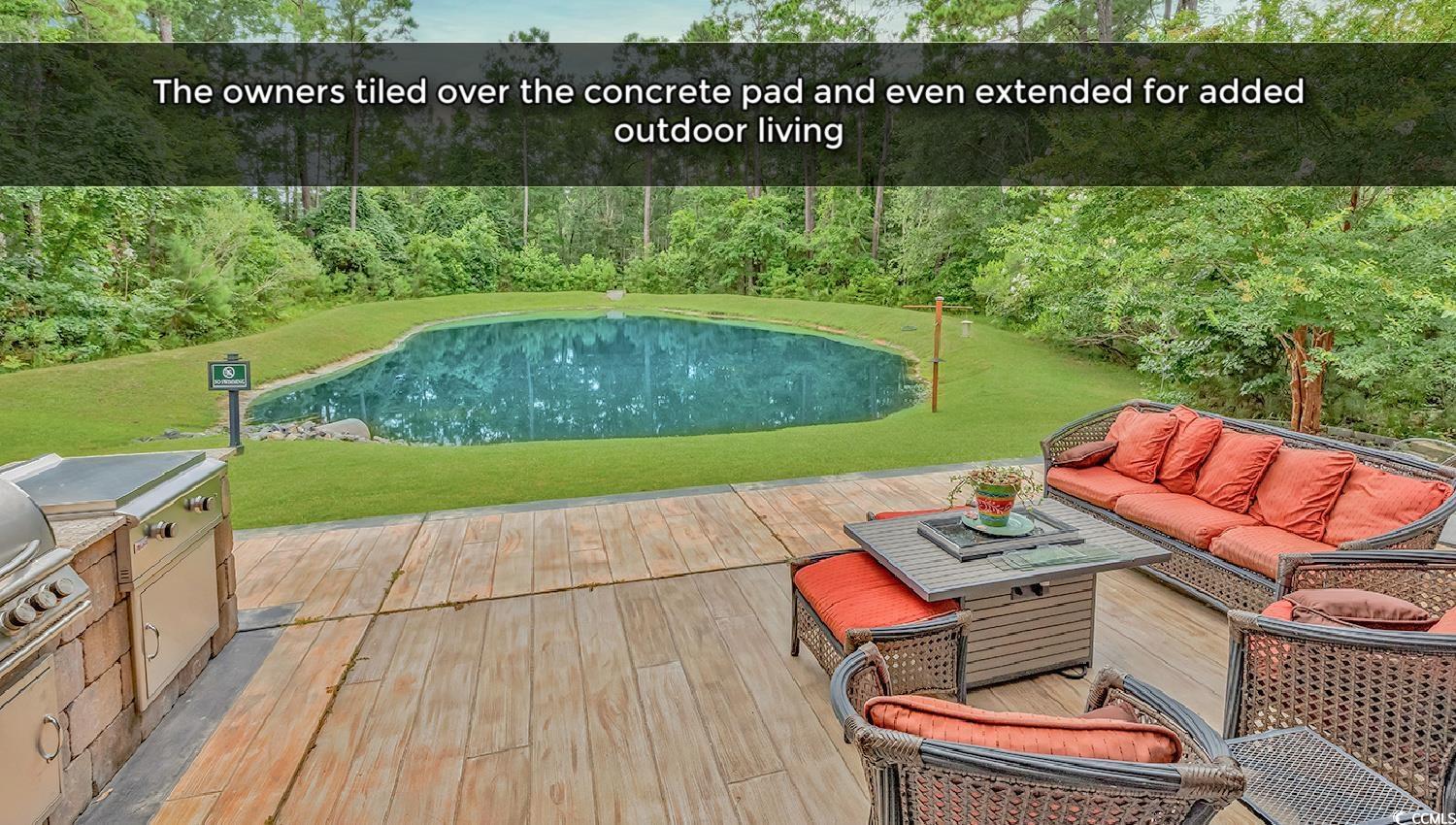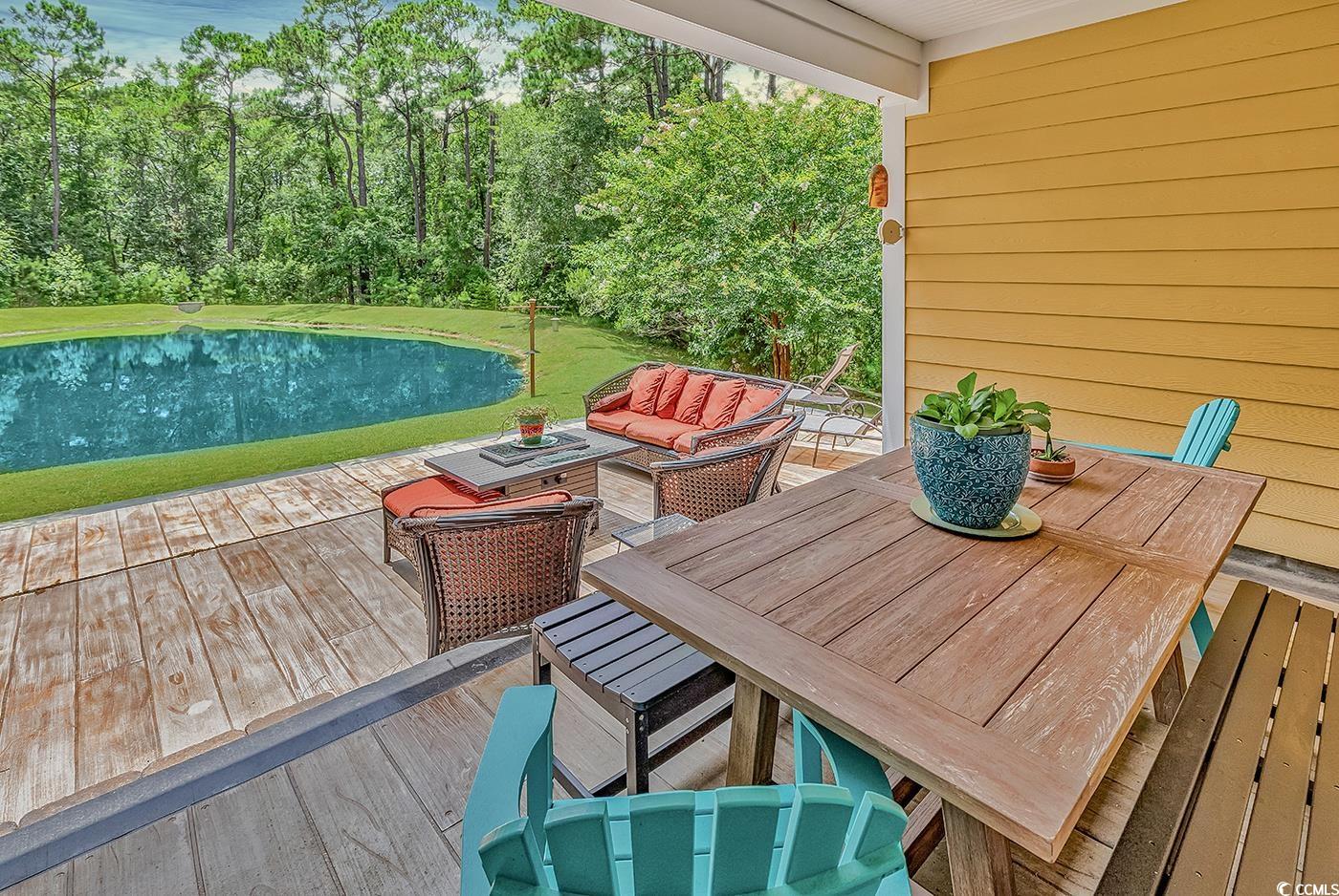 This is truly a one-of-a-kind opportunity along the coast. You could spend years searching and still not find something this special at this price point anywhere in the Grand Strand, let alone within Prince Creek. The home backs up to what feels like your very own private pond. It’s maintained by the HOA but the view and feel are all yours. And unlike most waterfront lots where you stare across at another home, this one is wrapped in lush privacy foliage. You can sit on the covered back porch and feel like you're tucked away on your own quiet estate. The porch is already a relaxing spot but could easily be screened in too. The pond even gets treated a couple times a year by the HOA so the water stays that clean and inviting blue tone that’s rare to find. Outside, the home sits on a peaceful cul de sac with woods on one side and a wider easement on the other. There’s a longer driveway for extra parking and a great outdoor setup with a built in kitchen and an extended tiled patio. The home also features concrete fiber siding and a raised slab foundation for added durability and peace of mind. Step inside and the charm continues. This open concept layout offers natural gas heat, cooking, a cozy fireplace and gas hot water. There’s plenty of space in the large kitchen with extra cabinetry and sleek tile flooring throughout (Huge value in this flooring as it's the luxury tile that looks like wood. This stuff is pricey!). Upstairs you’ll find a unique super bonus suite complete with its own living space, bedroom, and full bath (perfect for guests or a private retreat). Some other lovely features to mention: Tiled porch & patio and custom plantation shutters. This home sits within a newer boutique golf community that people absolutely love. If you’re considering new construction, you owe it to yourself to take a look here. Champions Village is made up of only around 75 homesites and offers a beautiful clubhouse and swimming pool. All the homes here are newer construction, thoughtfully designed, and built with raised slab foundations and concrete fiber siding for lasting quality. Best of all, it’s one of the only neighborhoods built right on the prestigious TPC golf course; the only TPC course in the state of South Carolina. Prince Creek itself is a master planned community spread across 2800 acres in the heart of Murrells Inlet. It offers a mix of condos, townhomes and custom estates and is known for its beautiful layout, active lifestyle and unbeatable location. Not to mention only a quick golf cart ride away to shopping & dining. And the famous Murrells Inlet Marshwalk (the Seafood Capital of South Carolina), Huntington Beach State Park, and the Garden City Beaches are only a few miles away.. The vibe here is relaxed coastal living with a resort feel and perfect for golfers, walkers, bikers and and those ready to just relax COASTAL STYLE. Schedule your showing today! **Note: Image editing software used on the photos which may alter the sky, grass, water color, or lighting. Also, the front bedroom has no closet so has been listed as a none non-conforming 4th bedroom in MLS. *Flood elevation certificate shows elevation at 10.2 at the lowest elevation grade! Ask agent for details.