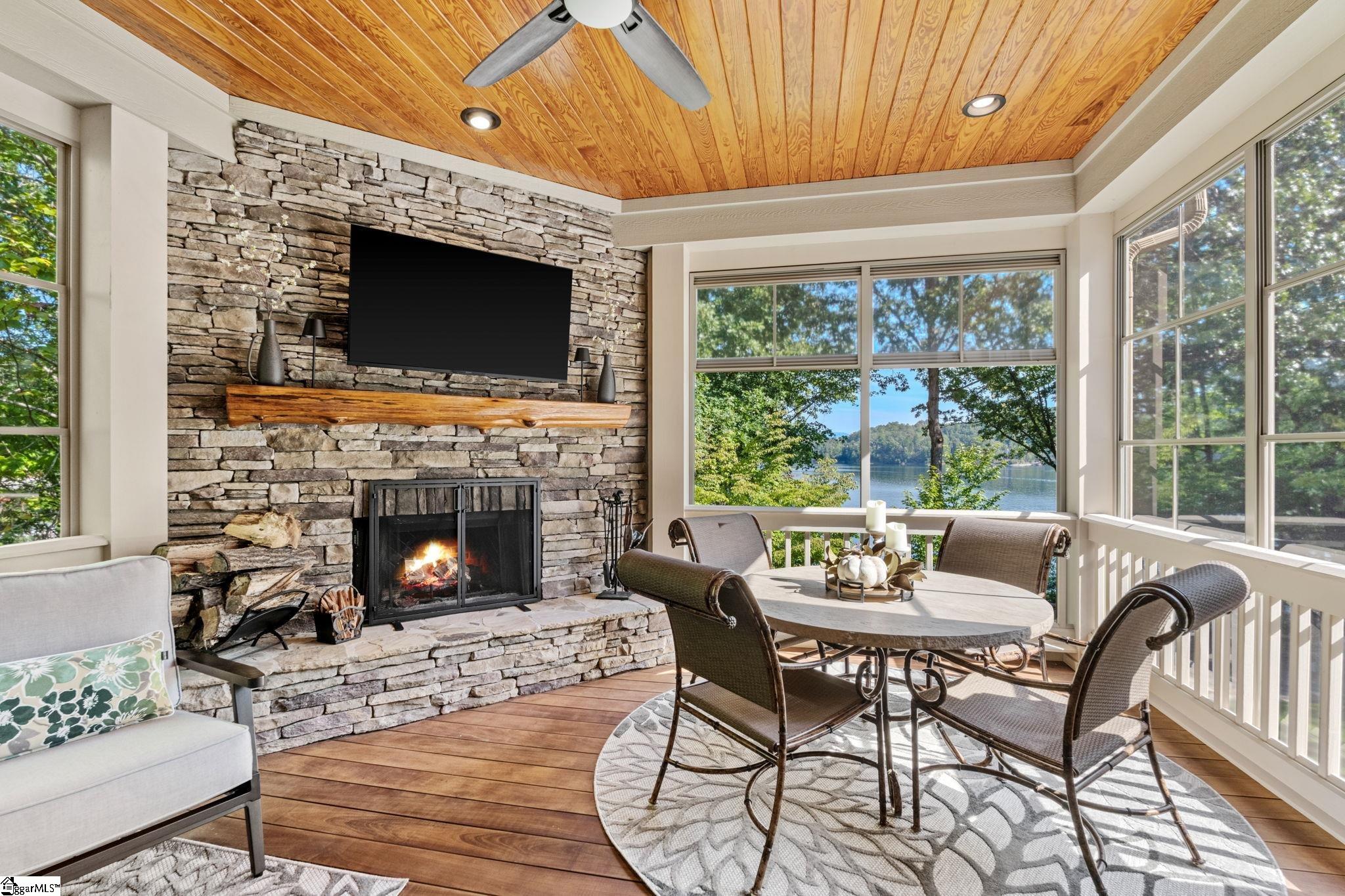 Captivating long lake and mountain views, gentle access to waterfront, meticulously maintained and updated estate in a great location. These are just a few of the attributes of this stunning Gabriel Builders constructed home sitting in the heart of Keowee Falls. Maximizing the position and view on this oversized 2.22 acre peninsula lot with over 600’ of waterfront, the home rests privately at the end of a gentle winding driveway (gated entrance approved if desired) that leads to a large concrete paver motor court that provides ample parking in addition to the spacious 3 car garage. Greeted at the entrance by a bubbling fountain that sets the stage for entry into the home and the immediate picture frame view of the Blue Ridge mountains beyond the emerald waters of Lake Keowee. You are instantly captivated by the setting and the feel of this home featuring the high-quality finish level you would anticipate of a Gabriel home. A welcoming 2 story foyer with a custom executive office with exquisite trim is just to right and to the left is large dining area for entertaining family and friends. The majestic mountain view continues to draw you into the family room anchored with a beautiful floor to ceiling stacked stone fireplace. Adjoining this room is a gourmet kitchen and keeping room. This area is an oasis of comfort and family experiences featuring a large wrap around bar, significant counter space, dining area, a large fireplace anchoring the cozy keeping room that spills onto an outdoor porch with fireplace and all-season EZ Breeze windows for that warm winter day and avoidance of Spring pollen season. Just off the kitchen is a convenient outdoor kitchen area and laundry room with new appliances. Completing the main level is a beautiful and warm master suite and spa like bath featuring recently updated shower, dual vanities, dual closets, an inviting sleeping area with cozy sitting/reading area with scenic lake and mountain views and spilling onto another porch again with 4 season EZ Breeze windows. For entertainment and recreation, proceed down the stairs to the lower level featuring 2 elegant bedroom suites (1 with adjoining room perfect for nursery), a large recreation room w/ fireplace offering a billiards table and plenty of room for entertaining or watching a family movie via the overhead projector and screen, and a bonus exercise room. A small kitchenette and bar area provide hosting support for this area including fridge/freezer, microwave and dishwasher. Upstairs via the elegant staircase you will find 3 additional ensuite bedrooms, each well decorated and inviting and completing the 6 bedrooms in this home. The rear landscape of the home features multiple patios, new putting green, new large stone fire pit and seating area, and a gentle walk to the covered boat dock with 2 jet ski ports (jet skis and boat available). Recent updates/additions: new roof, new exterior shutters, interior painting, new kitchen cabinetry/island/dishwasher/refrigerator/wine chiller, new laundry appliances, new master shower, blackout blinds in bedrooms, encapsulated crawl space area with dehumidifier, epoxy floor in garage, new outdoor kitchen w/ blaze grill/Uni pizza oven/cabinetry/refrigerator, 3 of 4 HVAC units replaced, new putting green, new firepit/sitting area.