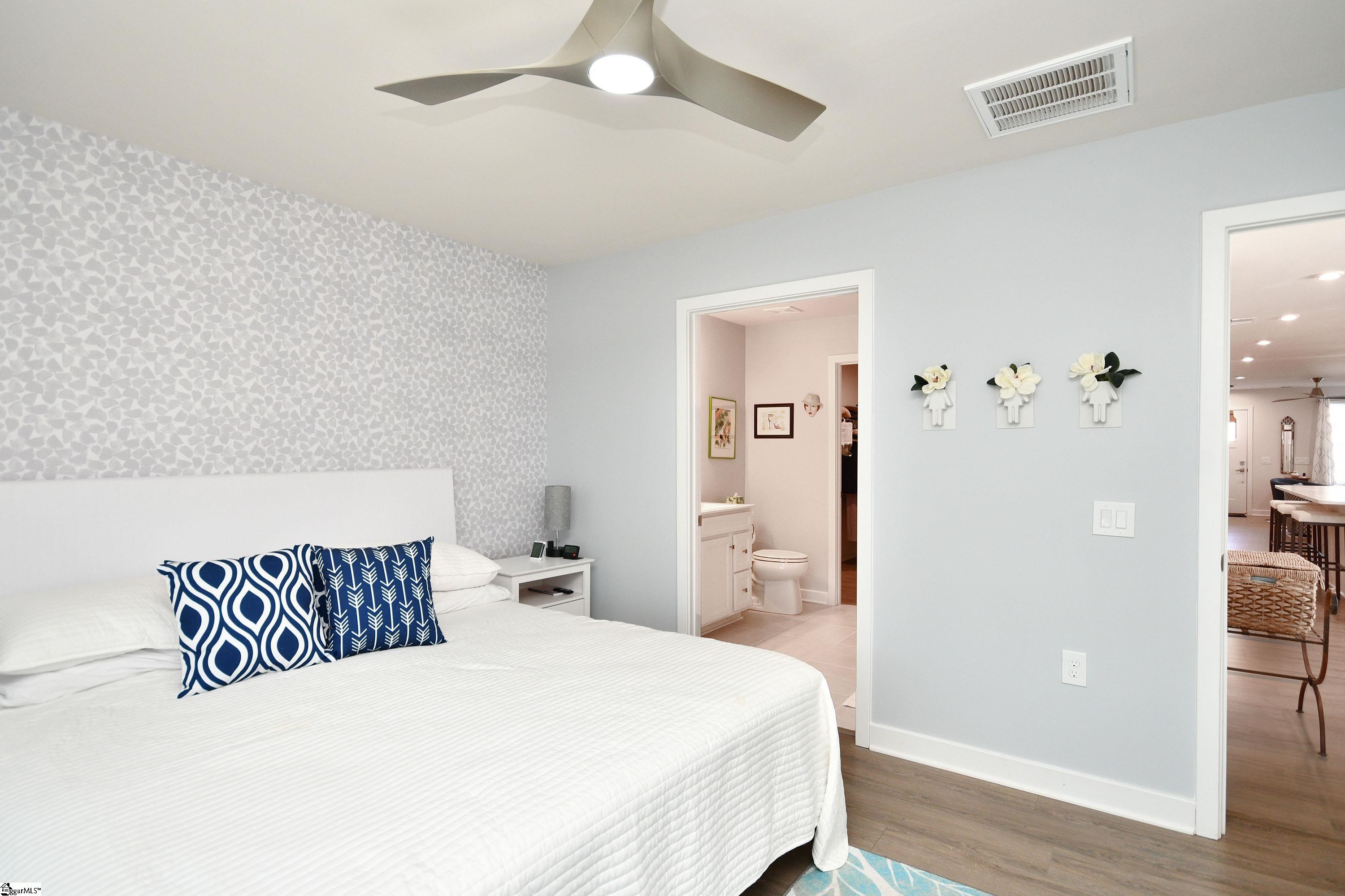 Pristine, lightly lived-in end-unit townhome with Blue Ridge Mountain views—just one mile from Furman University and minutes to downtown Greenville. Used only during winter months, this nearly new 3-year-old home feels like a model and is nestled in a welcoming neighborhood of active retirees and families alike. The open-concept main level features durable LVP flooring throughout (with 18” ceramic tile in the bath) and offers distinct living, dining, and kitchen spaces ideal for entertaining. A bright four-season porch adds a relaxing retreat. This home is loaded with energy-efficient upgrades including Ecobee 3 Lite smart thermostats on both floors, Carrier high-efficiency HVAC, Plygem Low-E insulated windows, and a 40-gallon commercial-grade high-efficiency water heater. The garage and screened porch feature an upgraded epoxy floor finish. Ample storage is found throughout, plus a finished 12’ x 6’ bonus space on the second floor—perfect for a home gym, hobby area, or additional storage. Enjoy low-maintenance living in a very new community with scenic surroundings, convenient access to Furman University, the Swamp Rabbit Trail, and all the shopping, dining, and culture of downtown Greenville. Move-in ready, energy efficient, and impeccably maintained—most importantly, you will love your neighbors.