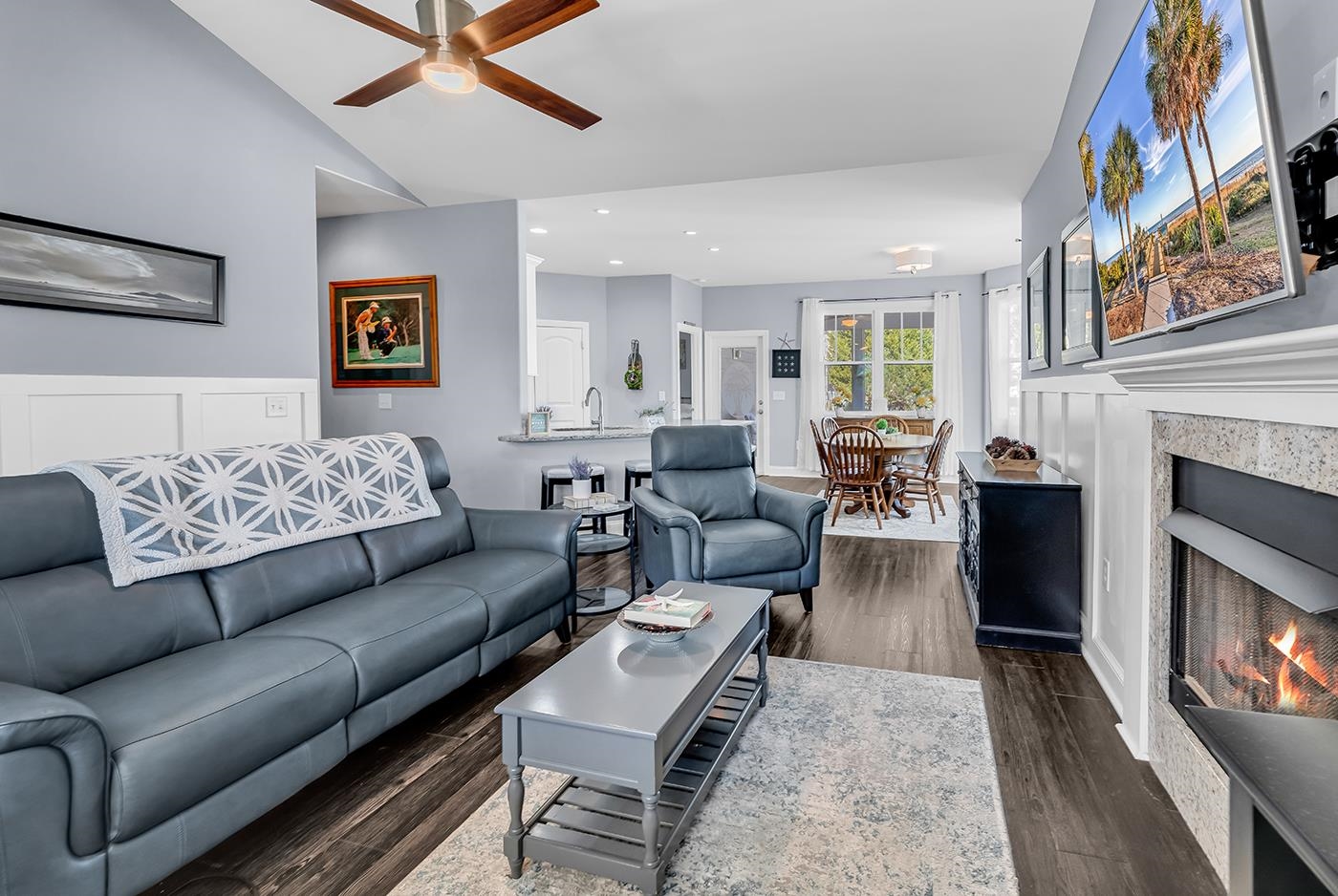Welcome to this adorable 4 bedroom, 3 bathroom home located in the charming community of Oak Hampton, just within the Prince Creek. The main living area features vaulted ceilings, elegant wainscoting, an open floor plan and a cozy fireplace that creates a warm, inviting atmosphere. The kitchen exudes cottage charm with classic shaker cabinets, granite countertops, stainless steel appliances, a gas stove, and a generously sized breakfast bar—perfect for casual meals or entertaining. The spacious primary suite offers a true retreat, complete with an ensuite bathroom, soaker tub, dual vanity, and a walk-in closet. Two additional guest rooms & a full bathroom complete the downstairs. A bonus room with a full bathroom adds flexibility for guests, a home office, or a private getaway. Step outside to the screened-in porch and enjoy peaceful mornings and evenings accompanied by the gentle sounds of the backyard fountain. Additional features include a metal roof, tankless hot water heater, and a two-car garage, providing both efficiency and convenience. Centrally located within the Murrells Inlet Community, this home is just minutes to restaurants, shopping, the beach & everything the Grand Strand has to offer. Don’t miss out. Schedule a showing today!