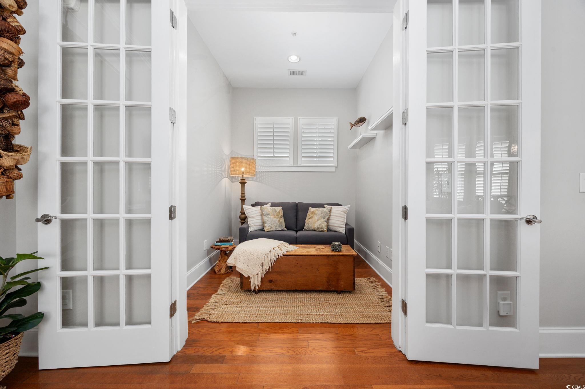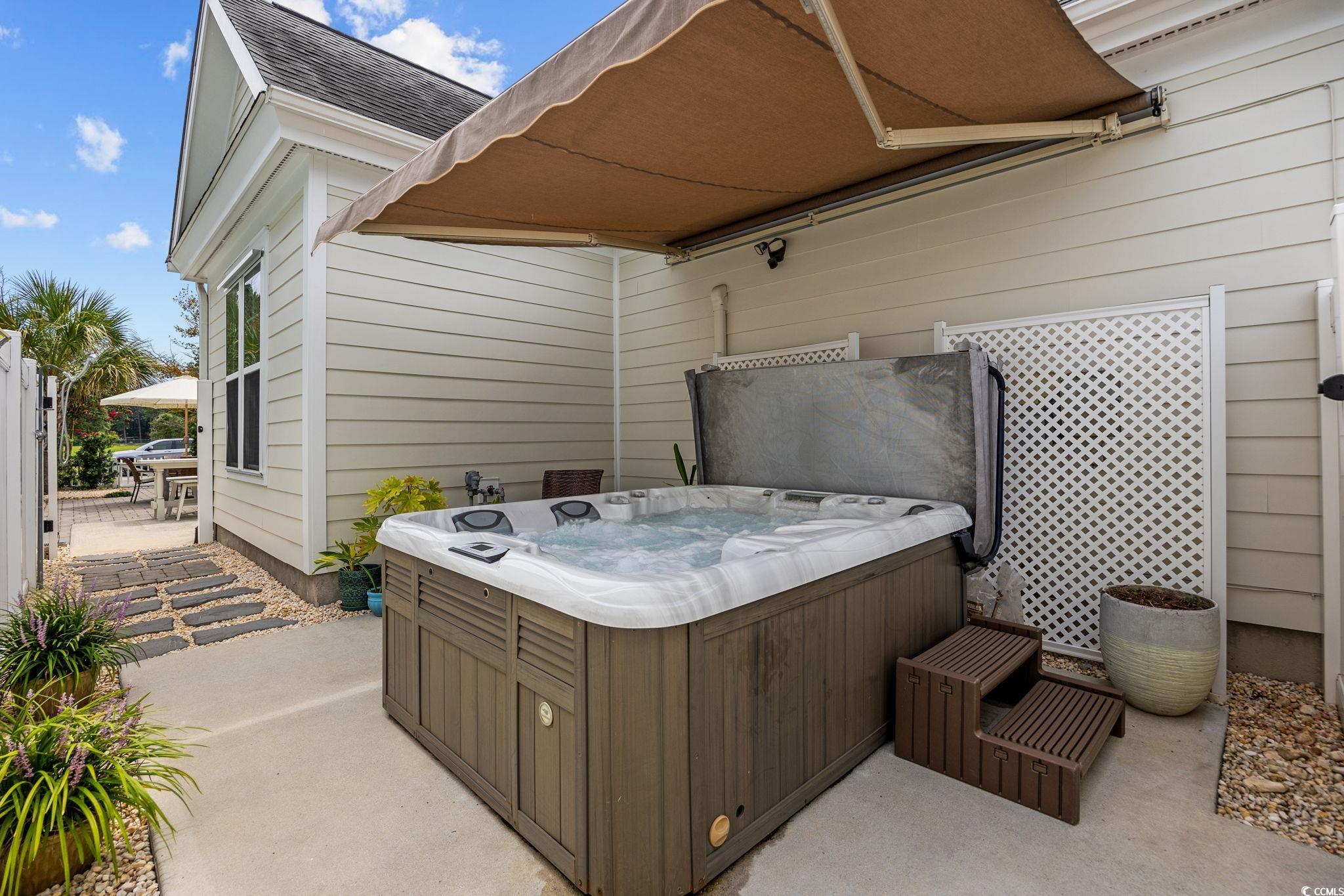 Welcome to 3452 Baldwin Lane in Sweetgrass Square in The Market Common! This stunning 4-bedroom, 2.5-bathroom home (with an additional office) perfectly blends comfort, charm, and convenience—all just a golf cart ride away from the beach, State Park, airport, and all the shops, dining, and entertainment that The Market Common offers. The thoughtfully designed layout includes a first-floor owner’s suite with a tray ceiling, walk-in closet, and updated lighting and vanity mirrors. Upstairs, the spacious bonus room (considered the 4th bedroom) features its own bathroom and abundant walk-in attic storage. Custom plantation shutters add elegance throughout this home. Enjoy your mornings on the front porch or unwind after a busy day in the private hot tub area, complete with a SunSetter retractable awning, outdoor shower, pavers, river rock... all low maintenance living. The exterior was freshly painted and accented with professional up-lighting for added curb appeal. Inside, the kitchen shines with stainless steel appliances, granite countertops, tile backsplash, and a breakfast bar or dining nook large enough for a sizable table. You can also enjoy meals in the side patio garden area for an outdoor dining experience. There are two more bedrooms on the first floor toward the front of the home that share a full bathroom with a tub/shower combination. Additional features include a mini split system with heat/AC in garage, insulated garage door, upper and lower garage cabinet storage and countertops, hurricane shutters for the whole house, and plenty of storage. Residents also have the option to join the nearby Market Common Amenity Center (located behind Barnes & Noble) which offers a resort-style lazy river, pool, fitness center, and plenty of green space with hammocks. This home truly offers it all—modern updates, low-maintenance living, and a prime Market Common location. Schedule your showing today!!