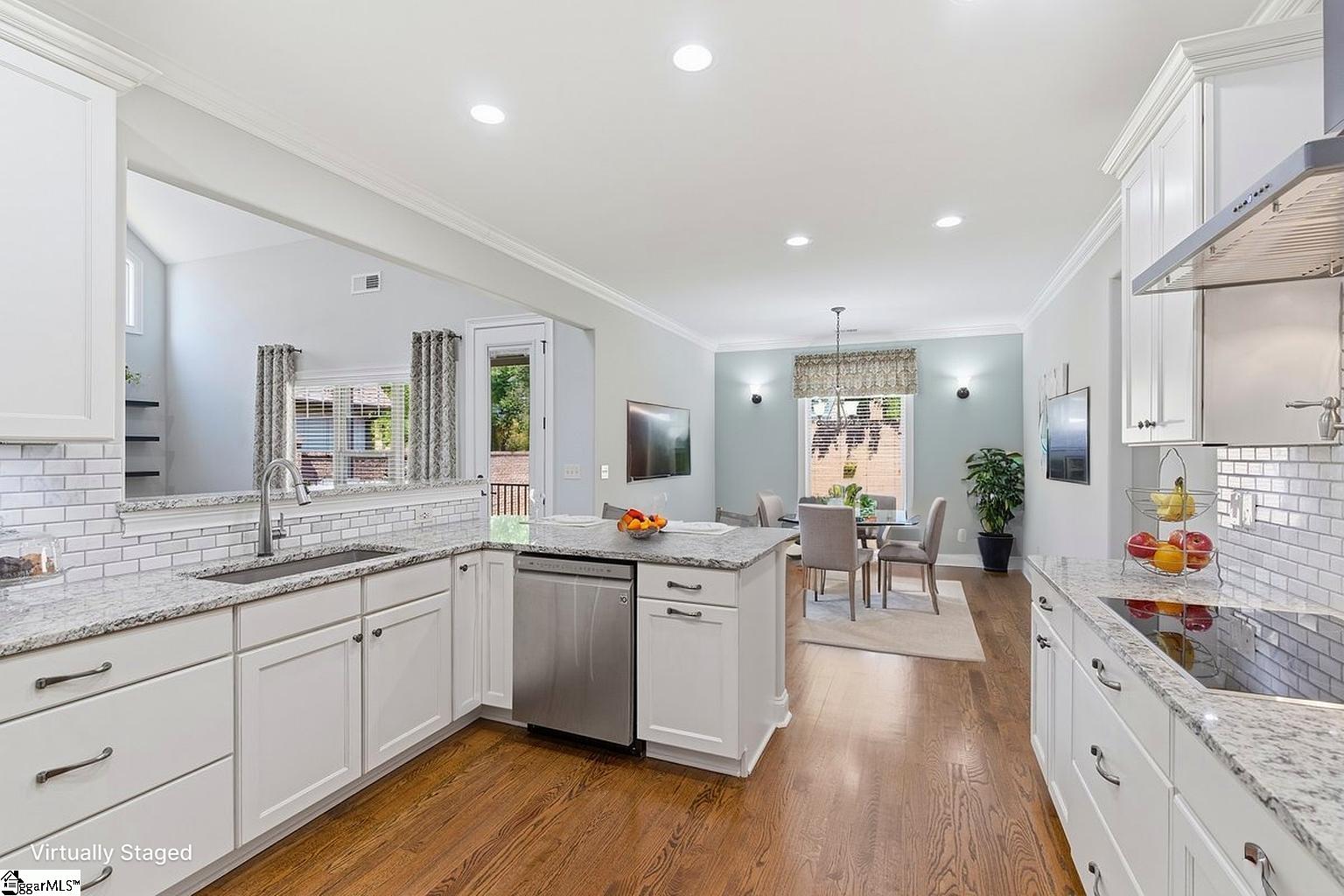 La Dolce Vita, at 346 Laguna Lane, Simpsonville SC This exceptional home awaits in The Courtyards on West Georgia Road, where ownership opportunities are few and far between. Nestled inside one of the most sought-after developments in town, this custom-built residence is defined by its bucolic setting and distinctive design. A tall, villa-style brick privacy wall surrounds the rear of the property, creating a peaceful courtyard atmosphere reminiscent of classic Italian estates. From the covered back porch, the sense of quiet and seclusion is unmistakable. Optimal lot utilization has resulted in one of the largest yard spaces within The Courtyards, with ample room for a future in-ground pool. Inside, craftsmanship takes center stage with high ceilings throughout, including coffered and cathedral details, along with impressive molding and detailed woodwork. The spacious and inviting primary bedroom offers a courtyard view, a soaring ceiling, and a spa-like ensuite bath. Designed for both function and style, the kitchen will delight any cook or chef. It features a Jenn-Air induction cooktop, granite countertops, a walk-in pantry, and generous cabinet storage. The kitchen connects seamlessly to a sunny breakfast room and living area, both overlooking the courtyard. Oak flooring anchors the main level, while plush Lucaya carpeting with Napa padding adds warmth and comfort to the second floor and main-level office. The attached, oversized two-car garage features a clean epoxy floor and includes a built-in storage system. Conveniently located near restaurants and shopping, and minutes from Interstate 385, you’ll have quick access to I-85 and can be in downtown Greenville in just twenty minutes. 346 Laguna Lane offers a setting and lifestyle that simply feels different, in all the right ways. Once experienced, it won’t be easily forgotten. Contact your agent today.