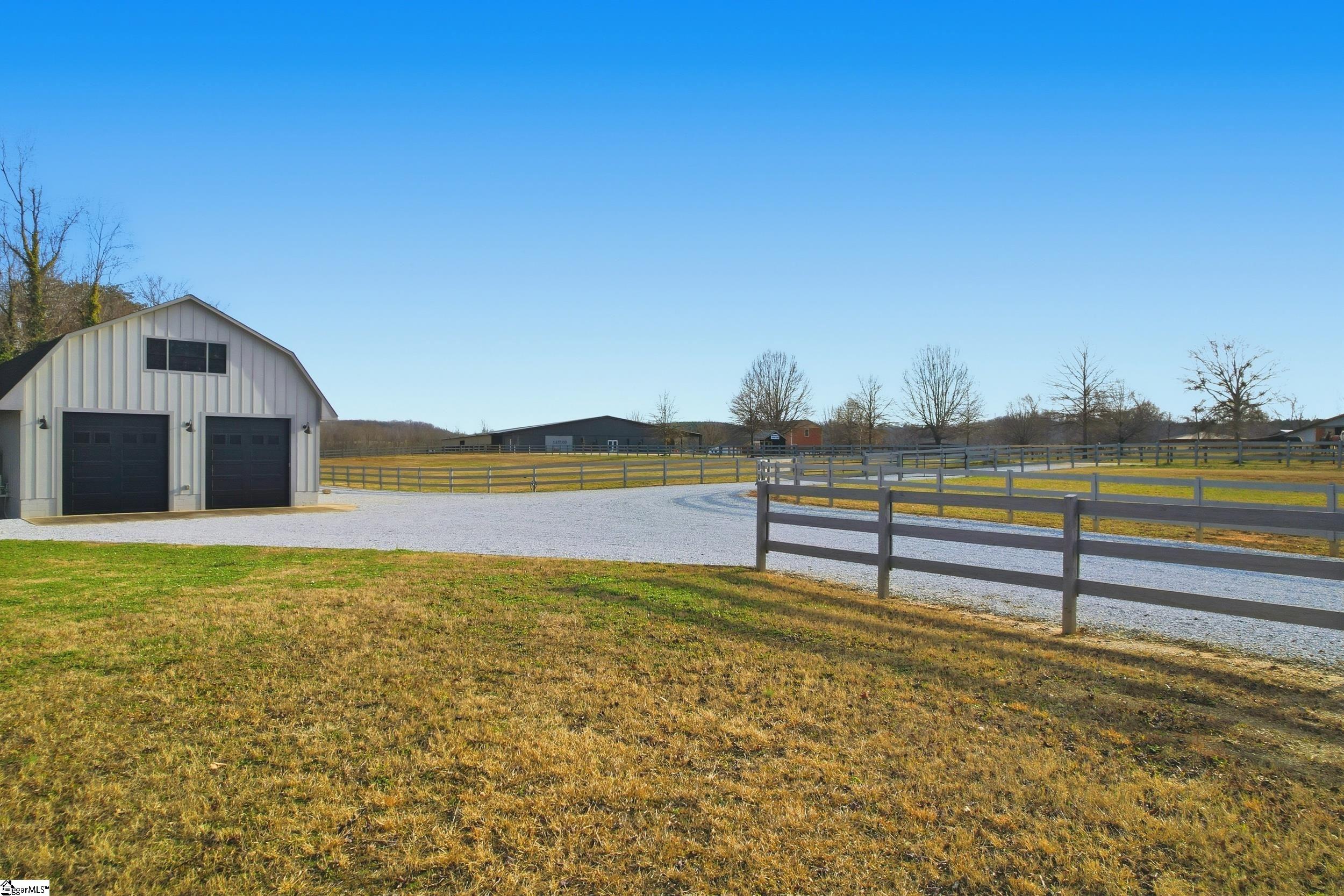 Nestled on the peaceful outskirts of the charming town of Landrum, this one-of-a-kind barndominium offers a rare blend of modern comfort, versatile space, and breathtaking views. Set on two level acres with two fenced pastures, the property borders a premier equestrian center. The main level features an expansive garage area with two garage doors and epoxy floors and the capacity to accommodate at least four vehicles, making it ideal for car collectors, hobbyists, or equestrian use. This level also includes a spa-inspired retreat with a luxurious steam room, sauna, and upscale tiled shower. You will also find a spacious walk-in laundry room and a convenient bathroom. Upstairs, the living space opens to an inviting office area, a comfortable bedroom with a spacious walk-in closet, and a full bathroom with a roomy standalone shower. The gourmet kitchen is beautifully appointed with granite countertops, new black stainless-steel appliances, and a custom-built, live-edge bar- the perfect spot to enjoy meals while taking in mountain views through the kitchen windows. Outdoor living shines with the covered back deck, complete with a wet bar and grilling area, where panoramic views stretch across fenced pastures to the mountains beyond. You'll also find everything you'll need to hookup your RV- always ready for your next adventure. The barndominium itself reflects a thoughtful balance of durability and charm, offering an adaptable living space well-suited for a full-time residence, a weekend retreat, or a creative live/work environment. With its proximity to Landrum’s quaint downtown, local dining, and outdoor recreation, this property delivers rural tranquility without sacrificing convenience. Call today to schedule your private tour!