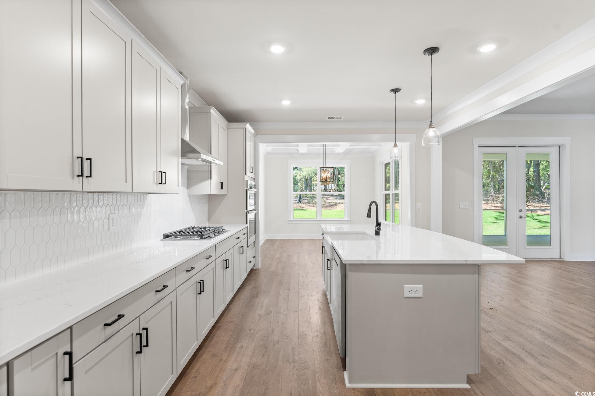 Welcome to your ideal coastal retreat! This beautiful 1.5 story home is nestled in an exclusive championship golf community and directly overlooks the lush fairways of the Crow Creek Golf Club. Whether you’re a golf enthusiast or simply love relaxing with a spectacular view, this home offers it all. The Beckham plan is a newly constructed masterpiece that sits on a just over a 1/4 acre overlooking the Number 9 fairway and green of Crow Creek Golf Club offering both luxury and convenience in one stunning package. Step inside to this immaculate 4 bedroom, 3 bathroom home and be greeted by modern elegance at every turn. The 10-foot ceilings and 8-foot doorways on the first floor create an open and airy atmosphere, complemented by an abundance of windows that flood the home with natural light. Stunning craftsman details within this home include crown molding, upgraded trim, fireplace with built in shelving and so much more! The heart of the home is the gourmet kitchen that is equipped with sleek quartz countertops, recessed LED and Pendant lighting, upgraded cabinetry and tile backsplash. Head to the owner's suite that features an elegant tray ceiling and bathroom offering a spacious tiled in shower and soaking tub. Retreat to the upstairs to discover a large bonus room with the versatility to be used for a media room, secondary living space or extra play area for the kids. Enjoy the peacefulness and tranquility of your spacious backyard while sitting on your rear screen covered porch taking it all in. Whether you're seeking relaxation or adventure, this neighborhood has it all. Minutes away from the stunning Calabash beaches or cross the border in to South Carolina to explore North Myrtle Beach and the Cherry Grove Pier. Don't wait! Hurry in to check out this home and turn that dream in to a reality!! ****Photos are are for marketing and representational purposes only.****