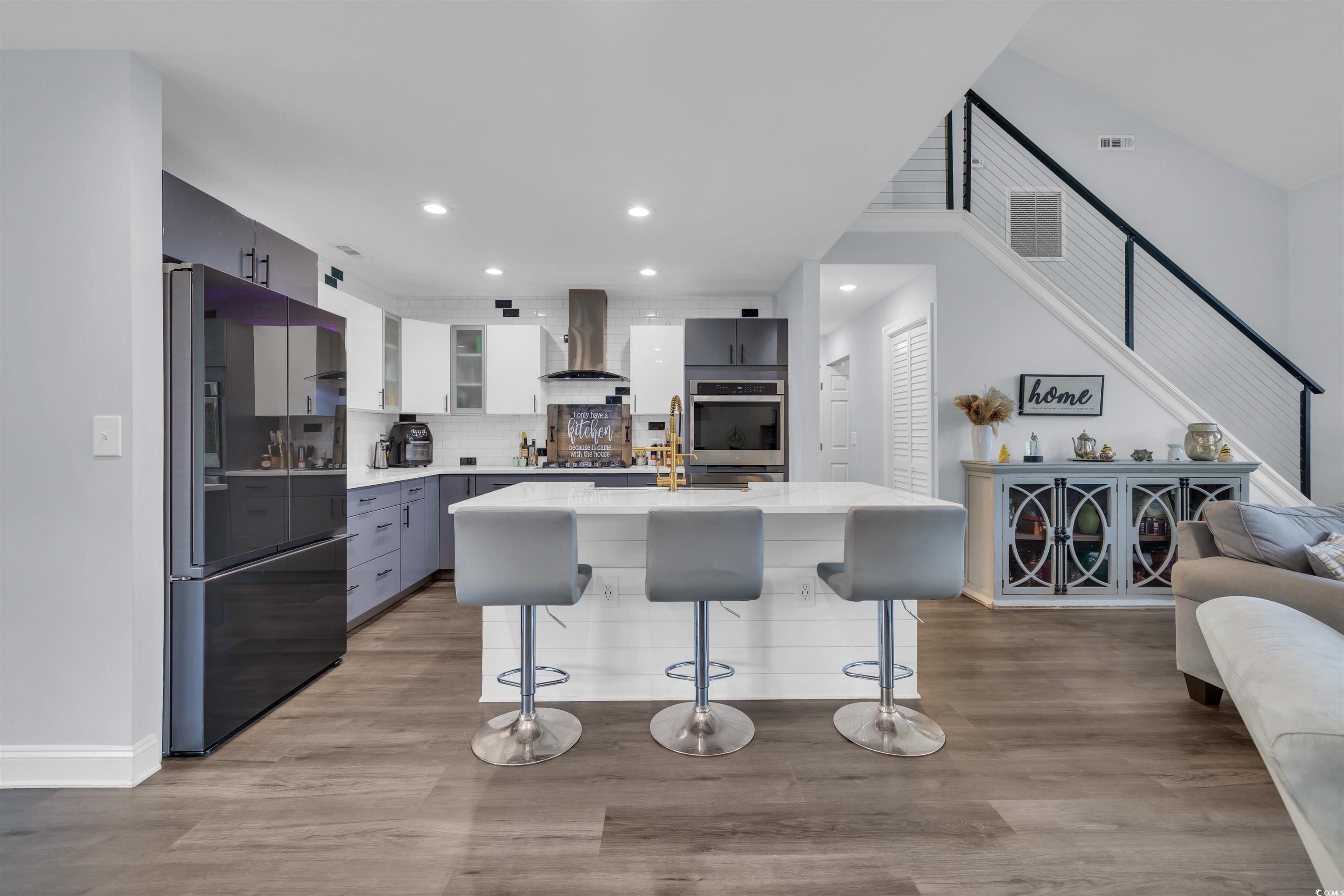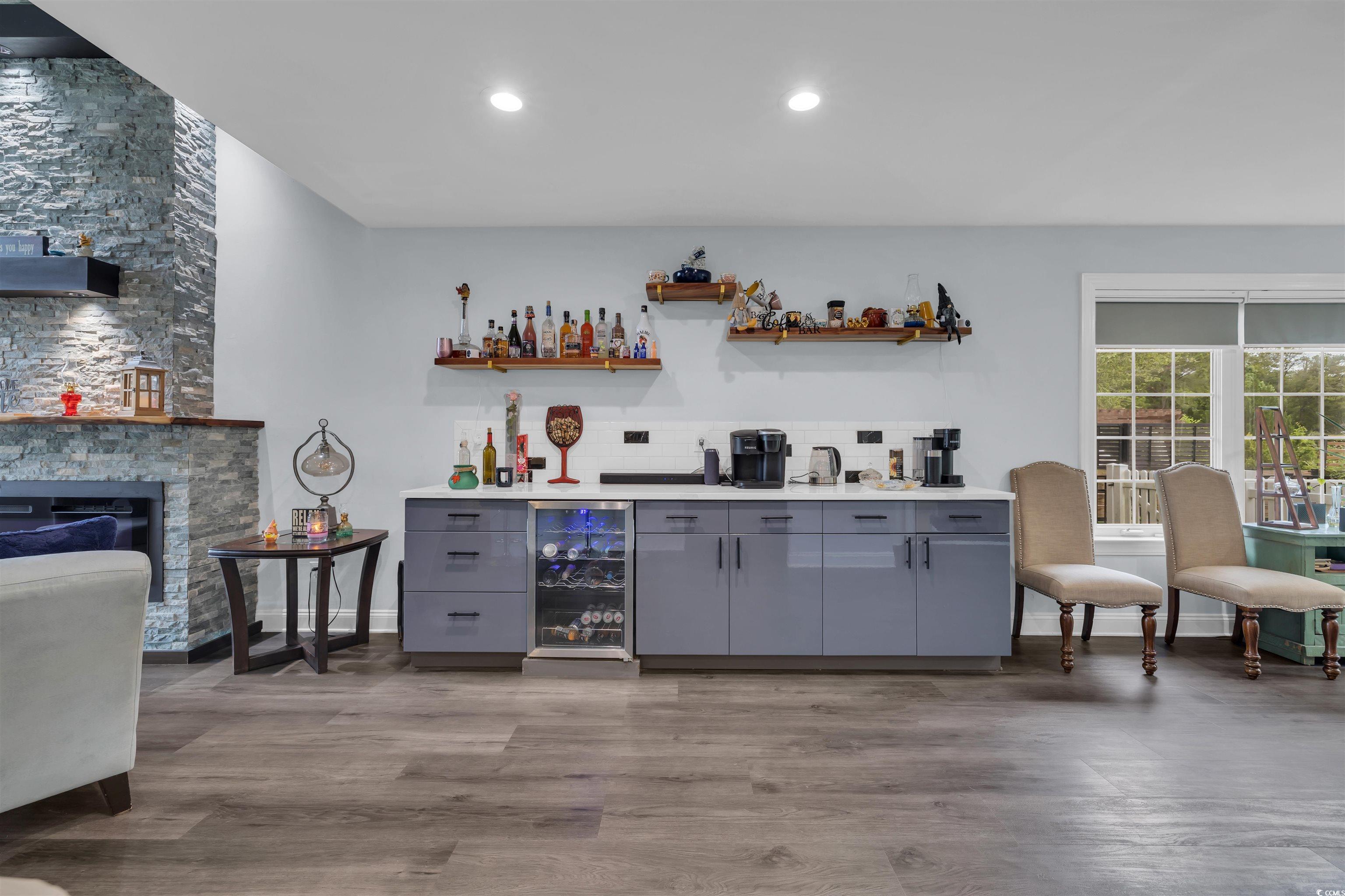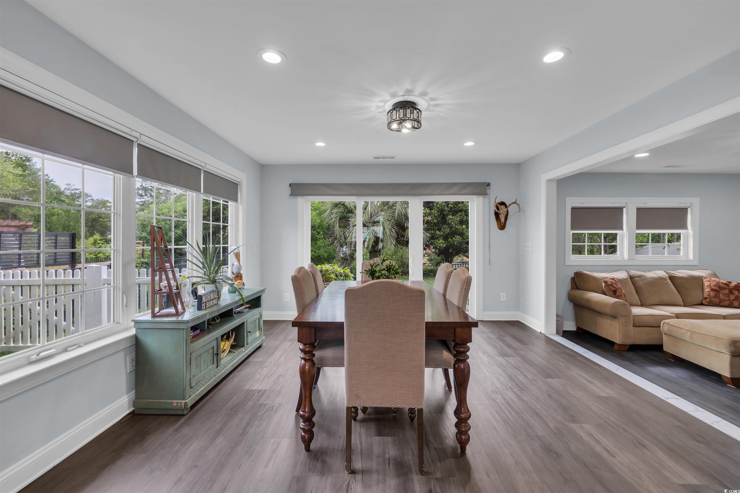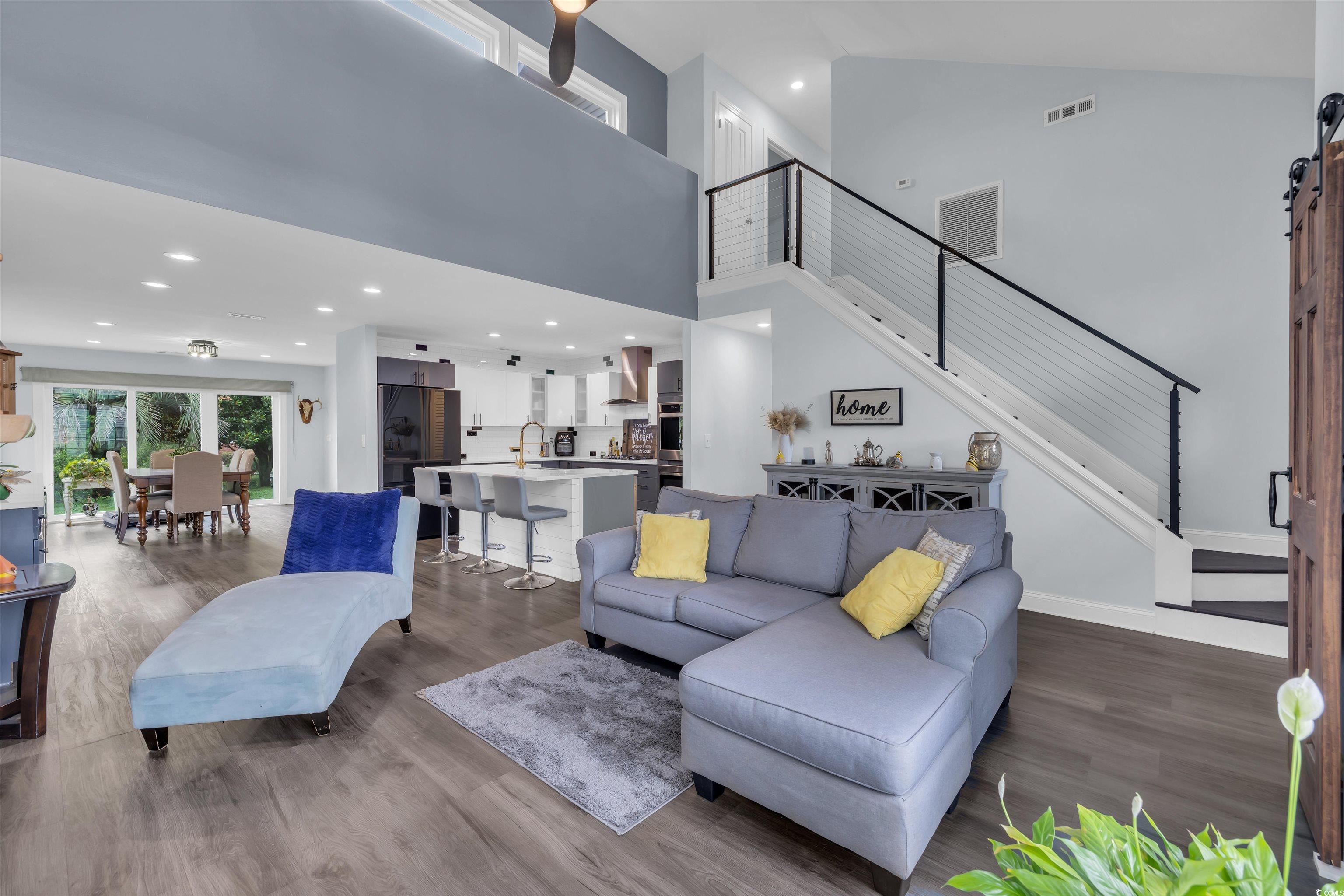 Step into luxury coastal living with this stunning, fully renovated home located in the prestigious community of River Downs at Wachesaw East Plantation in Murrells Inlet. This show stopping 3-bedroom, 3-bathroom residence also includes a spacious flex room that’s perfect for a home office, media room, or guest suite. From the moment you walk in, you’ll be captivated by the open-concept layout, soaring ceilings, and high-end designer finishes that set this home apart from the rest. Every detail has been carefully crafted with luxury and functionality in mind. Enjoy top of the line, brand new smart home appliances, gleaming quartz countertops, and a sleek built-in wine chiller, ideal for entertaining. The home is equipped with ambient accent lighting throughout, featuring dimmable and color-changing options that add warmth and elegance to every room. A custom fireplace with built-in shelving and lighting serves as the centerpiece of the main living area, creating a perfect gathering space for family and friends. The spacious master suite is located on the main floor and offers a large walk-in closet along with a spa like dual bathroom retreat. All bedrooms feature oversized closets, ceiling fans, and abundant natural light. Step outside to your private, fenced in backyard overlooking a tranquil pond, perfect for relaxing, fishing, or enjoying the peaceful views. Peace of mind comes standard with a full home security system, including exterior cameras, and all major systems in the home have been newly updated. This property not only delivers luxury on the inside but also grants access to resort-style amenities: tennis courts, basketball courts, swimming pools, fitness rooms, walking and biking trails, and so much more. Just one mile from the Wacca Wache and Crazy Sister Marinas which offer public boat ramps and minutes from the famous Murrells Inlet MarshWalk, you’ll be near the best waterfront dining, boutique shopping, and vibrant entertainment on the Grand Strand. Plus, you’re just a quick golf cart ride to the beach. Don’t miss your opportunity to own one of the most upgraded and luxurious homes in Murrells Inlet, schedule your private tour today and experience the lifestyle you’ve been dreaming of!