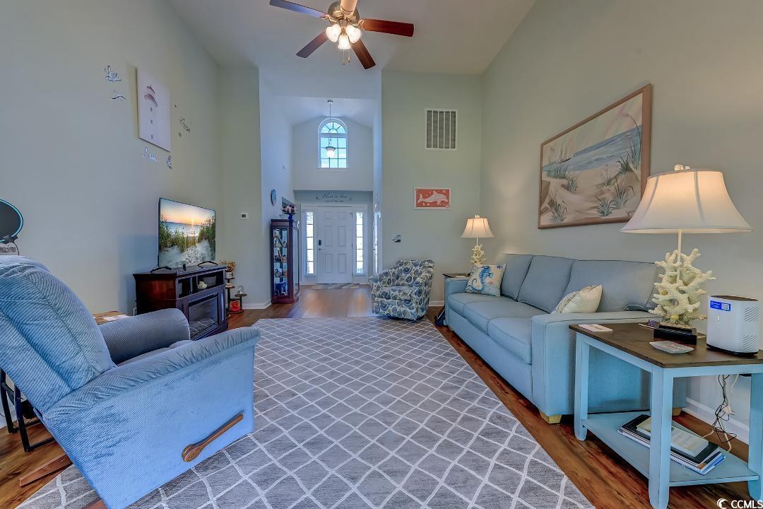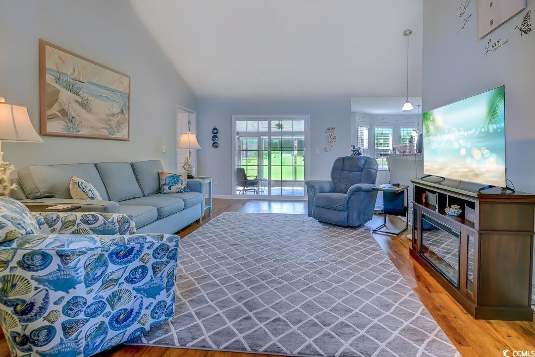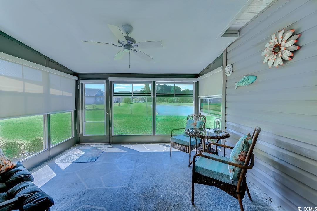 REDUCED! Motivated seller! BRING AN OFFER! The Village at Palmetto Greens, located on the 8th Fairway and overlooking a beautiful pond! This lovely 3 BR 2 BA Gem is like NEW, located in the new section of Colonial Charters Golf Course Community, just 5 minutes or less from Cherry Grove Beach. While it offers beautiful VIEWS of the pond and VIEWS of the 8th FAIRWAY, there is much more this home offers. The seller added a three Season porch that was installed by Sunspace, and the windows have a LIFETIME WARRANTY with nice shades to allow as much light or sun and privacy as you like. The open floor plan, vaulted ceiling and split bedroom plan adds more features to show off the cozy comfortable living space. The spacious Master Bedroom offers double windows to allow for natural light and a walk-in closet.Some windows have protection from sun's heat. Washer, dryer and 2 doorbell rings convey. The heat pump is serviced every 6 months and duct work was cleaned in March as well as it has blue light in the duck work. Seller also has a termite Bond, transferable. The garage has a screen door that has an electrial retractable operation. All this in a location to enjoy all that the beaches have to offer. Don't miss seeing this very cozy comfortable home in a very nice neighborhood! Beautiful Customized Driveway! HOA INCLUDES STREET MAINTANCE.