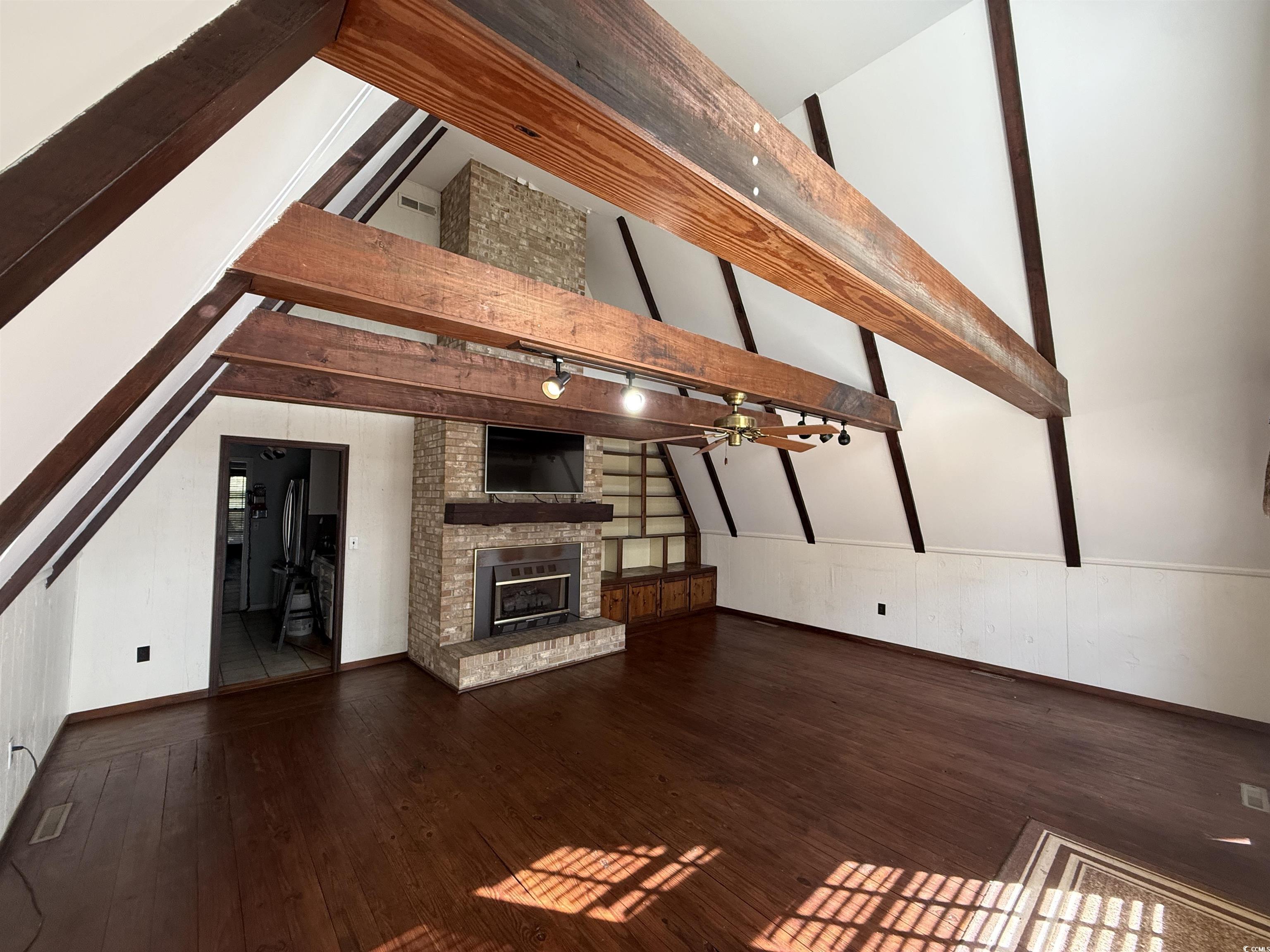 Tucked away on a quiet country road, this one-of-a-kind 2,856 sq ft A-frame home sits on 2.78 scenic acres and offers character, space, and peaceful surroundings. Surrounded by mature trees and established landscaping, the property even includes a portion of a pond, creating a truly serene setting. Inside, the main level features a spacious primary suite, two full bathrooms, and a convenient laundry area. The inviting den showcases a fireplace with built-in shelving, perfect for cozy evenings. An office on the first floor includes a built-in desk and shelving, ideal for working from home or quiet study. The kitchen offers a large pantry and a bright breakfast area filled with windows that overlook the natural beauty outside. The bonus room above the breakfast area adds architectural interest and flexible living space. Upstairs, you’ll find 2 more bedrooms, including one with its own porch overlooking the backyard, along with a full bath. Outside, enjoy the fenced above-ground pool, plenty of room to roam, and a four-bay garage with additional rear storage accessible from both the garage and the backyard and stairs to a large floored attic. With abundant closet space throughout and a thoughtful layout, this home blends comfort, functionality, and distinctive design. A rare opportunity for country living with privacy, charm, and room to grow—yet still close enough for everyday convenience.