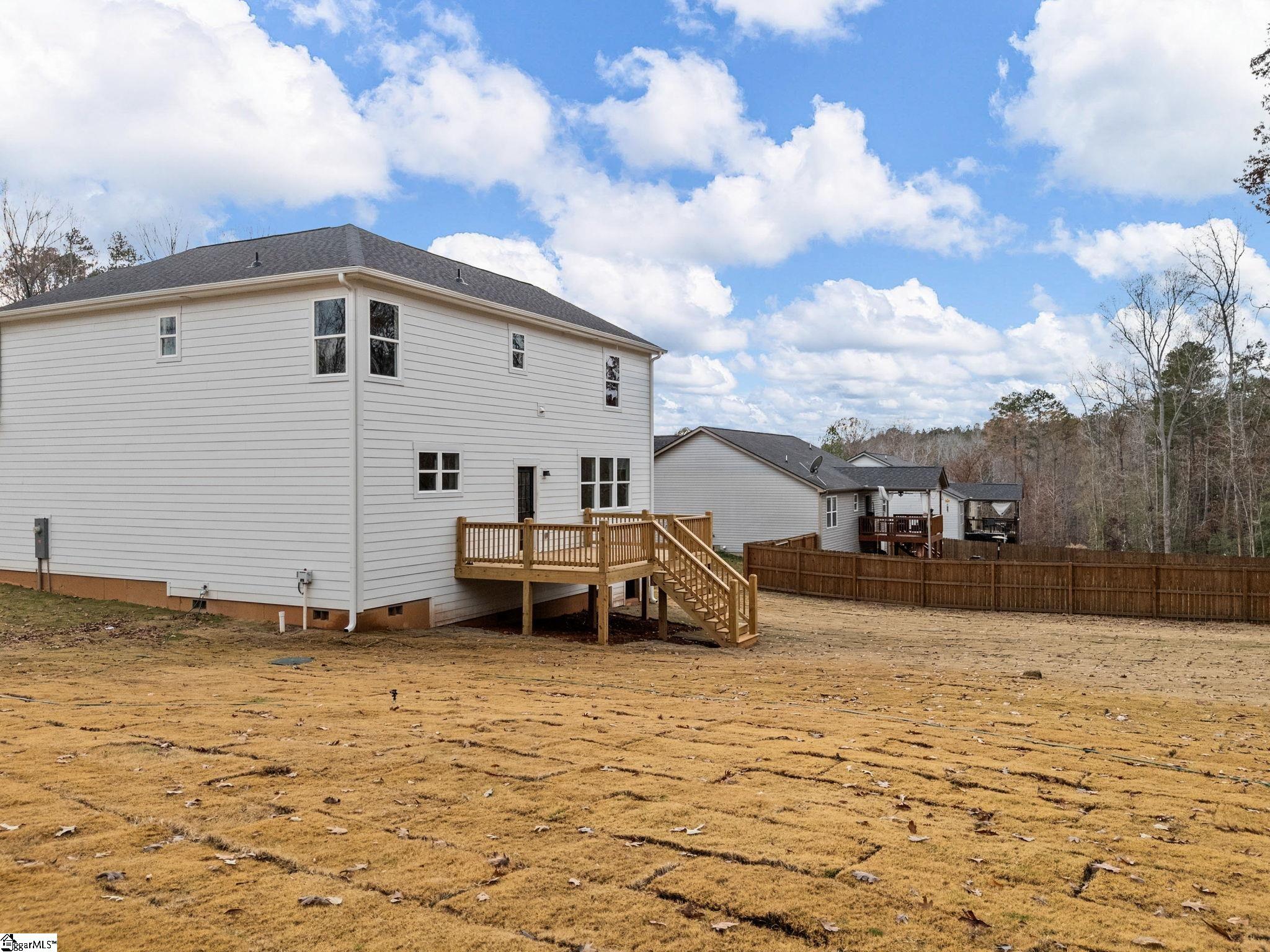 Welcome to country living at its finest! This brand new 4-bedroom, 2.5-bathroom home sits proudly on an expansive 60-acre lot, offering the perfect blend of rural tranquility and modern convenience. The 2,321 square feet of thoughtfully designed living space features an open concept layout with luxury vinyl planks flowing throughout the first floor. The heart of the home showcases gorgeous quartz countertops, stainless steel appliances, and a stylish tiled backsplash. Cozy up by the electric fireplace or step outside to enjoy the spacious back deck and welcoming covered front porch. The modern farmhouse aesthetic shines through quality construction, including Hardie board siding and a finished two-car garage. Upstairs, you'll discover spacious bedrooms and a convenient walk-in laundry room complete with quartz countertops and utility sink. The home features tiled bathroom floors and showers, plus a flexible first-floor room perfect for your lifestyle needs. Located in award-winning Spartanburg District Six Schools area, you'll enjoy peaceful country atmosphere while remaining conveniently close to shopping, dining, and entertainment. The sodded front and back yards complete this exceptional property.