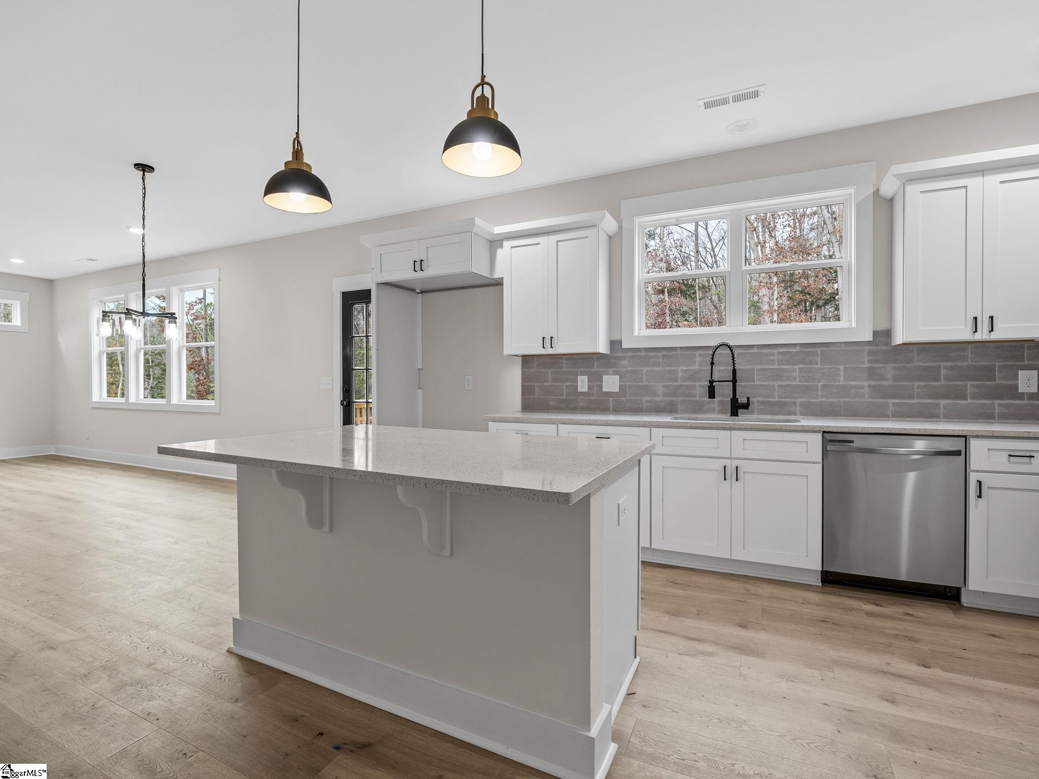 Welcome to country living at its finest! This brand new 4-bedroom, 2.5-bathroom home sits proudly on an expansive .60-acre lot, offering the perfect blend of rural tranquility and modern convenience. The 2,321 square feet of thoughtfully designed living space features an open concept layout with luxury vinyl planks flowing throughout the first floor. The heart of the home showcases gorgeous quartz countertops, stainless steel appliances, and a stylish tiled backsplash. Cozy up by the electric fireplace or step outside to enjoy the spacious back deck and welcoming covered front porch. The modern farmhouse aesthetic shines through quality construction, including Hardie board siding and a finished two-car garage. Upstairs, you'll discover spacious bedrooms and a convenient walk-in laundry room complete with quartz countertops and utility sink. The home features tiled bathroom floors and showers, plus a flexible first-floor room perfect for your lifestyle needs. Located in award-winning Spartanburg District Six Schools area, you'll enjoy peaceful country atmosphere while remaining conveniently close to shopping, dining, and entertainment. The sodded front and back yards complete this exceptional property.
