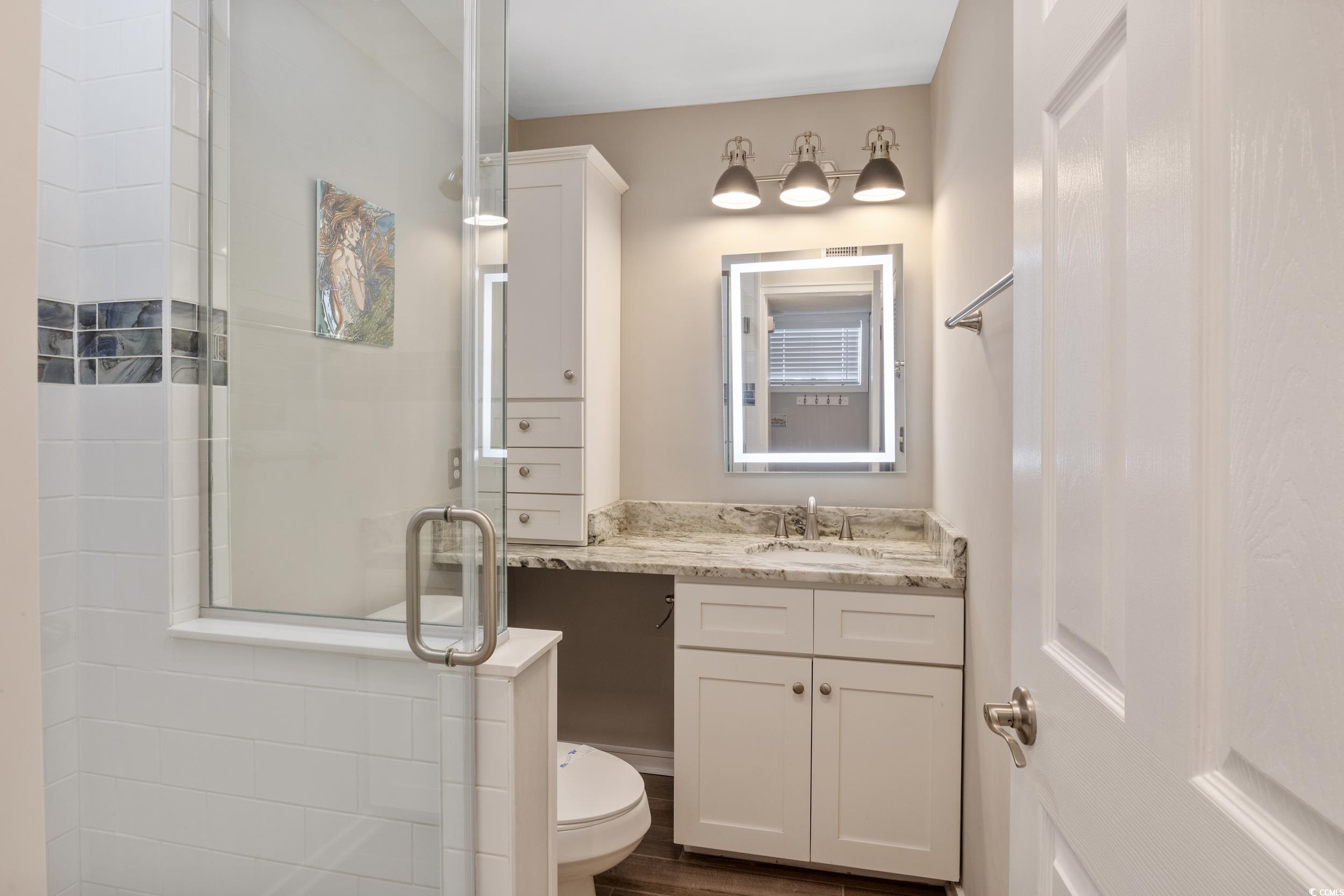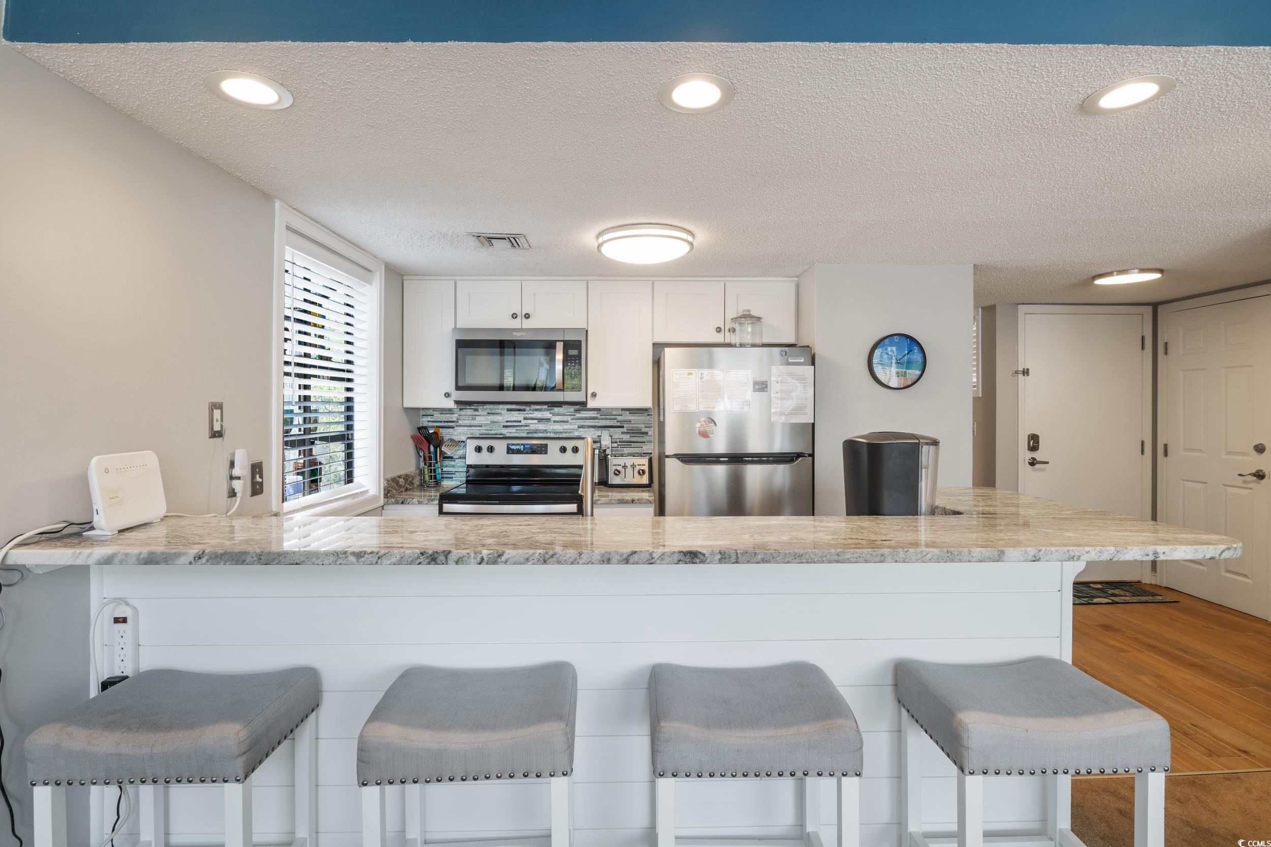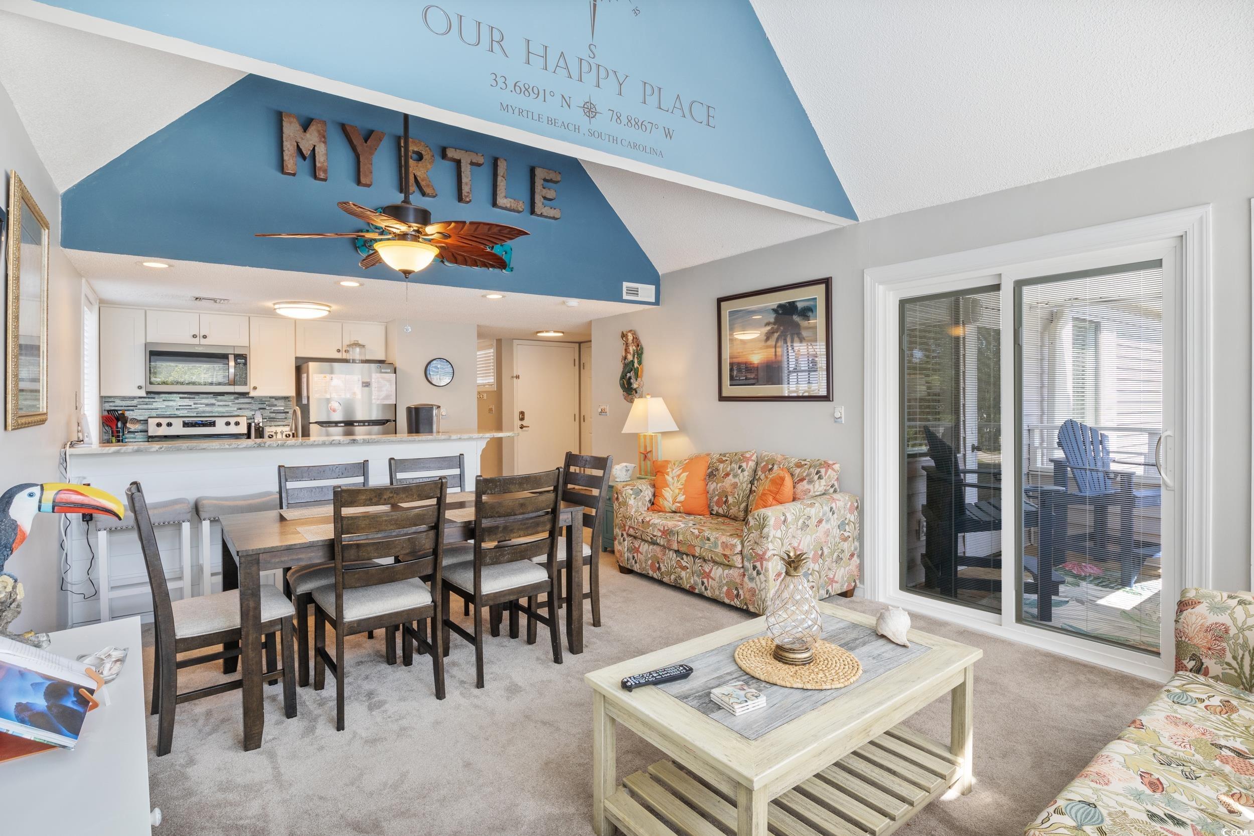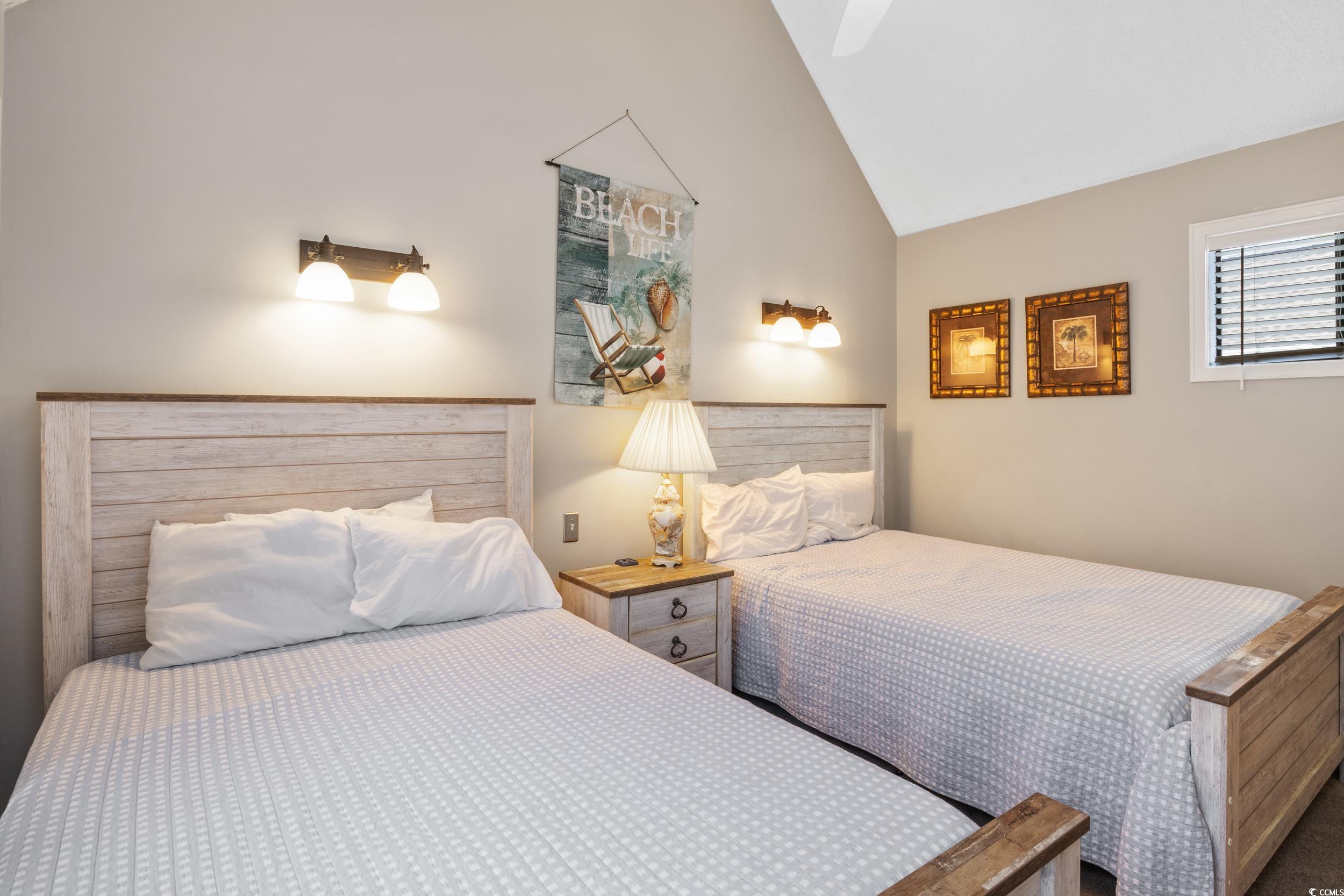 Hands down the nicest condo in this community. Beautifully remodeled 2/2 condo a block from the ocean. Fully furnished with large windows and vaulted ceilings, lots of natural light. Kitchen renovated new cabinets, granite counters, stainless appliances. Both baths renovated with walkin tile showers, new cabinets. Lots of new furniture. This is a turnkey condo with great potential as rental. 3 blocks to the longest wooden pier on the east coast. Owners are allowed golf carts, however, there is a waiting list. This community is known for its amenities... 2 pools, sauna, steam room, playground, 6 picnic areas and grills. Tennis/pickleball court, Workout Rm, Onsite Sports Bar & Grill (Harry the Hats) and an arcade with pool tables & video games. 4 minutes to Barefoot Landing, Tanger Outlets, Bass Pro Shop, and Walmart.