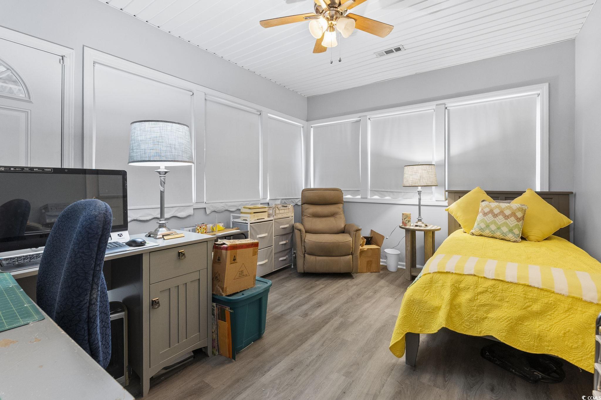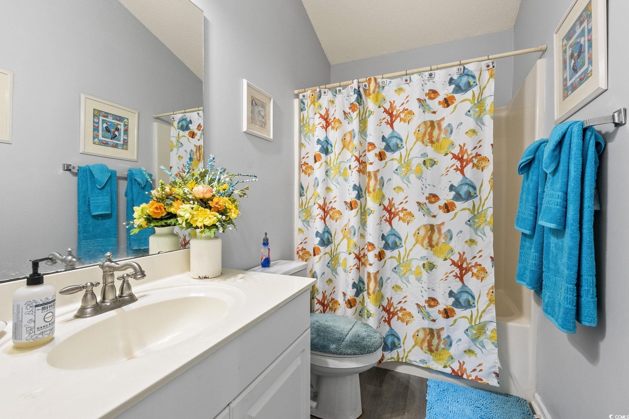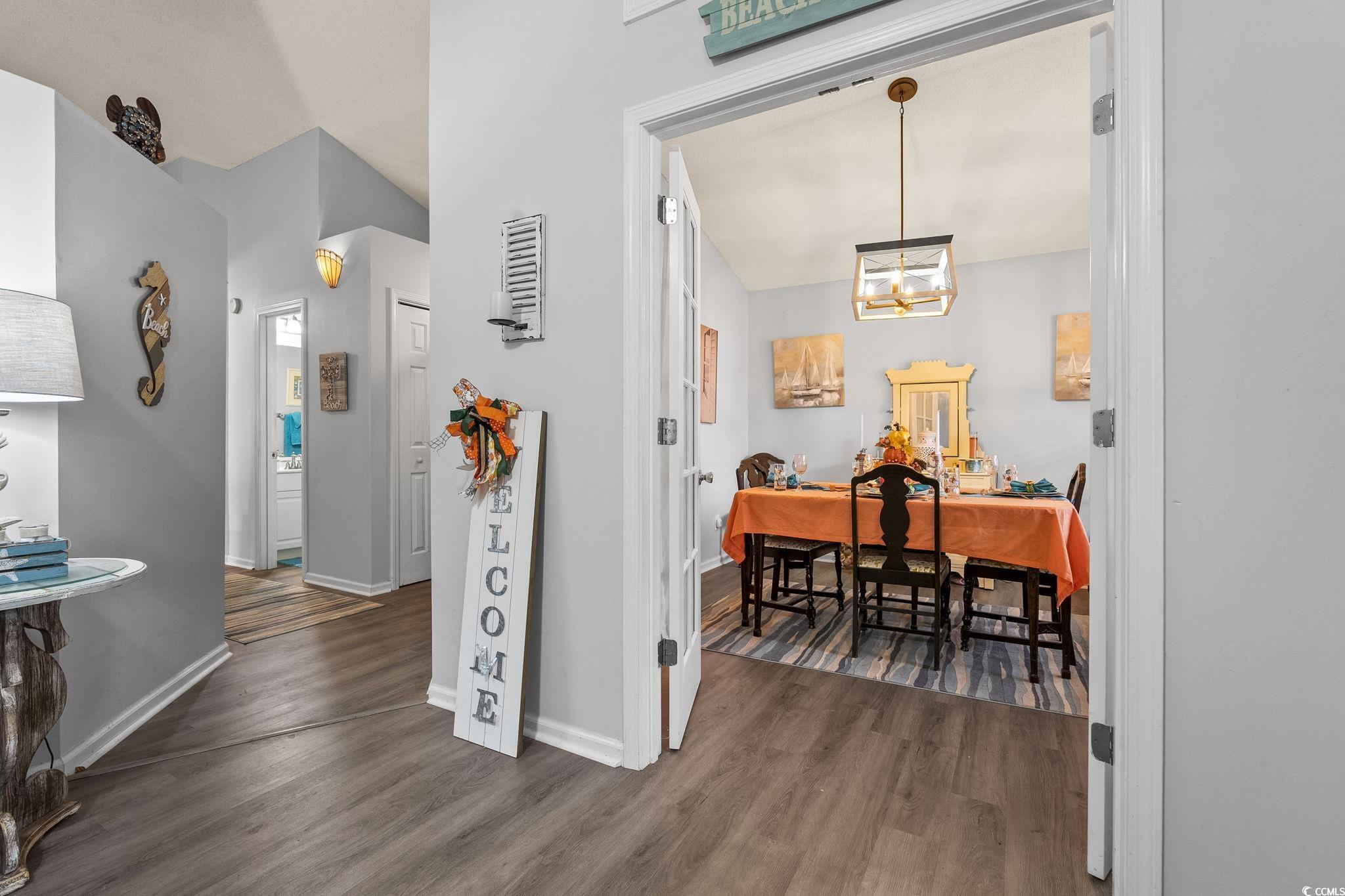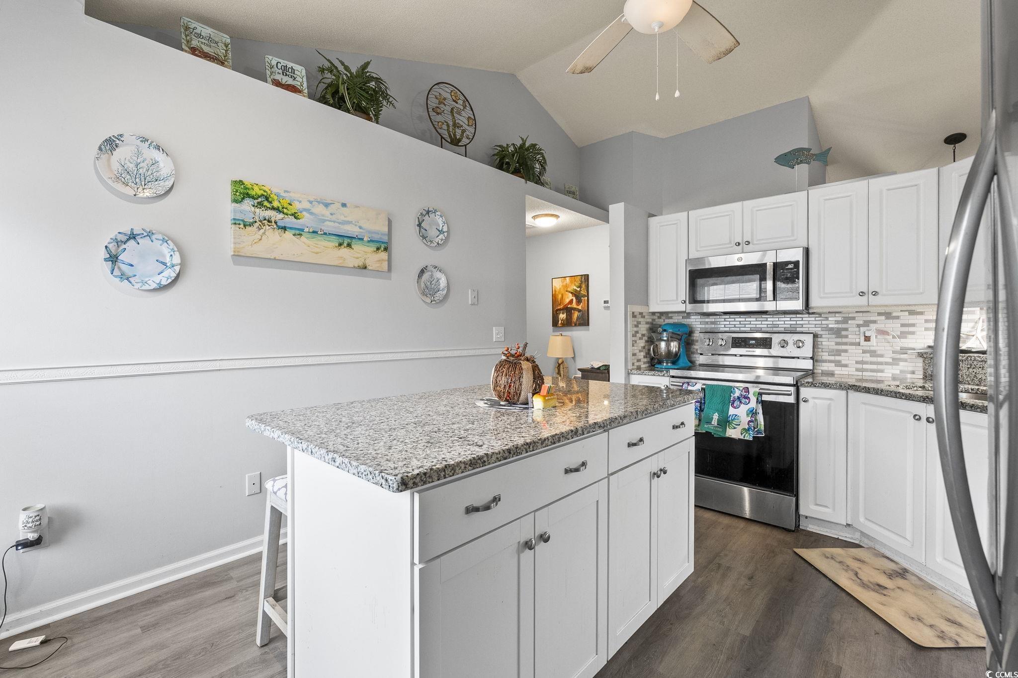 This beautifully maintained single-level home offers a bright, open layout with coastal charm throughout. The spacious living room features vaulted ceilings, neutral tones, and abundant natural light - an ideal space for relaxing or gathering. The kitchen is designed for both style and functionality with granite countertops, stainless steel appliances, tile backsplash, and a large peninsula with bar seating that opens seamlessly into the main living area. The split-bedroom floor plan provides privacy, with the primary suite featuring a tray ceiling, walk-in closet, and private en-suite bath. Two additional bedrooms are perfect for guests, or a home office, offering flexible options to suit your lifestyle. A bright sunroom extends the living space and opens to a covered patio, ideal for outdoor dining or morning coffee. The fenced backyard includes a storage shed - great for tools, outdoor equipment, beach chairs, and coolers. Out front, a welcoming porch framed by mature landscaping creates a perfect spot to relax and enjoy the coastal breeze. This home is ideally located just a short drive to Market Common, golf courses, restaurants, water sports, entertainment, and the Murrells Inlet MarshWalk - plus the beautiful Atlantic beaches. If you've been searching for a convenient, low-maintenance lifestyle close to everything the Grand Strand has to offer, this is the one. Square footage is approximate and not guaranteed. Buyer is responsible for verification.
