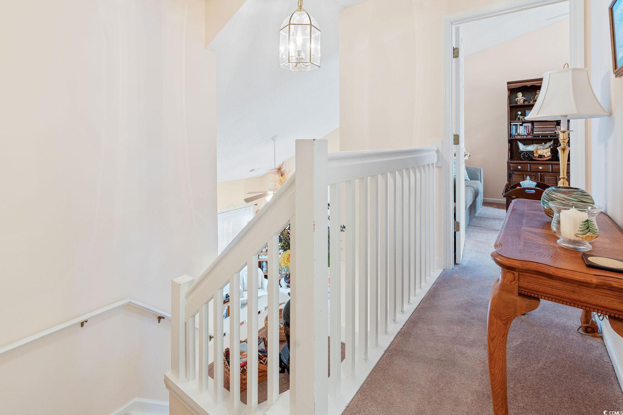 Delightful, MOVE IN READY end unit located in the desirable Windsor Gate community at Market Common. This open and airy home has been well-maintained and never rented. Living room features vaulted ceilings and hardwood-look laminate flooring. Newly painted kitchen includes new quartz countertops, ceramic tile flooring, and white appliances with a brand new stainless French door refrigerator. Dining area opens to an EZE Breeze sunroom with access to a private patio. First-floor primary suite includes two closets and a bath with double vanity. Upstairs you will find a large loft-style bedroom with two closets and adjoining bath with double vanity, tile floor, and an upgraded tile shower. A third bedroom overlooks the pond across the street. Brand new luxury vinyl plank flooring was recently installed on the second floor. Additional features: built-in surge protection, roof replaced in 2022, and a one-year Choice Home Warranty. HOA dues include exterior maintenance/insurance, landscaping, water, trash, and community pool. Conveniently located within walking distance to shopping, dining, and entertainment, and just one mile to the beach. With community-wide aesthetic improvements in the planning stages, residents can look forward to enhanced curb appeal and long-term value appreciation. All measurements are approximate and not guaranteed. Buyer is responsible for verification.