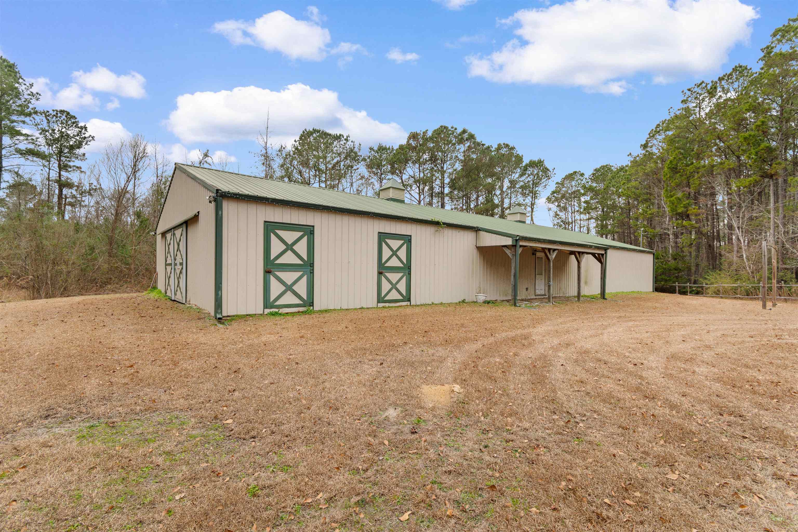 Down a quiet, tree-lined drive where the only traffic is a pair of deer or a trail of wild turkeys, you’ll find a place that feels like coming home. This 20-acre private range isn’t just a property—it’s a lifestyle waiting to be rediscovered. With open skies, a stocked pond, trails winding through the trees, and plenty of space for horses or gatherings, this land speaks to those who crave room to breathe and a slower, simpler pace. The outdoors steal the spotlight here. A large commercial barn, fenced pastures, and meandering trails make this a dream for horse lovers and hobby farmers alike- truly an equestrian's paradise. Imagine summer afternoons under the trees, children exploring the fields, or friends gathered by the pond as you drop a line and reel in your supper. With abundant wildlife—songbirds, turkeys, and deer—every day feels like a page from a nature journal. At the heart of the property sits a warm and inviting home, lovingly maintained and move-in ready. The entire first floor is a private Owner's retreat, featuring a spacious primary suite with a cozy sitting area, full bath with shower, double vanities and a large whirlpool soaking tub, generous walk-in closet, real wood flooring, a spiral staircase and a large storage room. Use your imagination for the front entryway, whether a sun-drenched indoor garden area or mud room, the possibilities are endless as it stretches across the entire width of the home, connecting outdoor living with everyday functionality—a perfect spot for muddy boots, potted herbs, or morning coffee with the horses in view. Upstairs, the main living level is full of light and charm. The living room with fireplace, kitchen with appliances included, and two spacious bedrooms create a welcoming family hub. A full and half bath, plus a loft space ideal for a creative studio, home office, or play area, make it easy to live, work, and relax comfortably. Step out onto the screened porches—which run the entire length of the back of both stories—and enjoy panoramic views of the wetlands buffer, and the ever-changing colors of the countryside. The property runs on a fresh artesian well, offering crystal-clear water, and rests within the highly sought-after Aynor School District making it as practical as it is peaceful. And though it feels wonderfully removed from the rush of the world, you’re still only 30 miles from the beach, giving you the best of both rural and coastal living. Whether you dream of keeping horses, hosting a gorgeous outdoor venue, or simply raising a family surrounded by the sights and sounds of nature, this property welcomes every vision. It’s a place built for connection—to land, to family, and to the kind of quiet joy that only country living can bring. A little TLC to the fences, grounds, and outbuildings is all it will take to bring this land back to its full glory. Come see this rare blend of space, beauty, and potential—your next chapter begins here on the range.