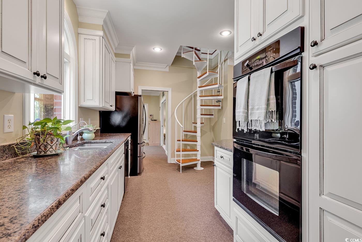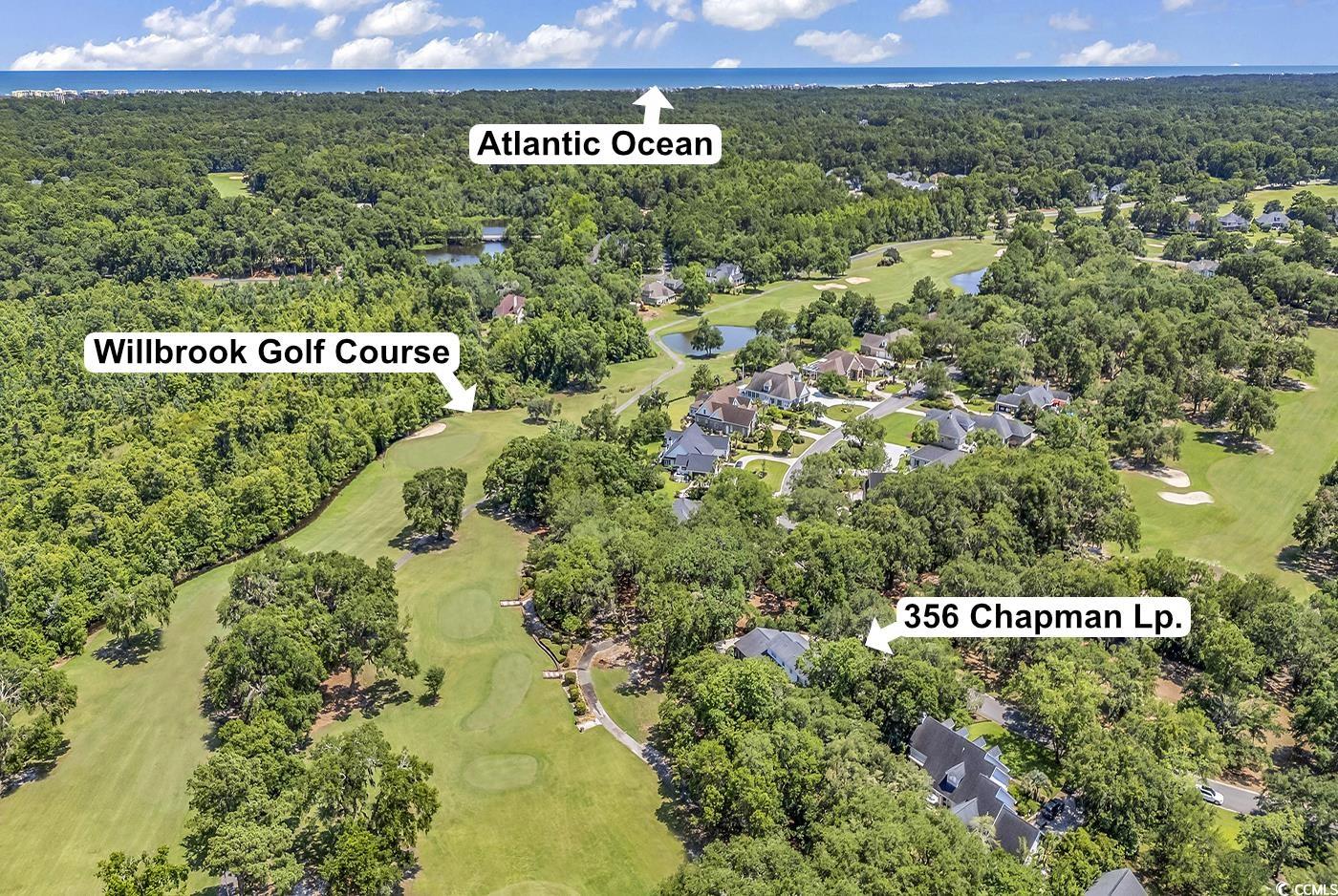 A picture-perfect setting in the Prestigious Willbrook Plantation Community! Welcome to 356 Chapman Loop! This stunning brick home is nestled under magnificent century old live oak trees draped in Spanish moss while bestowing unpretentious southern elegance. Surrounded by an abundance of flowering hydrangeas, camellias, azaleas and a variety of additional plantings – the home also offers stunning views of the 9th Tee Box and Fairway of the Dan Maples designed Willbrook Plantation golf course! Additionally, unobscured views of the 8th Green are granted from the front of the home, as well. Custom-built and well-designed, the home offers 5 bedrooms, 3.5 baths with an extended sideload garage. Upon entry, the two-story foyer with an abundance of natural light streaming through the set of decorative windows located above is most impressive – while also promoting the beauty of the hardwood flooring and soaring staircase before you. The beautiful hardwood flooring continues into the expansive living room with ornate crown molding, and a gas log fireplace enriched with a handcrafted mantle that provides cozy warmth on cool evenings. Breathtaking views that surround the home can be captured from this room due to the well– designed floorplan that extends from front to back of the home. This impressive feature is also incorporated in the kitchen. The kitchen was recently updated to include granite countertops, custom cabinetry that includes pull-out drawers, a double oven, new refrigerator, dishwasher, pantry and a breakfast nook. Additionally, easy access to the second floor can be reached by way of the spiral staircase that is cleverly positioned here. The formal dining room, with easy access from the kitchen, is the perfect place for family gatherings or when entertaining friends. This lovely room has an appealing large bay window showcasing the beautifully landscaped backyard along with captivating golf course views. The decorative crown molding, ornamental ceiling medallion and chair railing add additional charm to this dining area that can easily accommodate a large table, sideboard and a hutch, while providing direct entry to the formal living room which is the perfect place for continued after dinner conversations. The spectacular Carolina Room with beautiful hardwood flooring, electric fireplace and wall to ceiling windows provides spectacular views of the lush backyard and the golf course. This serene space is perfect for relaxing and taking in all the natural beauty that surrounds this exceptional oasis. The primary bedroom suite is also located on the main floor. This room features a sitting area flanked by custom built-ins on either side of windows enhanced with plantation shutters, crown molding, and ceiling fan. The ensuite also offers plantation shutters, an easy entry shower, dual vanities, a large walk-in closet, two spacious closets and linen closet and a large walk-in. This main level also provides a conveniently located half bath, a washer & dryer and, as an added feature, this main level is entirely handicap accessible. The second level also offers spectacular views and provides 4 bedrooms and 2 full baths. One bath is a Jack & Jill with double sinks and a shower/tub combination and there is also a laundry room with a full-size washer & dryer. Each bedroom has a ceiling fan and an abundance of closet space with the largest bedroom offering built-ins with shelving to provide flexibility. Custom Hurricane shutters are stored in the garage and there is also an irrigation system. Willbrook Plantation is a gated golf course community that offers exceptional amenities to its residents that include a community pool and clubhouse. Residents can also enjoy a short golf cart ride to the private ocean beach access at Litchfield by the Sea providing abundant parking, tennis courts, beach clubhouse, showers, restroom conveniences, sun decks, fishing/crabbing docks as well as miles of gorgeous ocean beach to explore & enjoy!