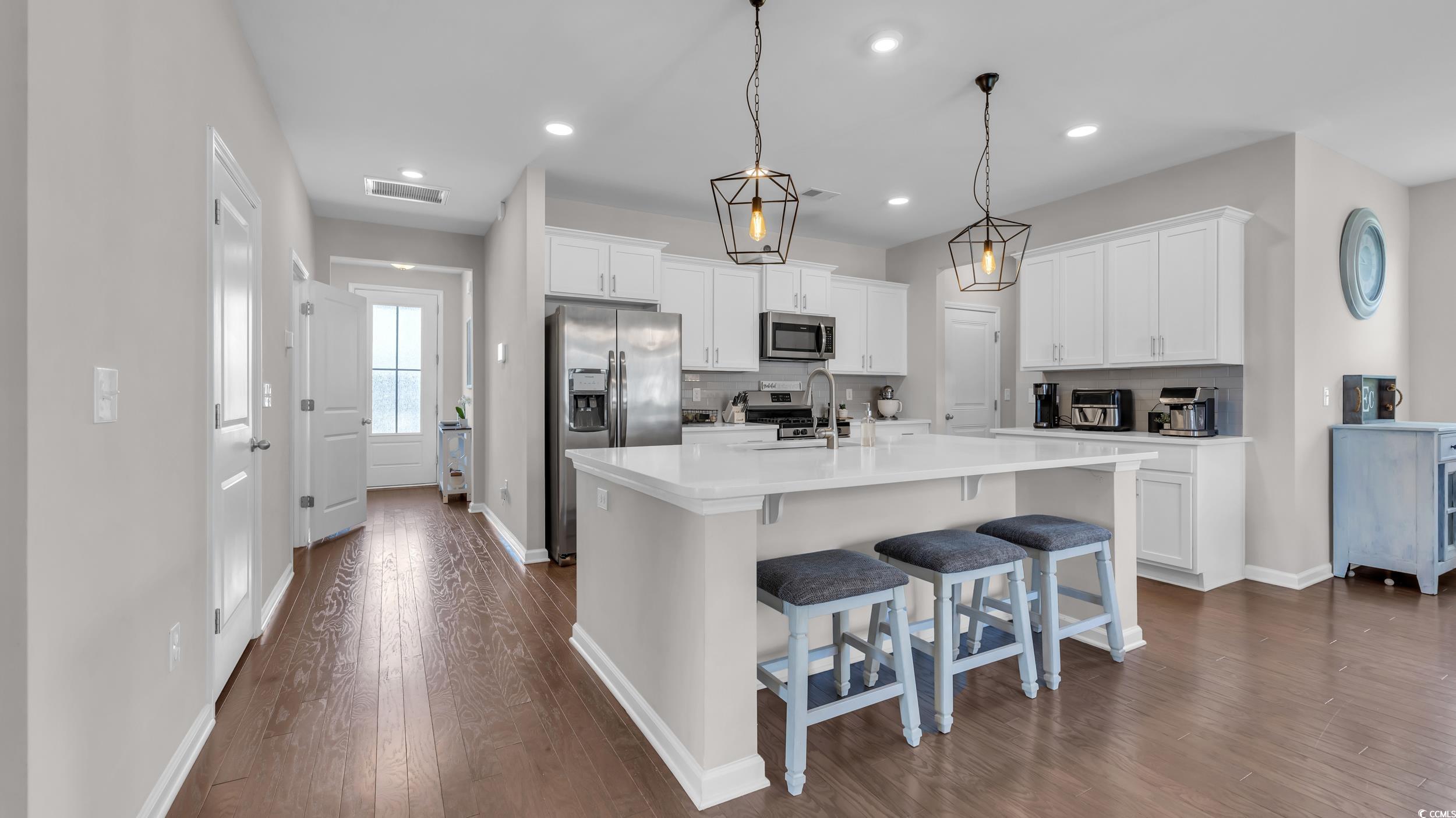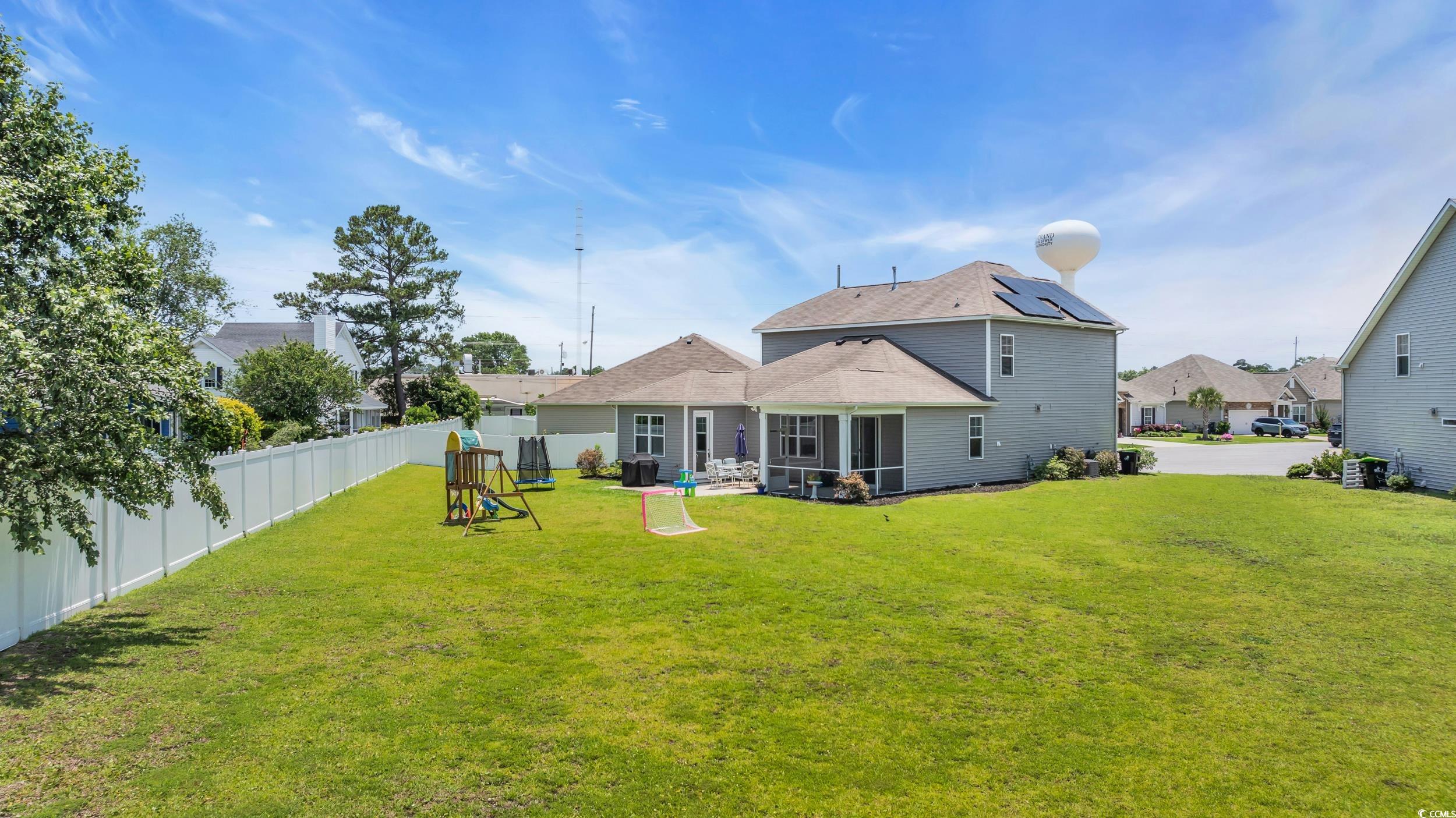 This isn’t just a house near the beach, it’s space, convenience, and comfort all in one. Sitting on a rare .40-acre cul-de-sac lot, this home gives you the kind of yard you simply won’t find this close to the sand. Whether it’s weekend cookouts with the natural gas grill hookup or quiet evenings in your oversized fenced yard, outdoor living comes naturally here. Inside, the sought-after Belfort floor plan offers two separate living areas perfect for entertaining friends or spreading out for everyday life. The spacious primary suite feels like a true retreat, complete with a private entrance to the backyard. And with a solar system already installed and paid off at closing, you can enjoy energy efficiency without the expense. Just a golf cart ride to the beach and minutes from Surfside’s new Entertainment District, Market Common, dining, golf, shopping, and schools, this home delivers the lifestyle everyone dreams of, but few can find. Schedule your showing today and see what Surfside living really feels like.