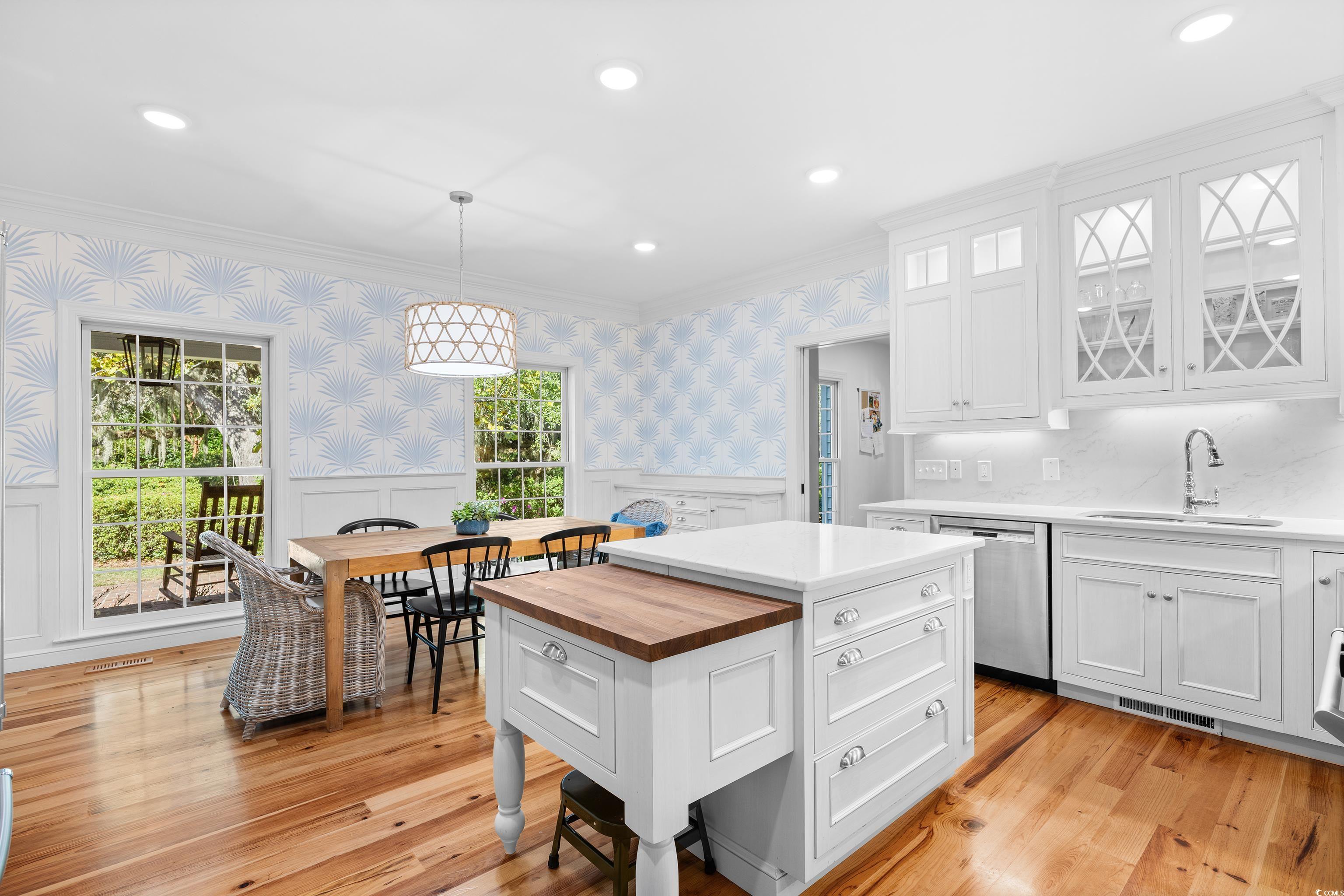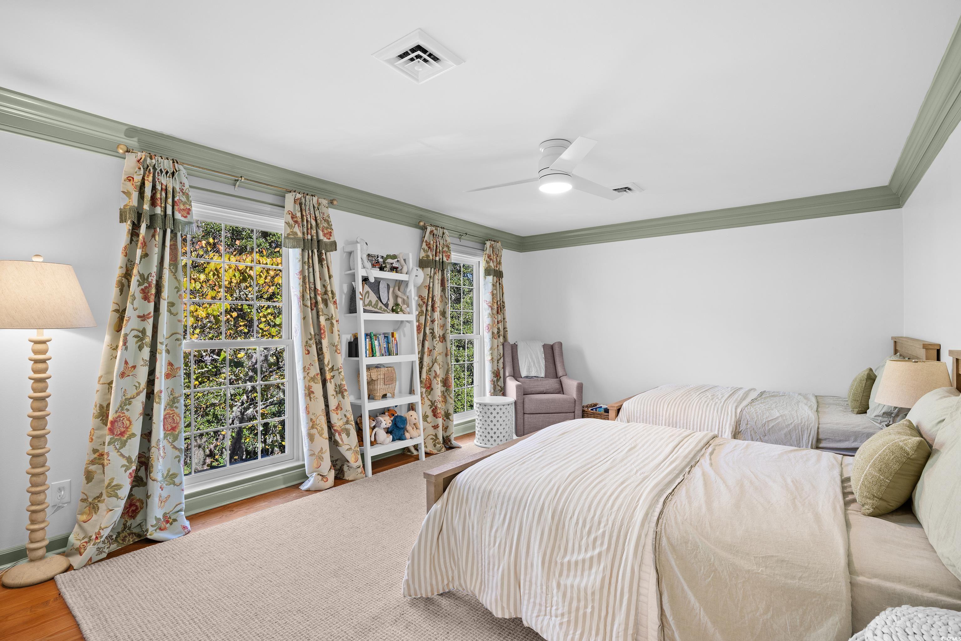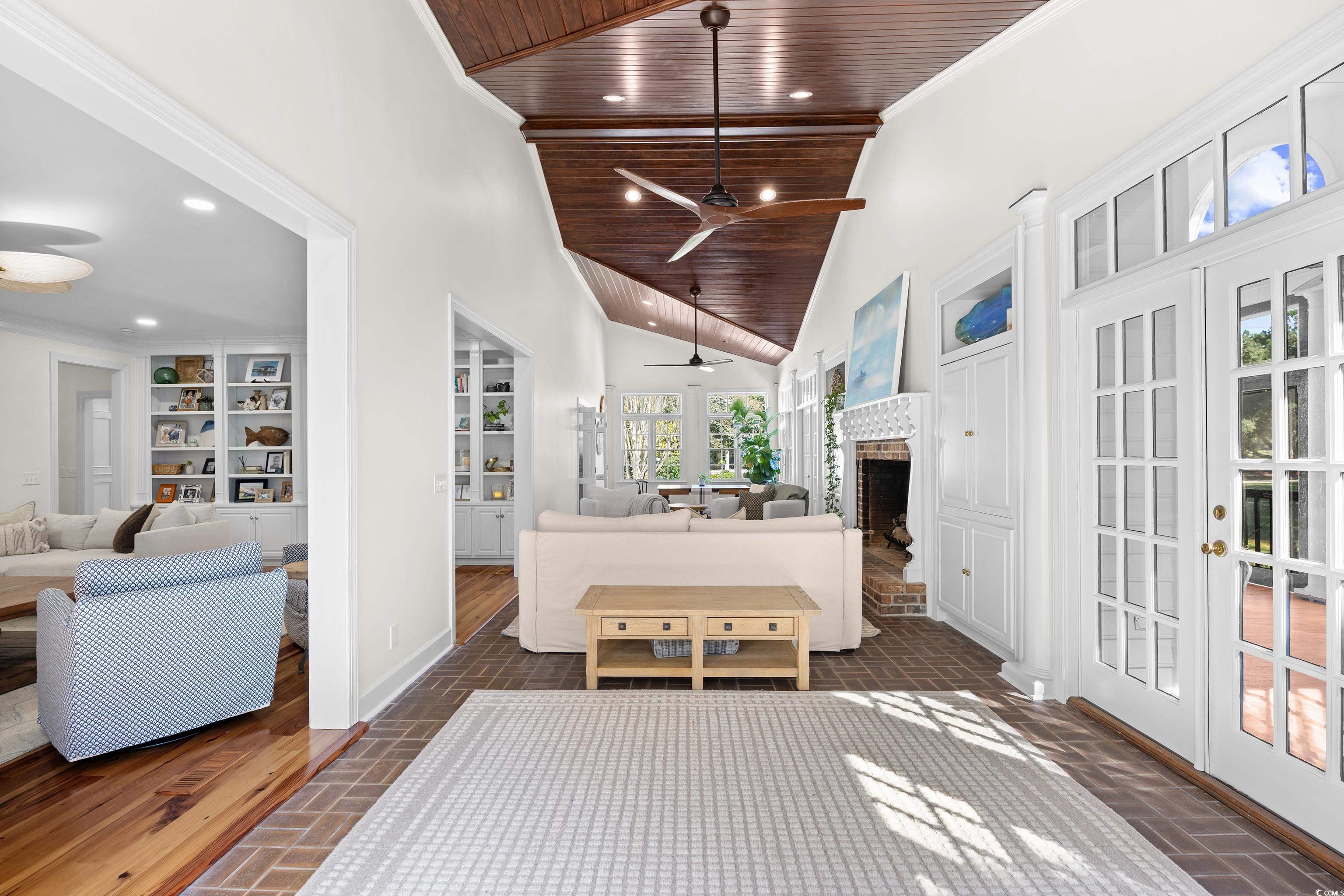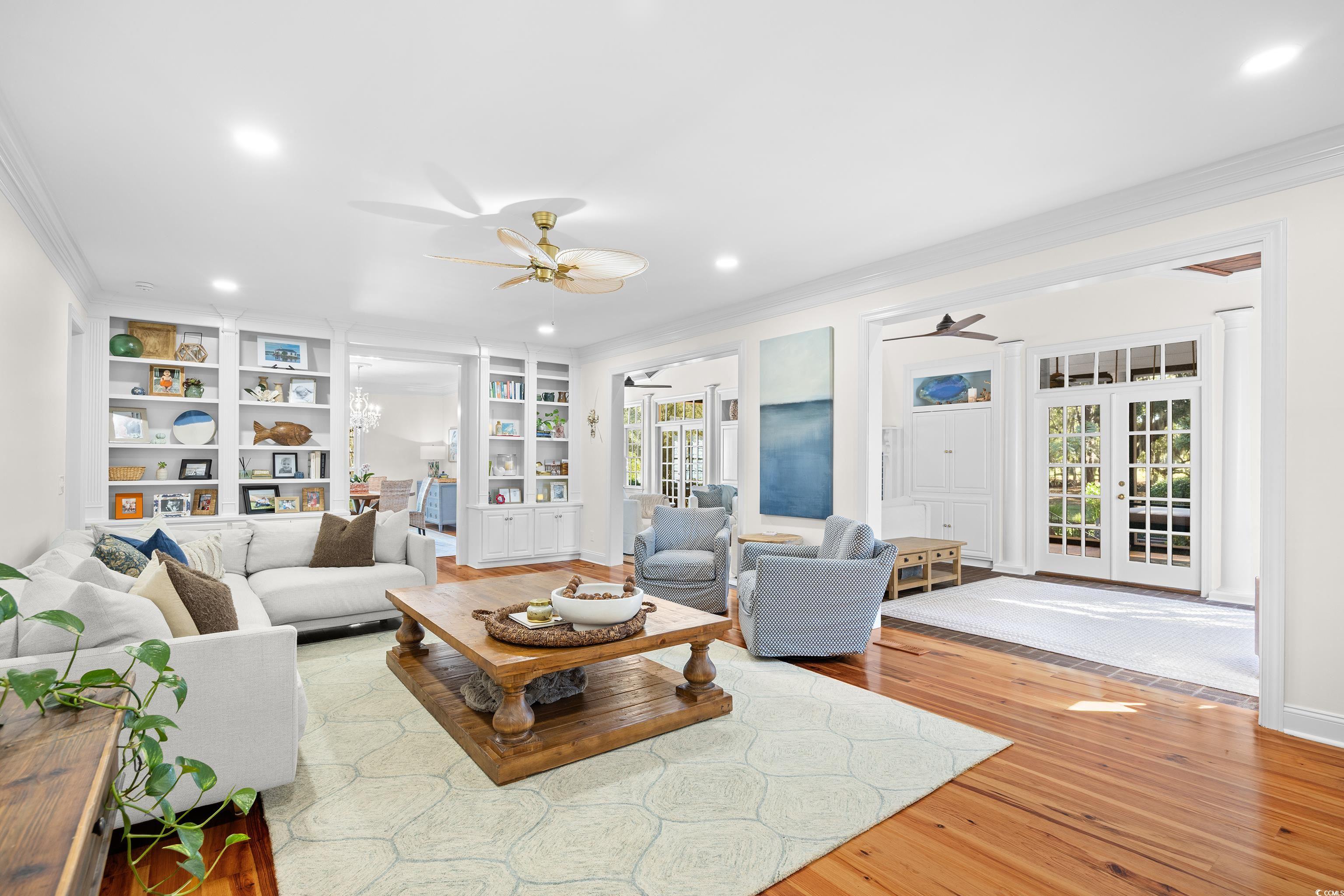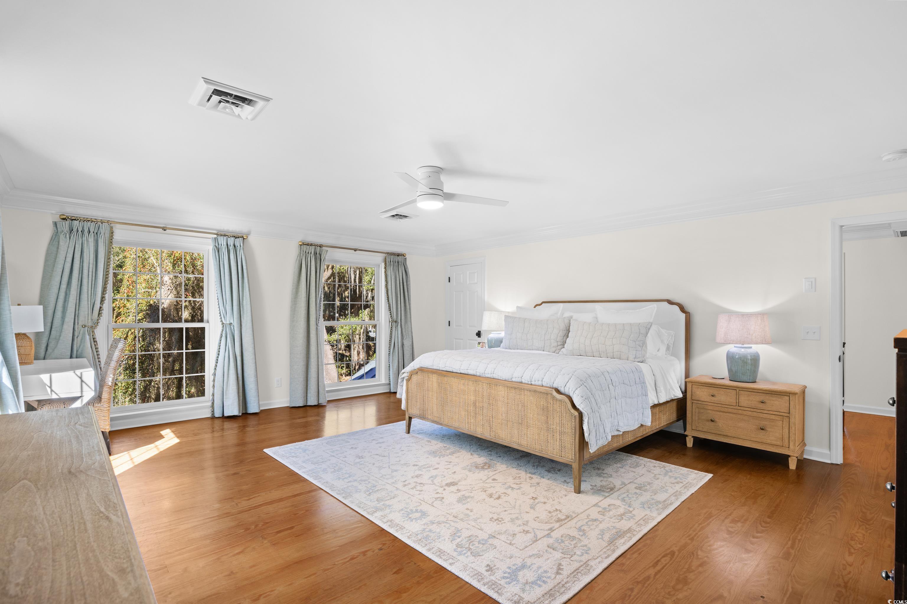 Uncommon opportunity in Rossdhu Plantation, a private riverside neighborhood just off Waverly Road. Settled within a tranquil rural niche of Pawleys Island where homes rarely become available, Rossdhu offers quintessential Lowcountry living at its best. Private 1.6-acre corner lot boasts a 4-bedroom, 3.5 bath, two-story home with nicely executed floor plan as well as an assigned boat dock within view of the Waccamaw River. Majestic live oaks framing the classic front porch set the stage for this home in true southern style. Lovingly maintained, this custom-built home comes move-in ready with timely renovations. Custom features include antique heart-pine floors, two fireplaces (one gas, one wood), built-in shelves and cabinets, quartz kitchen counters, and stainless-steel appliances, including a gas stove and double ovens. Home improvements by Beglin Construction include new Anderson windows, new exterior siding, refinished interior woodwork, fresh paint inside and out, 300 sq. ft. mudroom addition, bathroom updates/renovations, refurbished dock, and more. Common areas include a formal living room with fireplace, formal dining room, great room with fireplace and vaulted wood ceiling, eat-in gourmet kitchen, powder room, and screened back porch. All common areas, plus one of two primary bedroom suites, are on the main floor. The second primary bedroom suite along with two more bedrooms and a full bath are on the top floor. Additional features include attached 2-car garage, storage shed, boat trailer parking, and mature landscape beautifully executed to create outdoor spaces for personal enjoyment and social occasions. Convenient to schools, health care facilities, golf courses, unique shops and restaurants, as well as to some of the finest beaches on the east coast. Pawleys Island occupies a unique peninsula location on the Grand Strand between beach and river offering small-town charm, natural beauty, and a multitude of outdoor recreational opportunities. This Lowcountry retreat will undoubtedly provide a lifetime of enchantment.