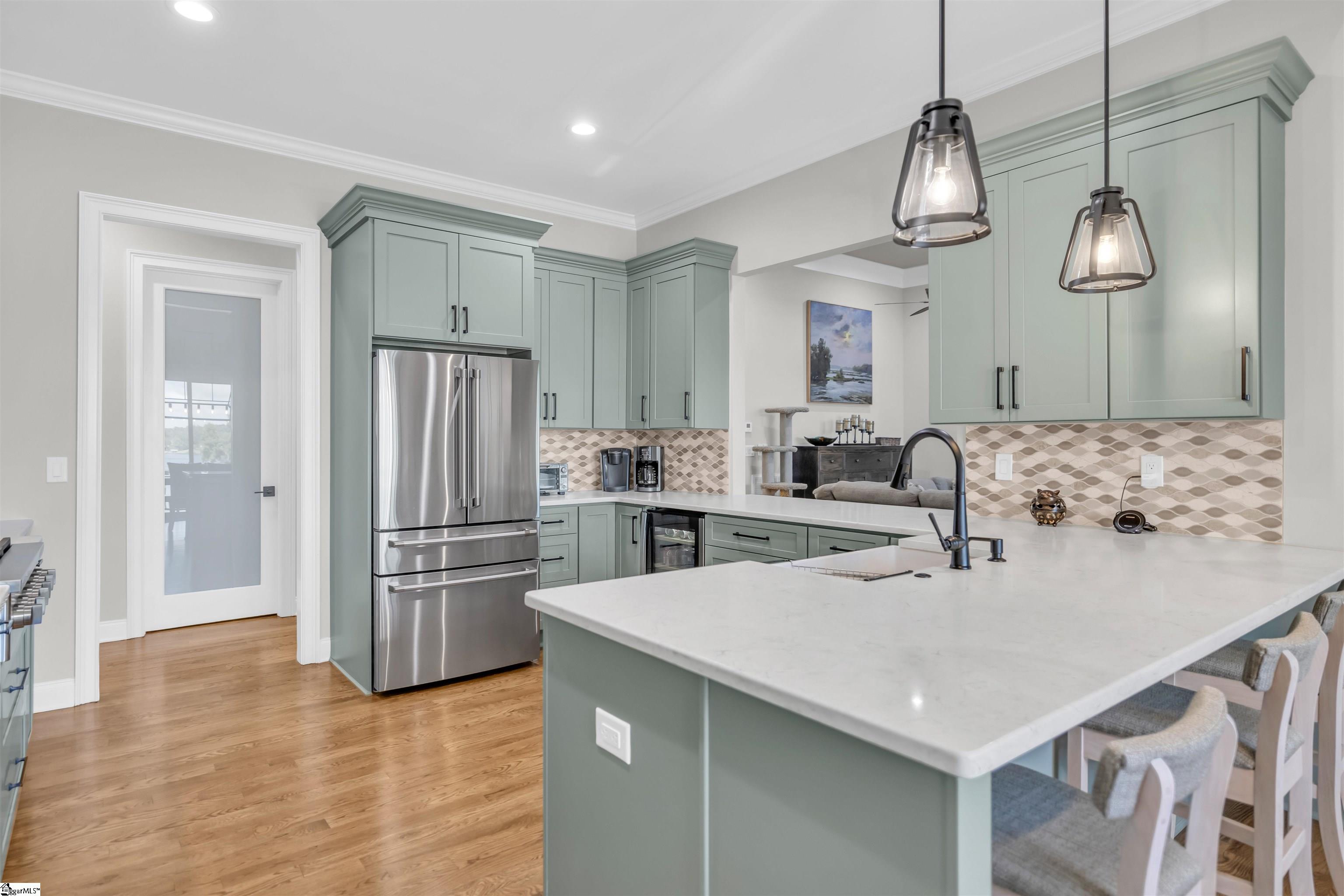 Come see this meticulously maintained lakefront home located in the Retreat at Grand Harbor! This spacious home offers incredible curb appeal and expansive lake views! You will be impressed with the quality and style of this incredible home! Upon entering you will be greeted with a spacious and bright great room featuring beautiful white oak 3/4” hardwood flooring, soaring 12-foot Coffered Ceiling, brick 42” Heatilator direct vent gas fireplace with solid wood mantle and custom cabinetry and shelving. Oversized twelve-foot sliding door that leads to the 18’ x 20’ screened porch with vaulted tongue and groove ceiling. Large home office with beautiful Bay Window perfect for those able to work from home! Spacious and stylish kitchen features GE Cafe Appliances including a 36-inch 6 burner gas range top and double ovens. Quartz Countertops with Farmhouse sink and convenient built-in beverage center! Large custom walk-in pantry is right off the kitchen! There is also access from the kitchen to the open lakeside deck with piped natural gas for convenient grilling. The large Master Bedroom is around a private corner featuring trey ceiling and beautiful lake views! The Master Bath features dual vanity, large soaking tub and walk in custom tile shower. The master closet is fantastic with custom shelving and island. There is an additional doorway from master closet providing easy access to the well-designed laundry room! The hallway leading to the garage features an adjacent mud room with door to side yard porch and a stylish powder room for guests. The oversized 37’ x 25' garage with 11-foot ceiling and 8’H x 10’W Doors equipped with Jack Shaft door openers has tons of space for vehicles and additional items, as well as attic storage. Beautiful Polyurea floor coating provides beauty and a non-slip surface. The downstairs Terrace level offers an additional powder room, two spacious bedrooms both with private bathrooms and walk-in closets! Open and comfortable recreation space featuring a wet bar with granite countertop, pool table and sitting area! Two additional large rooms both heated and cooled offer the opportunity for flex space. Tons of storage, 400-amp service and tankless gas water heater! The lakeside tiled patio offers additional entertainment space with a large outdoor kitchen featuring premium appliances including refrigerator, 40-inch 5 burner natural gas grill, sink, ice container, and power outlets all covered in beautiful, leathered granite for the ultimate in outdoor entertaining! Sealed decks above provide waterproof space below for rain-free get togethers. Built in sound system offers tunes in several areas inside and out! For your waterfront fun you will enjoy this custom composite dock featuring a large covered sitting area, a 30-foot covered slip with an 8000-pound boat lift and dual covered jet-ski lifts both with remotes! Several power outlets, lighting and fresh water are also on the dock! Enjoy boating, jet skiing, swimming or just soaking in the long-range views! Deep year-round water allows for full enjoyment of the lake any time of year! Lake fed full yard irrigation system helps keep the yard looking good at a very reasonable cost! This home includes a $25,000 paid membership to The Grand Harbor Golf and Yacht Club for you to enjoy the amenities including The Patriot Club 18-hole Championship Golf Course, The Cabana with 3 swimming pools, Clubhouse, Food & Beverage Service, Pickleball, Tennis and workout facility! Call today for your private tour and more information on this incredible opportunity!