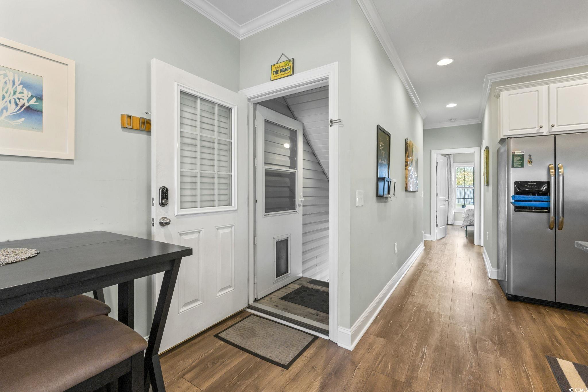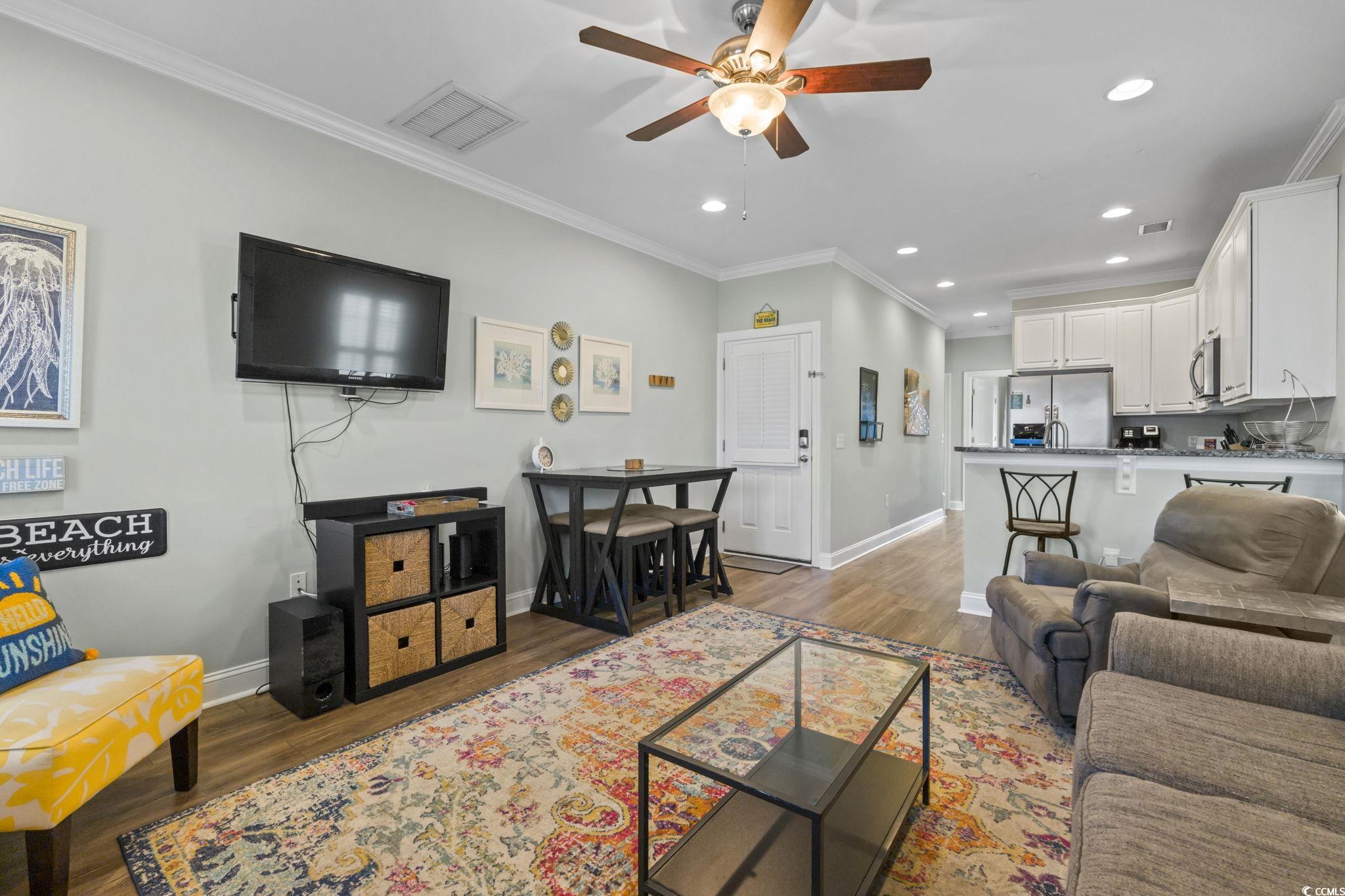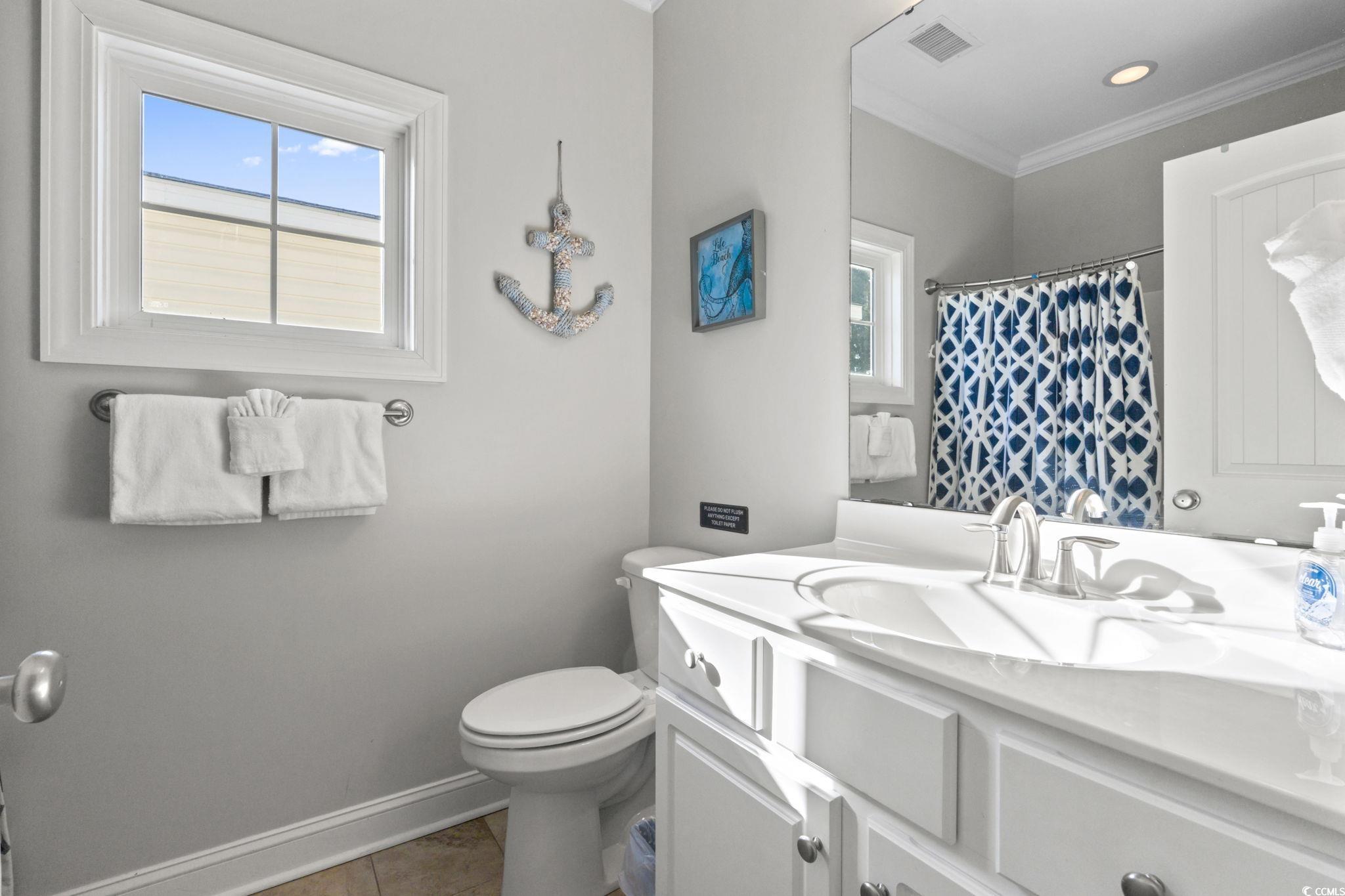 3-bed raised beach home with no HOA, balcony, and golf cart ride to the beach! Looking for a beach home close to the ocean with no HOA and room to relax and entertain? This 3-bedroom, 2-bath raised beach - style home offers the coastal lifestyle many buyers search for near Myrtle Beach and the Grand Strand. Located just a short golf cart ride to the beach, this home blends comfort, flexibility, and easy coastal living. When you enter the main living space, you are welcomed by luxury vinyl plank flooring, neutral paint, recessed lighting, and crown molding, creating a clean and inviting feel. Natural light fills the home, making mornings feel bright and calm. Just off the living area is a 14x4 balcony with a ceiling fan, perfect for enjoying your morning coffee, reading a book, or unwinding in the evening. The kitchen is designed for both daily living and entertaining, featuring 42-inch white cabinets, granite countertops, stainless steel appliances, and a breakfast bar. The primary bedroom is located on the first living level and includes a Jack-and-Jill style bathroom that also connects to the hallway, offering convenience for guests. Upstairs, you will find two additional guest bedrooms with carpeting, ceiling fans, and crown molding, along with an updated full bathroom. The ground level offers open space with recessed lighting, ideal for outdoor gatherings, hobbies, or relaxing after a beach day. The lot is fully fenced, providing added privacy with room for a small pool or spa, and includes a 14x6 attached storage area for beach gear, bikes, or tools. With no HOA, there are no community restrictions, making this home a great option for a primary residence, second home, or investment property. This raised beach home is conveniently located near shopping, dining, entertainment, and local attractions including Barefoot Landing, with easy access to main roads for commuting around the Grand Strand. Whether you are enjoying quiet mornings on the balcony or spending your days at the beach, this home offers a relaxed coastal lifestyle in a highly desirable location. Measurements are not guaranteed and are the buyer's responsibility to verify.