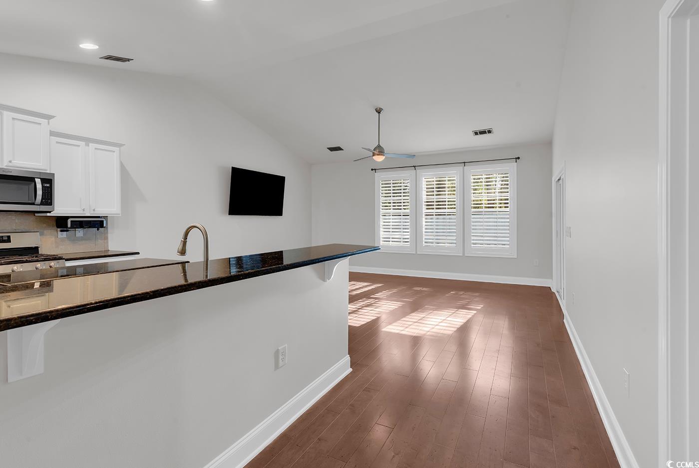 Welcome to 361 St. Catherine Bay Ct. A semi-detached home located in the wonderful Ocean Walk Community. This 3 bed, 3 bath home is only minutes to the beach and is ready for its new owner. The open kitchen / living area have high ceilings, and hardwood flooring. The kitchen features granite countertops, white kitchen cabinets, stainless steel appliances with gas range and an island for more counter space. The living room area has sliding doors that connect to your enclosed porch with Eze-Breeze window system. This is a great place to enjoy your morning coffee, lunch or dinners or just a place to sit and unwind. Just off the kitchen, there is also a place for a formal dining area! Throughout the entire home you will find plantation shutters and windows with Guardian Window Film. The spacious owner's suite is located on the first floor and also has sliding doors that lead out to the enclosed porch. The owner's ensuite includes a walk-in shower with glass doors and a dual vanity. Also on the first floor is a second bedroom and full bath. The third bedroom is located upstairs and has its own full bathroom as well. Other features included in this well-maintained home include a Generac Generator added in 2024, a Privacy fence, back deck and is on a cul-de-sac. Onsite amenities include a heated indoor pool, lazy river, outdoor zero-entry pool, hot tub, and fitness room. With all of this and being close to restaurants, shopping, Market Common and Myrtle Beach State Park, this home is a must see!