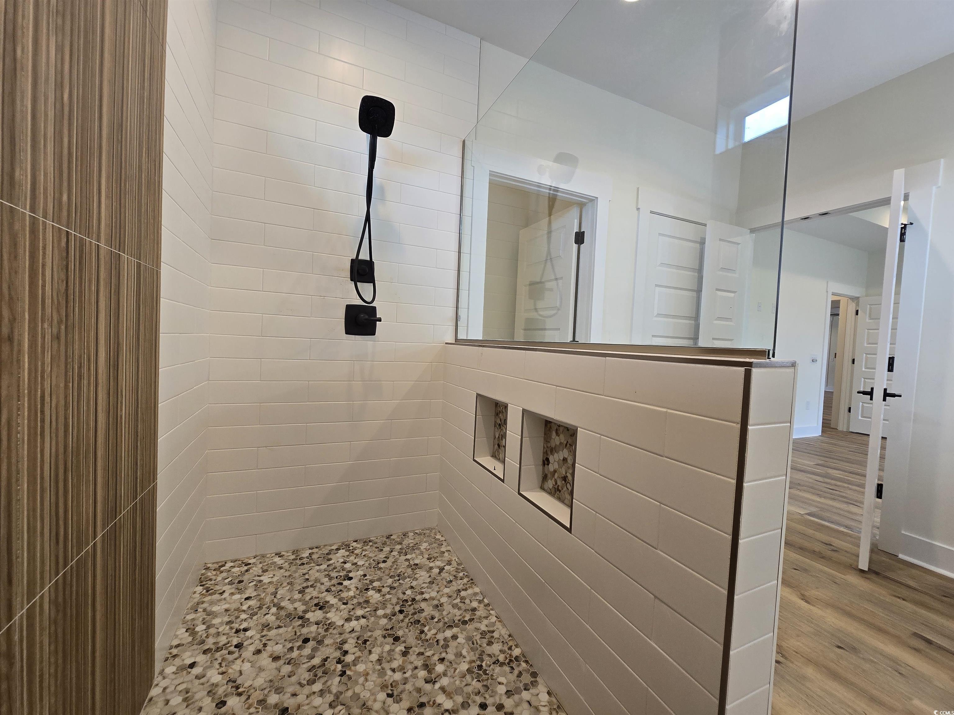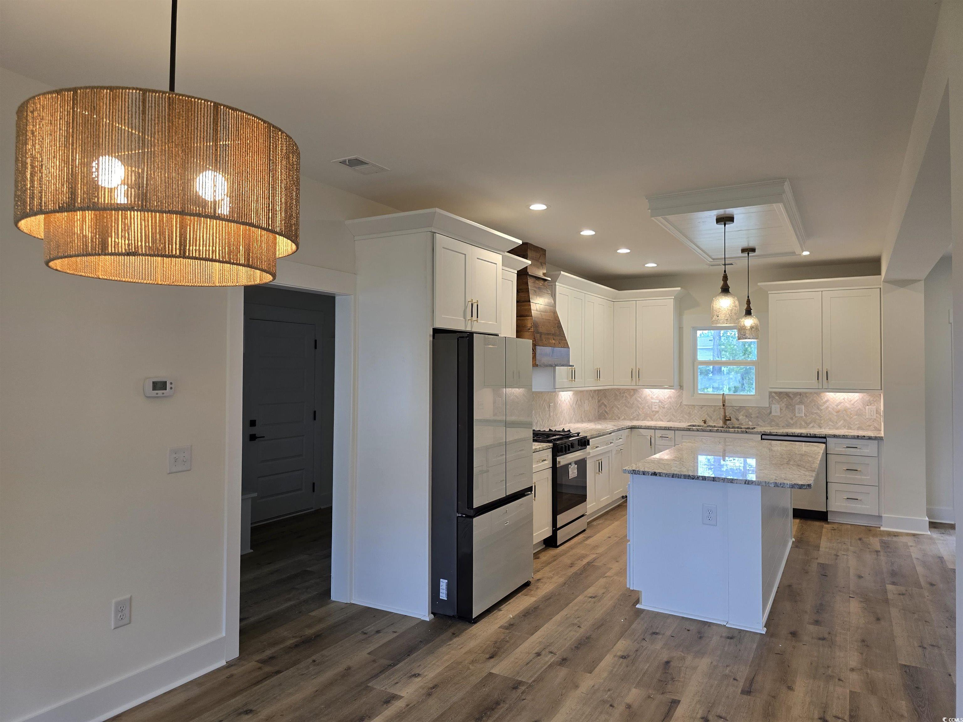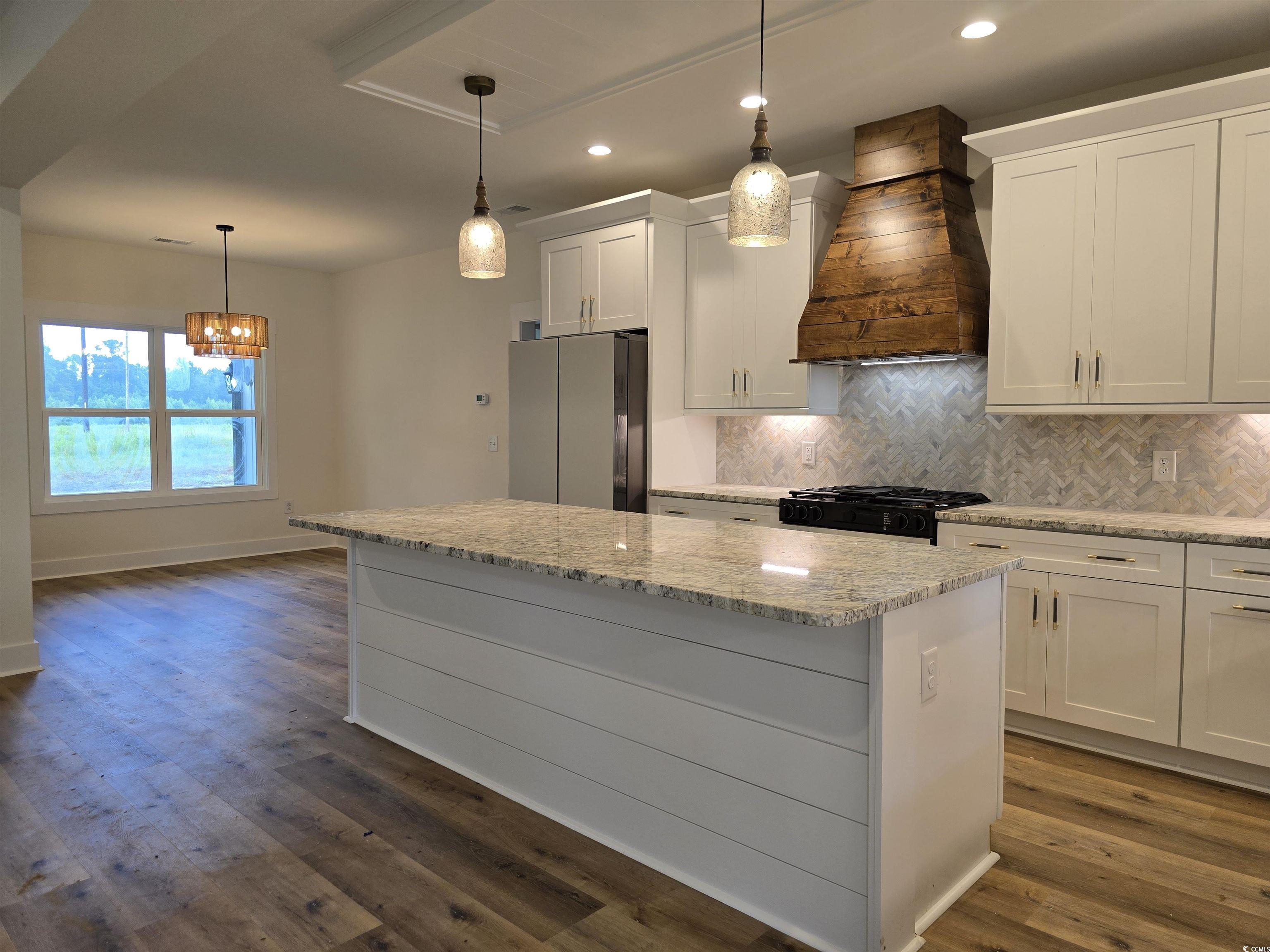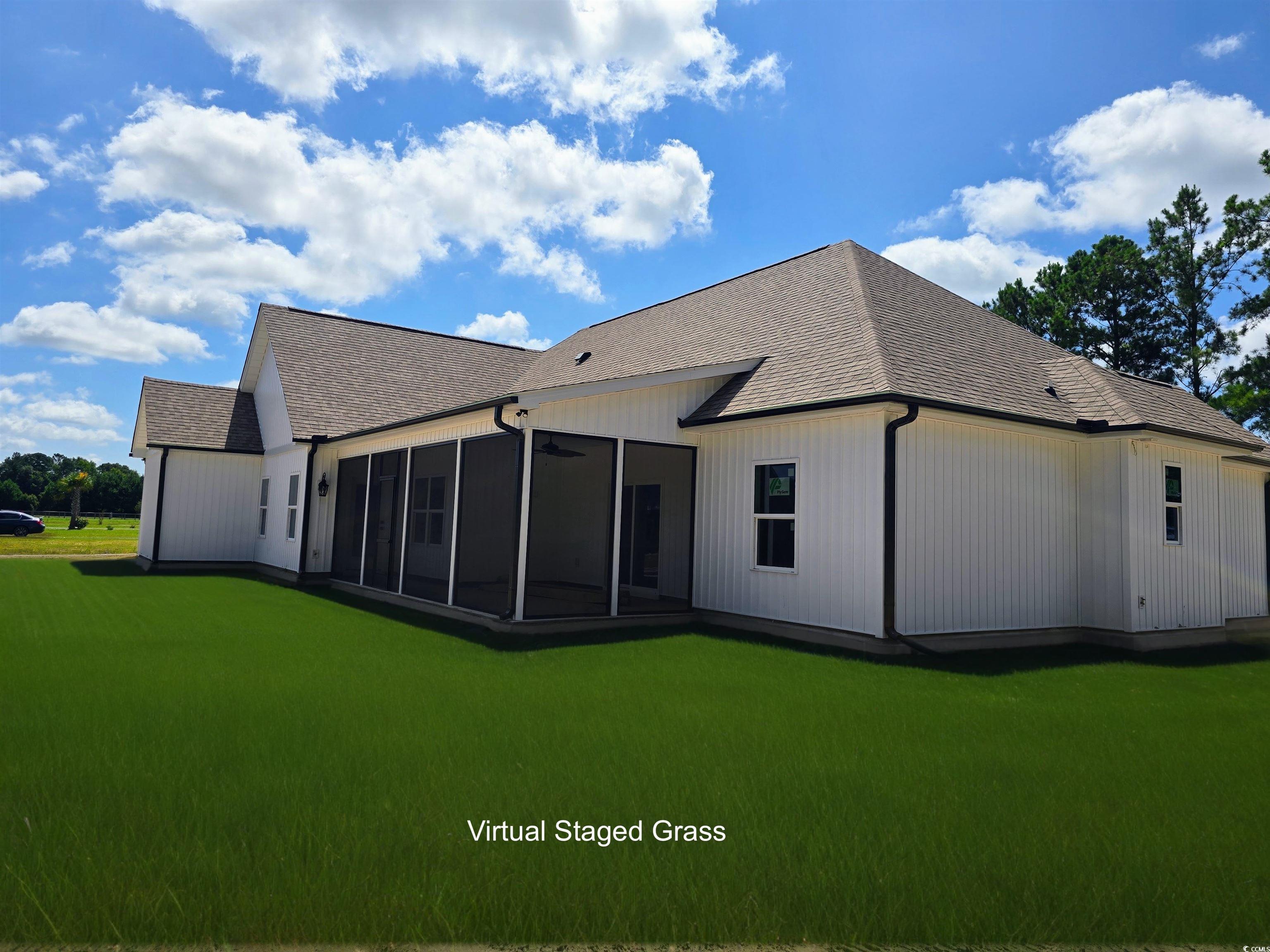 THIS IS IT!! No HOA, almost an acre, new construction semi-custom home with special upgrades - this is no cookie cutter. This is country living at its finest! More than enough space to add a pool or workshop. A second driveway entrance with extra parking pad was added for an RV, boat, trailer, or for extra guest parking. This farmhouse style ranch home is beautifully appointed with brick and cedar accents, shutters, gutters and special soffit lighting which looks beautiful at night. Outdoor living is easy on this spacious screened in porch overlooking your large backyard with additional access from primary bedroom. The relaxing low country front porch has tongue & groove ceiling, cedar siding and ceiling fans just waiting for your rocking chairs. Interior features include quality wide-plank LVP floors throughout the home, a stunning open concept living space showcasing ceiling beams, shiplap accents, gas log fireplace, and custom built-ins. The kitchen is equipped with shaker style soft-close cabinets, granite countertops, large kitchen island, marble hexagon backsplash, custom range hood, and upscale appliance package including a microwave drawer, gas stove, dishwasher, and refrigerator. This home also has a central vac system! Other amazing features include a large butler's pantry / laundry room just off the kitchen with more cabinets and butcher block countertop close to the garage entry equipped with a custom mud bench area. The primary bedroom has a gorgeous ensuite with large custom tile walk-in shower with bench and rain head shower fixture, premium double sink vanity with stone countertops, custom butcher block vanity area with lighted mirror, and a large walk-in closet. Hard to find new construction homes with this many custom features included. 2-car garage includes pull down stairs to attic. Home has a gas Rinnai tankless hot water heater, septic tank and a 295 ft deep water well for huge utility savings. Conveniently located off Hwy 701 North very close to the Hwy 22 interchange making it easy to get anywhere up and down the beach and is only 10 minutes to Conway. This one won't last long! Backyard grass is virtually staged in picture (I don't have an updated photo.) Owner is a SC licensed real estate agent.