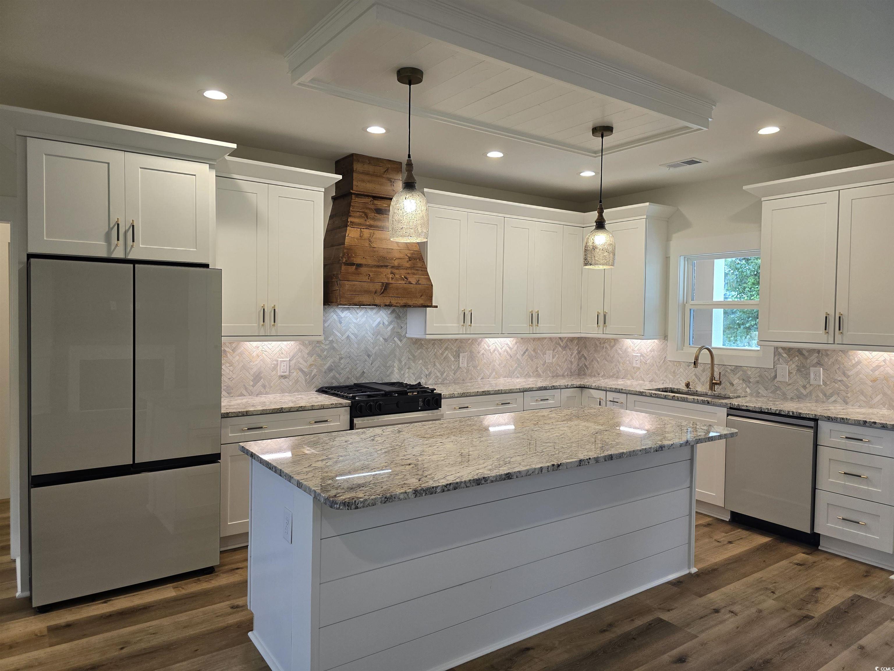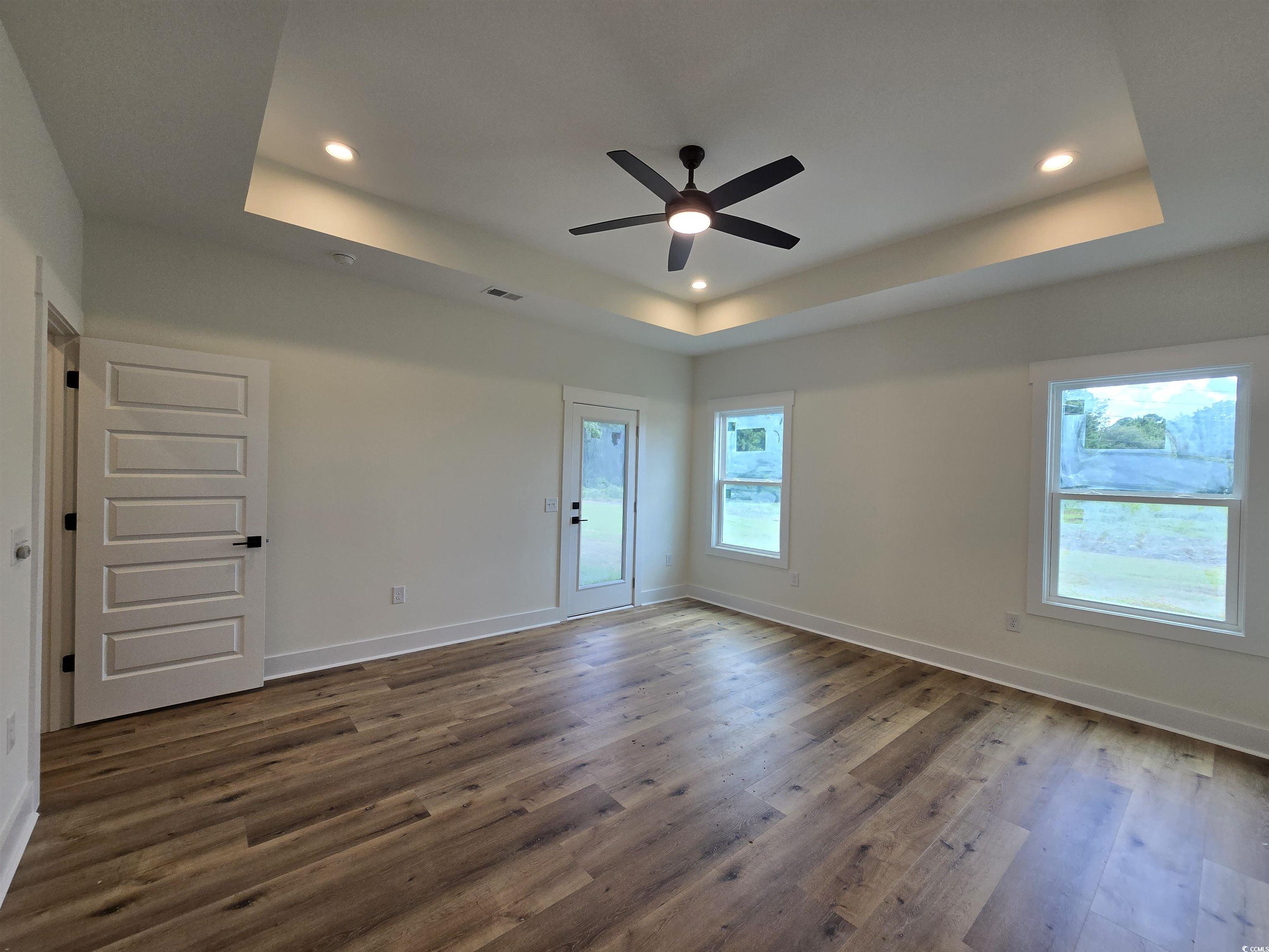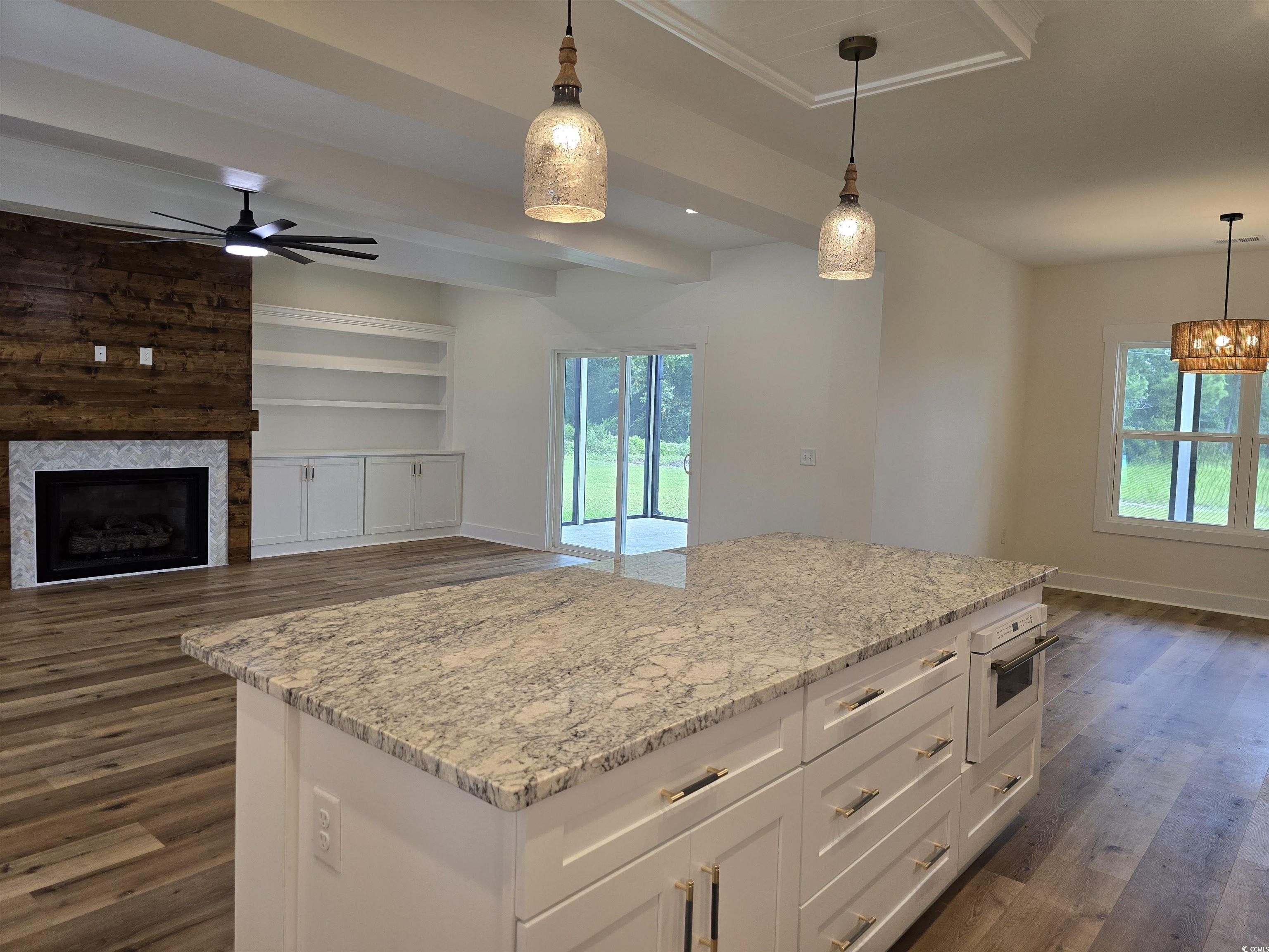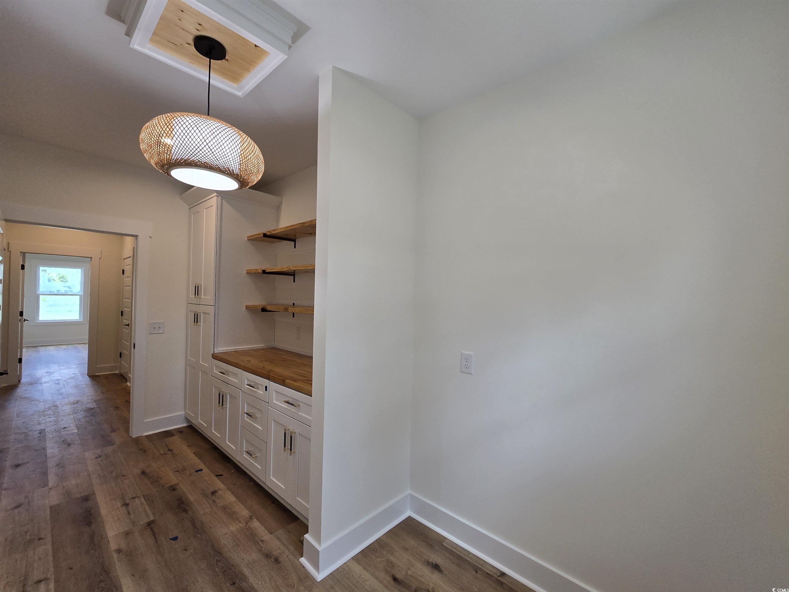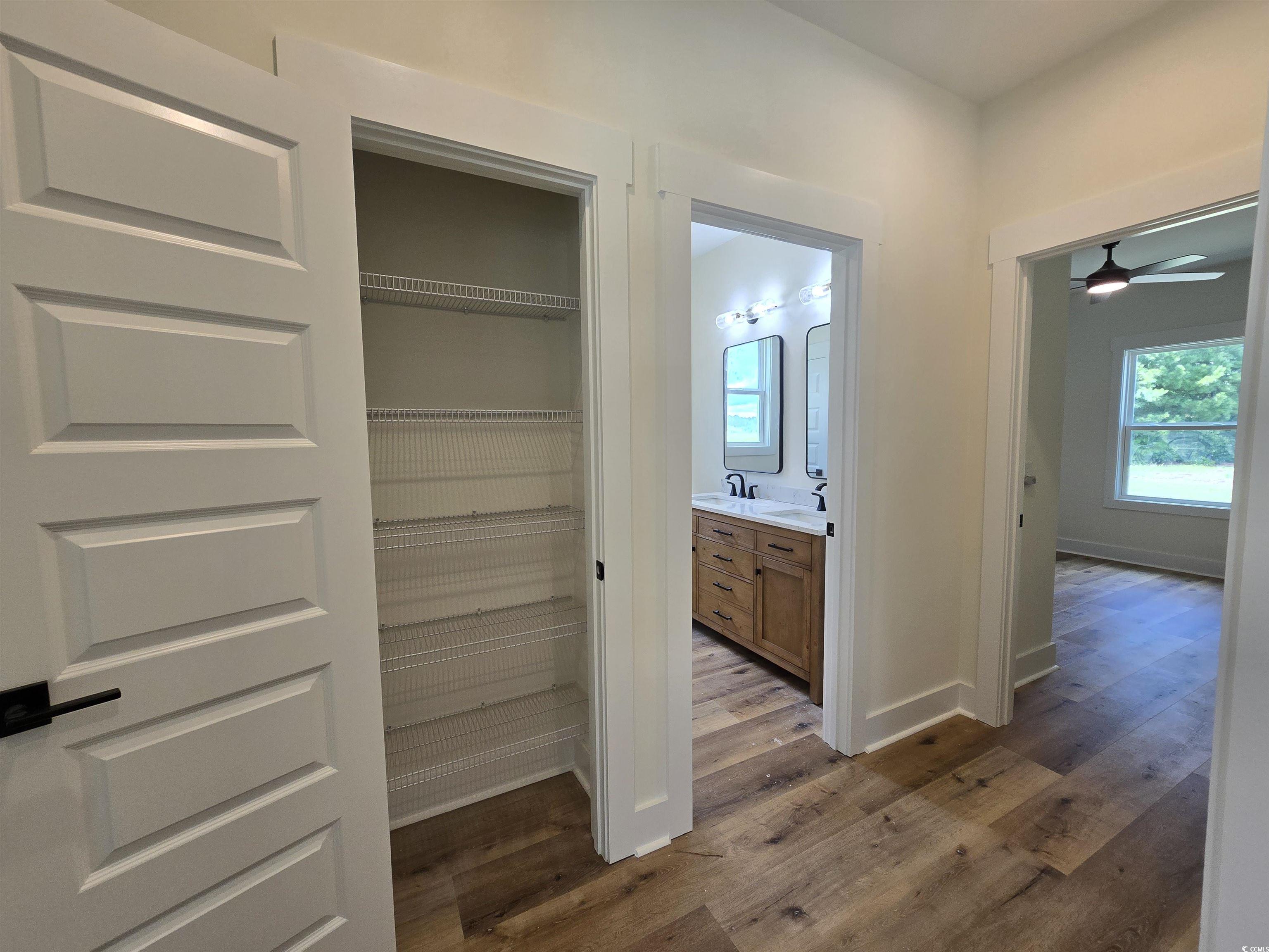 THIS IS IT!! No HOA, almost an acre, new construction semi-custom home with special upgrades - this is no cookie cutter. This is country living at its finest! More than enough space to add a pool or workshop. A second driveway entrance with extra parking pad was added for an RV, boat, trailer, or for extra guest parking. This farmhouse style ranch home is beautifully appointed with brick and cedar accents, shutters, gutters and special soffit lighting which looks beautiful at night. Outdoor living is easy on this spacious screened in porch overlooking your large backyard with additional access from primary bedroom. The relaxing low country front porch has tongue & groove ceiling, cedar siding and ceiling fans just waiting for your rocking chairs. Interior features include quality wide-plank LVP floors throughout the home, a stunning open concept living space showcasing ceiling beams, shiplap accents, gas log fireplace, and custom built-ins. The kitchen is equipped with shaker style soft-close cabinets, granite countertops, large kitchen island, marble hexagon backsplash, custom range hood, and upscale appliance package including a microwave drawer, gas stove, dishwasher, and refrigerator. This home also has a central vac system! Other amazing features include a large butler's pantry / laundry room just off the kitchen with more cabinets and butcher block countertop close to the garage entry equipped with a custom mud bench area. The primary bedroom has a gorgeous ensuite with large custom tile walk-in shower with bench and rain head shower fixture, premium double sink vanity with stone countertops, custom butcher block vanity area with lighted mirror, and a large walk-in closet. Hard to find new construction homes with this many custom features included. 2-car garage includes pull down stairs to attic. Home has a gas Rinnai tankless hot water heater, septic tank and a 295 ft deep water well for huge utility savings. Conveniently located off Hwy 701 North very close to the Hwy 22 interchange making it easy to get anywhere up and down the beach and is only 10 minutes to Conway. This one won't last long! Backyard grass is virtually staged in picture (I don't have an updated photo.) Owner is a SC licensed real estate agent.