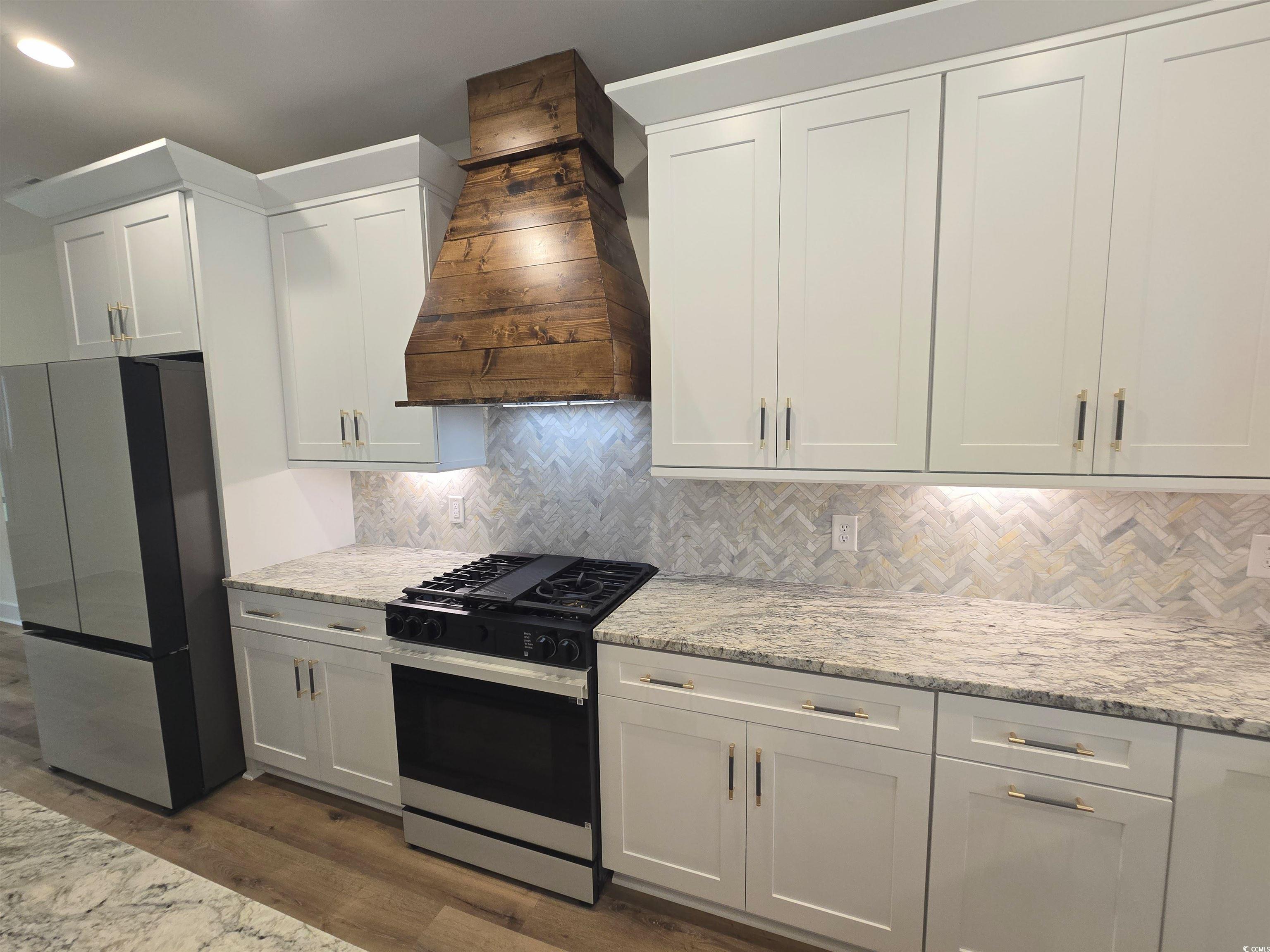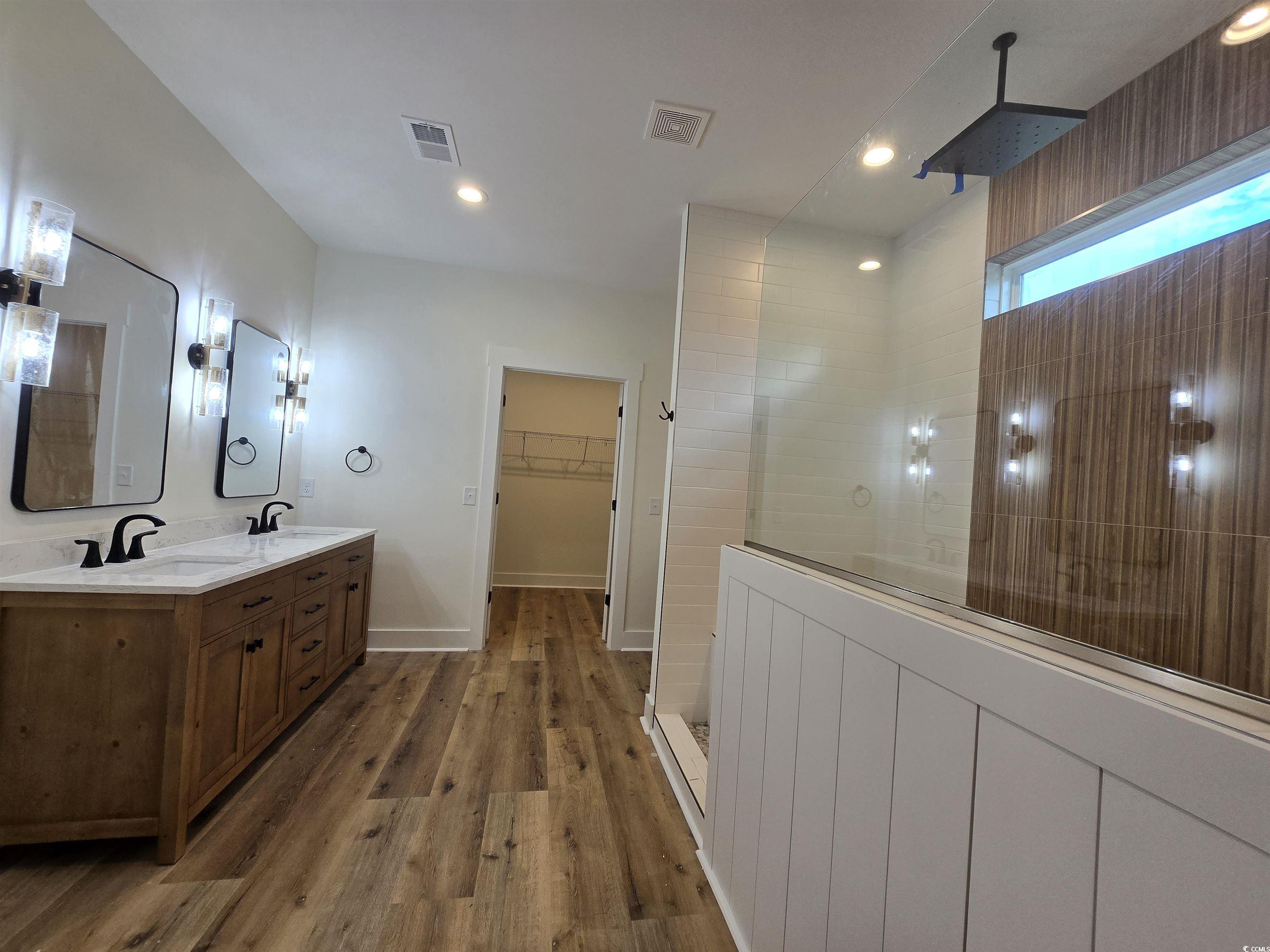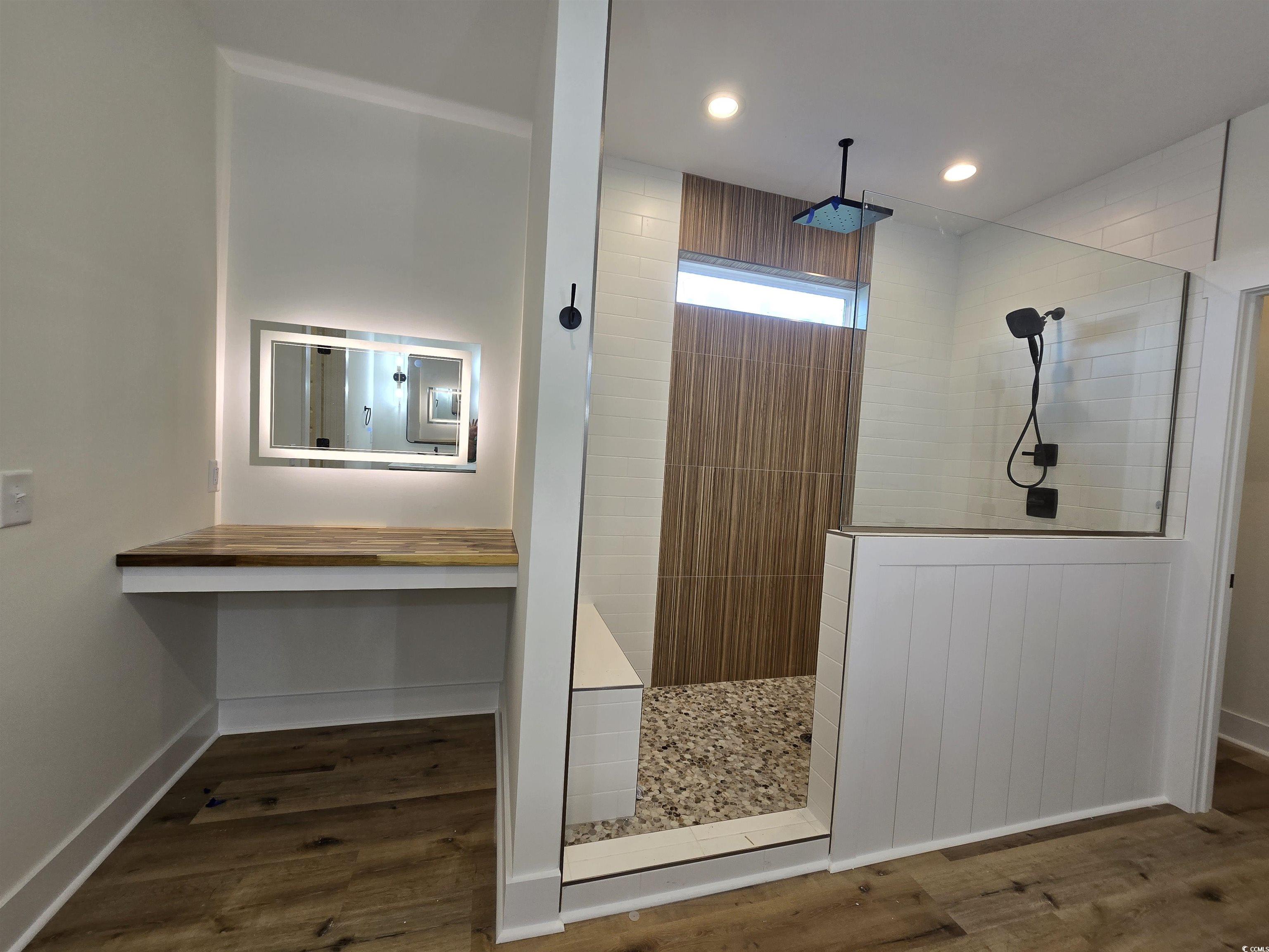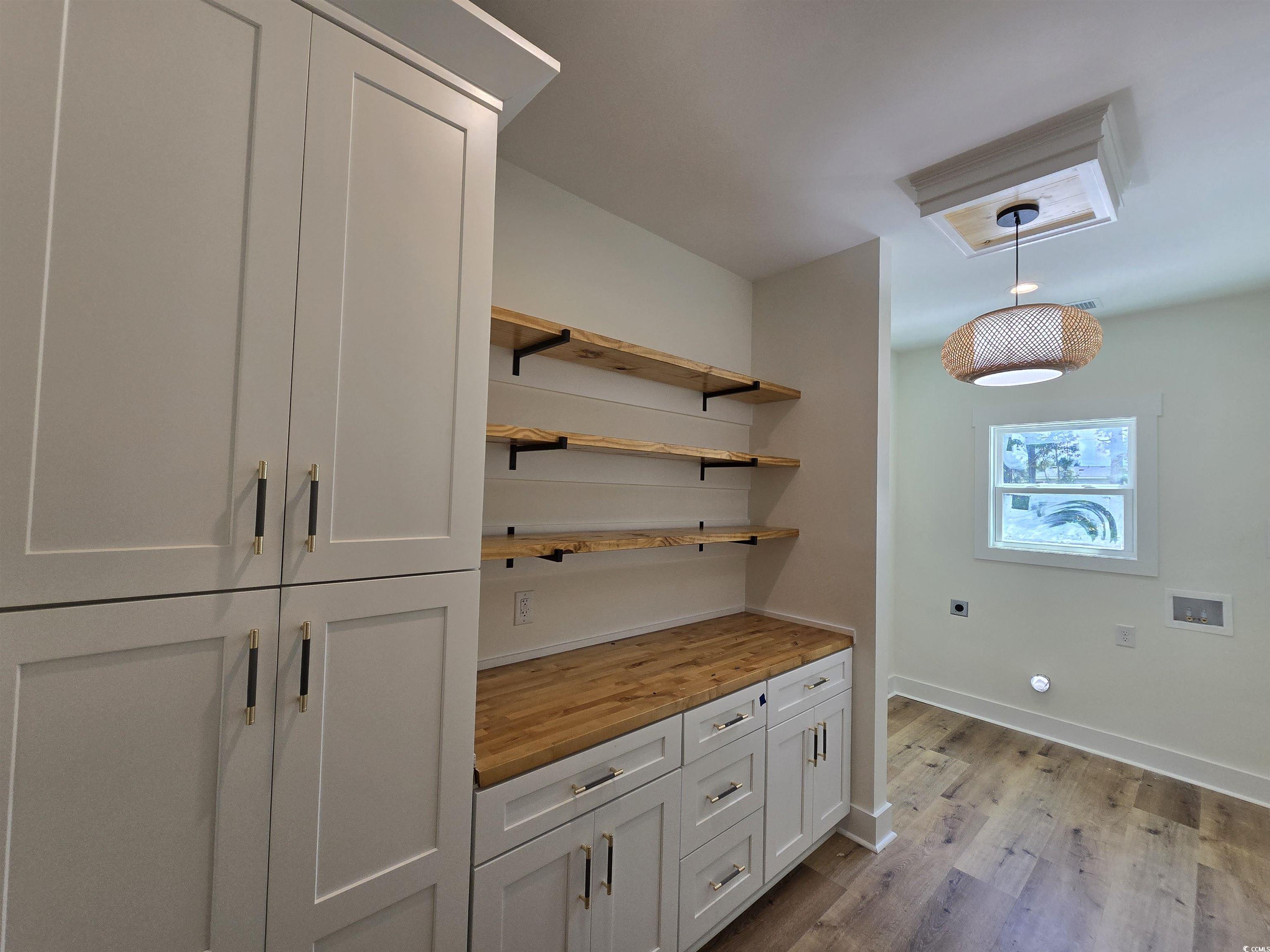 THIS IS IT!! No HOA, almost an acre, new construction semi-custom home with special upgrades - this is no cookie cutter. This is country living at its finest! More than enough space to add a pool or workshop. A second driveway entrance with extra parking pad was added for an RV, boat, trailer, or for extra guest parking. This farmhouse style ranch home is beautifully appointed with brick and cedar accents, shutters, gutters and special soffit lighting which looks beautiful at night. Outdoor living is easy on this spacious screened in porch overlooking your large backyard with additional access from primary bedroom. The relaxing low country front porch has tongue & groove ceiling, cedar siding and ceiling fans just waiting for your rocking chairs. Interior features include quality wide-plank LVP floors throughout the home, a stunning open concept living space showcasing ceiling beams, shiplap accents, gas log fireplace, and custom built-ins. The kitchen is equipped with shaker style soft-close cabinets, granite countertops, large kitchen island, marble hexagon backsplash, custom range hood, and upscale appliance package including a microwave drawer, gas stove, dishwasher, and refrigerator. This home also has a central vac system! Other amazing features include a large butler's pantry / laundry room just off the kitchen with more cabinets and butcher block countertop close to the garage entry equipped with a custom mud bench area. The primary bedroom has a gorgeous ensuite with large custom tile walk-in shower with bench and rain head shower fixture, premium double sink vanity with stone countertops, custom butcher block vanity area with lighted mirror, and a large walk-in closet. Hard to find new construction homes with this many custom features included. 2-car garage includes pull down stairs to attic. Home has a gas Rinnai tankless hot water heater, septic tank and a 295 ft deep water well for huge utility savings. Conveniently located off Hwy 701 North very close to the Hwy 22 interchange making it easy to get anywhere up and down the beach and is only 10 minutes to Conway. This one won't last long! Backyard grass is virtually staged in picture (I don't have an updated photo.) Owner is a SC licensed real estate agent.
