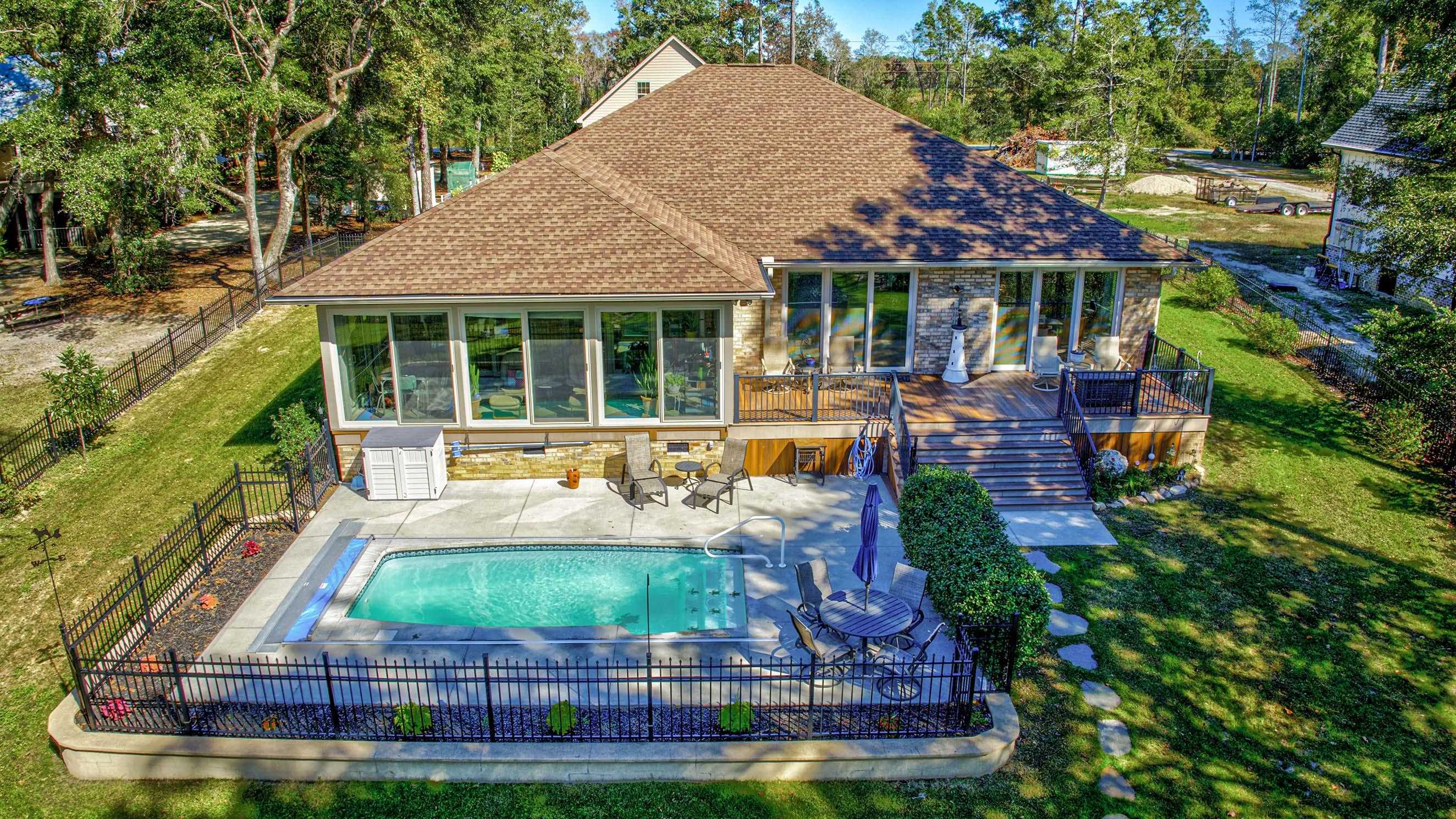 All brick home with 3 large bedrooms and 3 full bathrooms. Open floor plan, custom cabinetry, Thermador appliances, Carolina room, heated saltwater pool, 60X40 detached garage (conditioned, plumbed, 6 oversized doors), 1.1 acres overlooking the Majestic Black River. Private dock, rare 2) 10,000 lbs boat lifts. Fenced-in yard, U-shaped asphalt drive, custom garden, pergola, 1000 sq ft annex with bath and cabinetry, and much more.