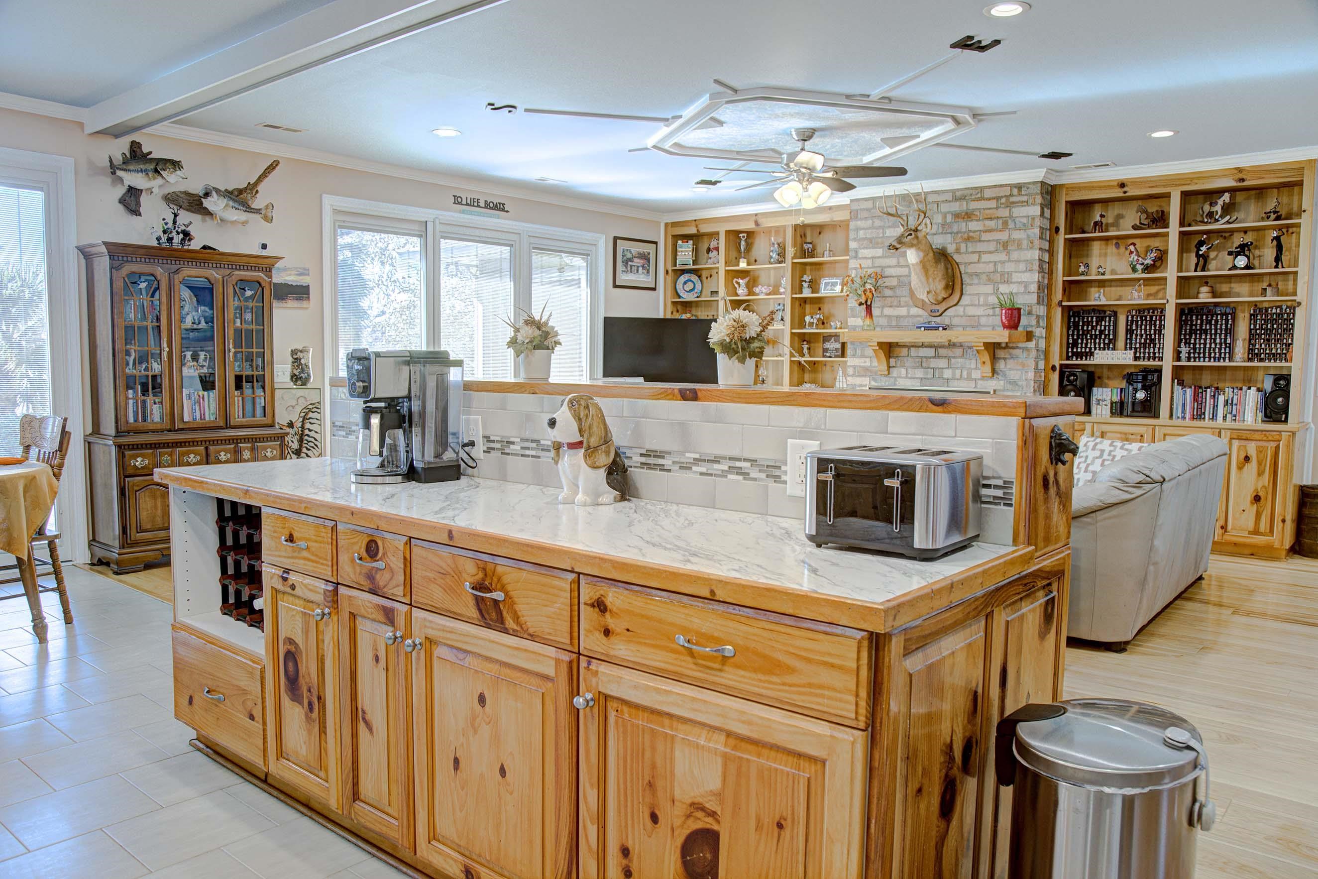 All brick home with 3 large bedrooms and 3 full bathrooms. Open floor plan, custom cabinetry, Thermador appliances, Carolina room, heated inground saltwater pool, 60X40 detached garage (conditioned, plumbed, 6 oversized doors), 1.1 acres overlooking the Majestic Black River. Private dock, rare 2) 10,000 lbs boat lifts. Fenced-in yard, U-shaped asphalt drive, custom garden, pergola, 1000 sq ft annex with bath and cabinetry, and much more. Please note: Listing agent is a co-owner of home.