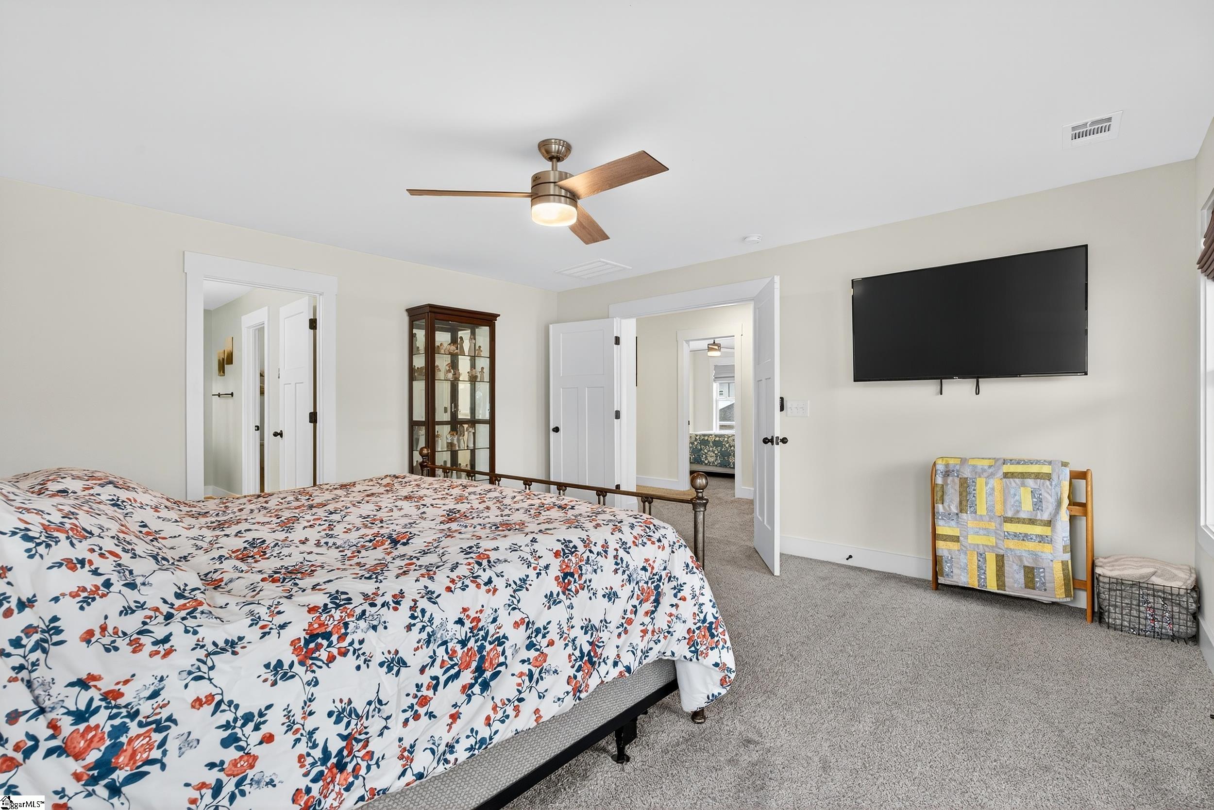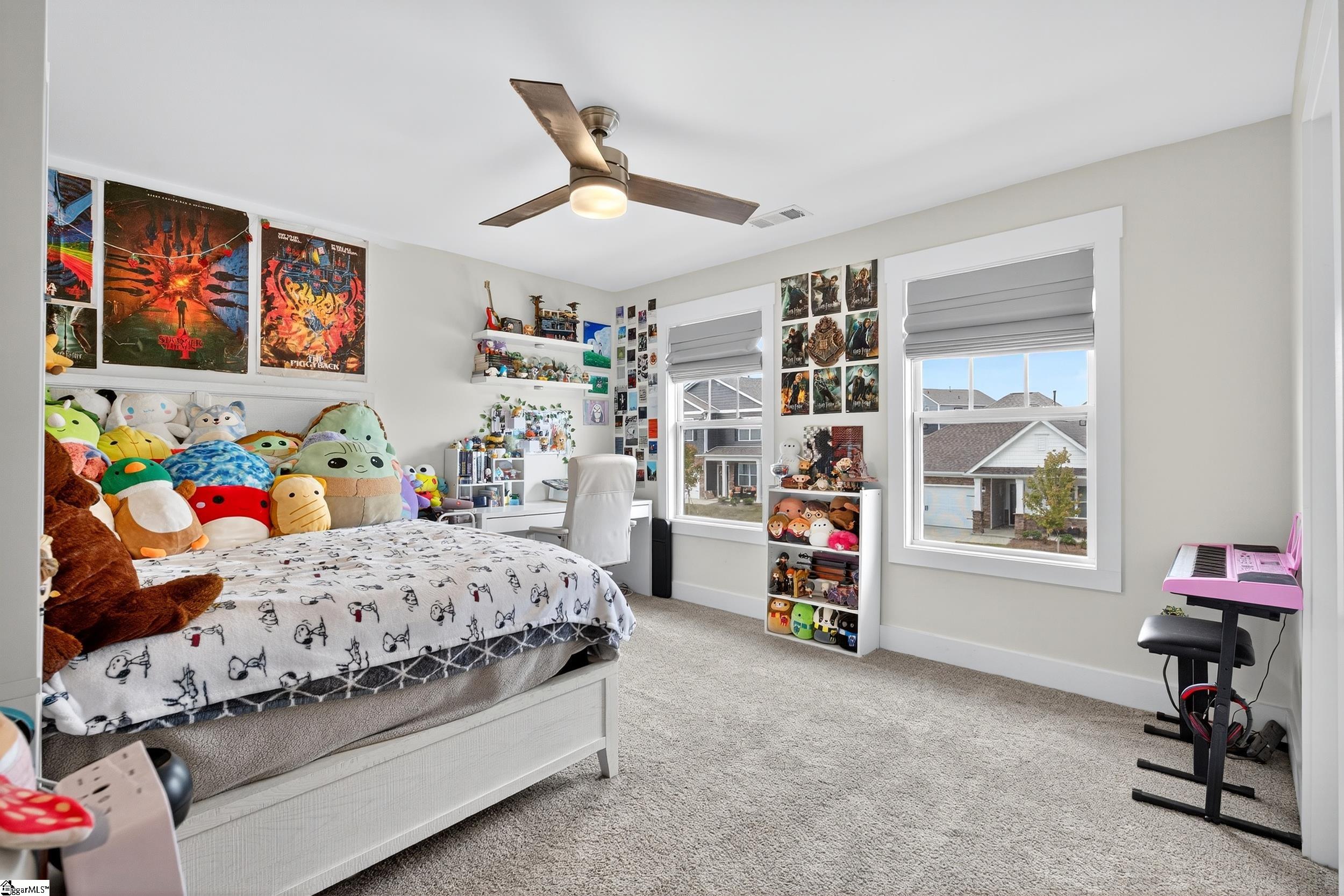 This beautifully upgraded home showcases the popular and spacious “Stonefield” floorplan in the highly desirable Anderson Grant community. Step inside and instantly feel at home in this stunning two-story residence featuring over 3,100 square feet of thoughtfully designed living space. With five bedrooms, three full baths, a loft, and a formal dining room, every area reflects a balance of comfort, functionality, and style — ideal for both everyday living and entertaining. At the heart of the home is a luxurious gourmet kitchen, crafted with soft-close cabinetry, a large center island, and expansive counter space that makes both meal prep and entertaining effortless. The open-concept design flows seamlessly into the breakfast area and great room, creating a bright and connected atmosphere that encourages gathering. The main level also includes a dedicated home office with French doors, providing the perfect space for remote work, study, or quiet focus. Nearby, a custom-designed first-floor in-law suite with a full bath and walk-in shower provides privacy and comfort for guests or multigenerational living — a unique and flexible feature not commonly found in homes of this style. Throughout the home, thoughtful upgrades enhance daily life — from soft-close drawers and updated ceiling fans to stylish lighting and a newly installed vanity in the powder room. Every detail contributes to the home’s refined yet livable appeal. Outside, enjoy a covered patio enhanced with custom roll-down shades for year-round comfort. The fully fenced backyard backs to a private green space that will remain undeveloped, creating a peaceful setting with lasting privacy. Fresh landscaping elevates curb appeal, and overhead storage racks in the garage provide smart, space-saving organization. Additional highlights include a front smart doorbell for added convenience and security, and the washer and dryer are included, providing added value and convenience for the next homeowner. Upstairs, a spacious loft creates flexible space for a home theater, playroom, or fitness area. The primary suite serves as a personal retreat, complete with a walk-out deck — perfect for enjoying morning coffee or evening unwinding with a view. Anderson Grant is located in popular and growing Woodruff, celebrated for its small-town warmth and prime location between Greenville and Spartanburg. Residents enjoy access to resort-style amenities including a pool, pavilion, pickleball and tennis courts, a dog park, playground, and a community fire pit. From seasonal neighborhood events to quiet evening strolls, the community fosters both connection and comfort. Zoned for top-rated District 5 schools, the location combines everyday convenience with strong educational opportunities. 365 Fenwick Drive blends smart design, elegant finishes, and carefully selected enhancements in one exceptional home. With its gourmet kitchen, private in-law suite, and dedicated work-from-home space, this property delivers the perfect combination of luxury and livability — ready to welcome you home.