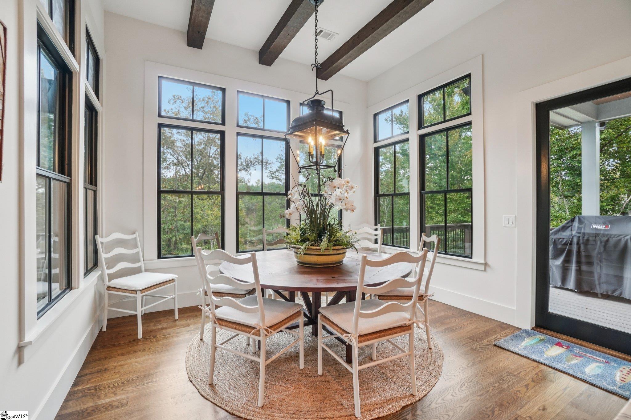 Blending comfort and contentment, this 4-bedroom, 4-bath waterfront home offers the perfect retreat for four-season luxury lake living. Privately located within the prestigious Peninsula Ridge enclave of Old Edwards Reserve at Lake Keowee, this property embodies everything a lake home should be. Greeting you at the front of the house, a gently flowing waterfall sets a peaceful tone before you step inside. As you enter through the front doors, the great room impresses with soaring beamed shiplap ceilings, a floor-to-ceiling stone fireplace with custom built-ins, and stunning lake views that beautifully frame the indoor living space. The living area remains a cozy spot to sit and relax beside a reclaimed wood mantel. The open floor plan allows friends and family to gather comfortably while enjoying the seamless flow between the living, dining, and kitchen spaces. The screened porch presents a charming setting, featuring a wood-burning fireplace and electric heaters designed for year-round enjoyment. Overlooking the water, the newly completed landscaping and hardscaping include terraced stone retaining walls and a paver golf cart path that leads directly to your private dock. The gourmet kitchen features farmhouse-style cabinetry, an oversized Frigidaire refrigerator, Thermador appliances, a pot-filler faucet, and a large island that invites gathering. The adjacent dining area, like much of the home, offers panoramic views of the water. Just off the kitchen, the grilling deck provides convenient space for outdoor cooking and easy access to the fenced yard. The spacious, wainscoted primary suite is located on the main level and is complete with vaulted ceilings and a spa-like bath. It features dual walk-in closets, a custom double vanity, and an oversized zero-entry shower. Just down the hall, a main-level en-suite guest room provides comfort and privacy, while a conveniently located laundry room near the primary suite adds to the thoughtful layout. The lower level makes entertaining effortless, featuring a full bar, a wine room for the enthusiast, and a generous lounge area with a stylish antique mirrored backsplash. Two oversized bedrooms, two full baths, and a flexible space offer options for a home gym, bunkroom, or recreation area. Additionally, a whole-home sound system enhances both levels of the home. The covered lower patio awaits, featuring a beautiful stone fireplace with gas logs that create the perfect lake ambiance. Just steps away, the "lake room," with its double doors, offers convenient storage for your golf cart and easy access to the water. From there, a newly installed paver cart path leads to the oversized dock, where breathtaking northern views of the tranquil cove complete this exceptional lakefront experience. Enjoy lakefront living at its best at 366 Peninsula Ridge, where every detail is made for comfort, style, and enjoying time with the people you love, all year round. The Premier membership must be purchased at closing, providing access to world-class amenities, including a Jack Nicklaus Signature Golf Course, a state-of-the-art clubhouse, a marina, tennis and pickleball courts, a fitness center, and multiple dining options.