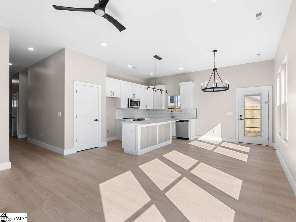 Welcome to a beautiful new build in the heart of Spartanburg! Step into the open-concept living room with dramatic 10-foot ceilings that elevate your everyday living. The gorgeous quartz countertops, luxury vinyl flooring, designer backsplash, and modern fans in every bedroom and the living room highlight the thoughtful upgrades throughout the home. With ample cabinetry, a large island, and a refrigerator included, you’ll have everything you need for storage and meal prep. The owner’s suite features elegant 10-foot tray ceilings, a spacious walk-in closet, and a dual vanity in the primary bathroom—offering both comfort and convenience. The garage includes extra shelving for added storage, showing that every detail has been built with your comfort in mind. One of the standout features of this property is the large, level, fenced yard—perfect for gardening, outdoor activities, or hosting summer barbecues. Imagine creating your own garden oasis or enjoying relaxing evenings in this expansive outdoor area. No HOA! Enjoy true Spartanburg downtown living, with Wofford College within walking distance and the Amtrak station just a mile away. You’re also only 4 miles from Spartanburg Costco, Westgate Mall, and a wide variety of shops, salons, restaurants, and convenience stores.