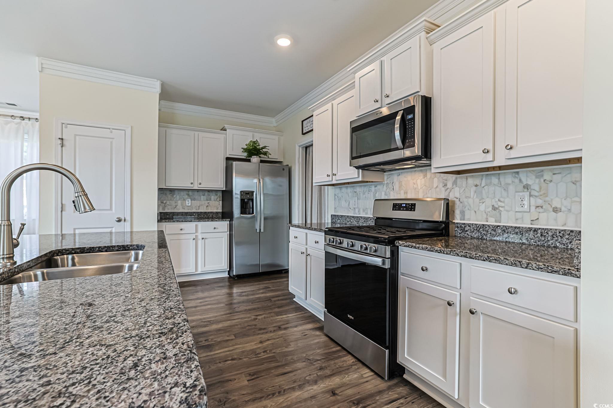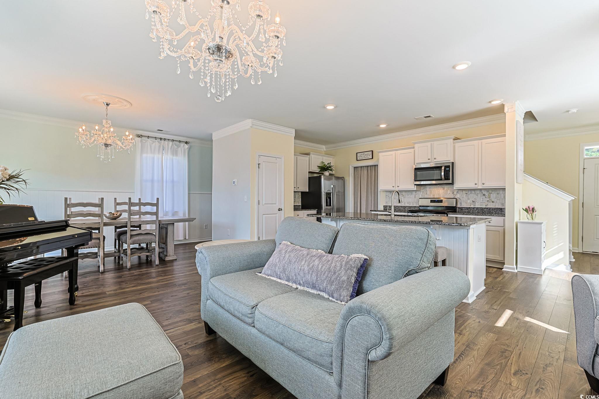 Presenting this spacious Elston A floor plan 2 story 4 bedroom 2.5 bath home located in the very popular Oak Arbor community. This open floor plan home features wood look LVP, tile, & carpet flooring, smooth flat ceilings, a guest powder room, a classic living/dining room combo that showcases a sliding glass door that opens up to the relaxing back patio with memorable lake views. The family friendly kitchen is equipped with a stainless steel appliance package with a gas range, granite counter tops, cabinets topped with crown moulding, a a kitchen island with a breakfast bar, and a practical pantry. Upstairs you will find the primary bedroom offering elegant wainscoting, crown moulding, a large walk-in closet with a changing area, private access to the primary bath hosting a dual sink vanity, a water closet, a linen closet , and a deluxe step-in shower. The upstairs is completed with three additional bedrooms, a full guest bath, a laundry room, and a tranquil loft area. This delightful home is finished with a gas water heater, extra storage spaces, and a two car attached garage. This home affords you easy access to the beach and golfing along with all of the other activities and happenings in Myrtle Beach & Murrells Inlet including fun eateries, award winning off-Broadway shows, public fishing piers, Marsh Walk, and intriguing shopping adventures along the Grand Strand. Conveniently located to your everyday needs, including grocery stores, banks, post offices, medical centers, doctors’ offices, and pharmacies. Check out our state of the art 3-D Virtual Tour.