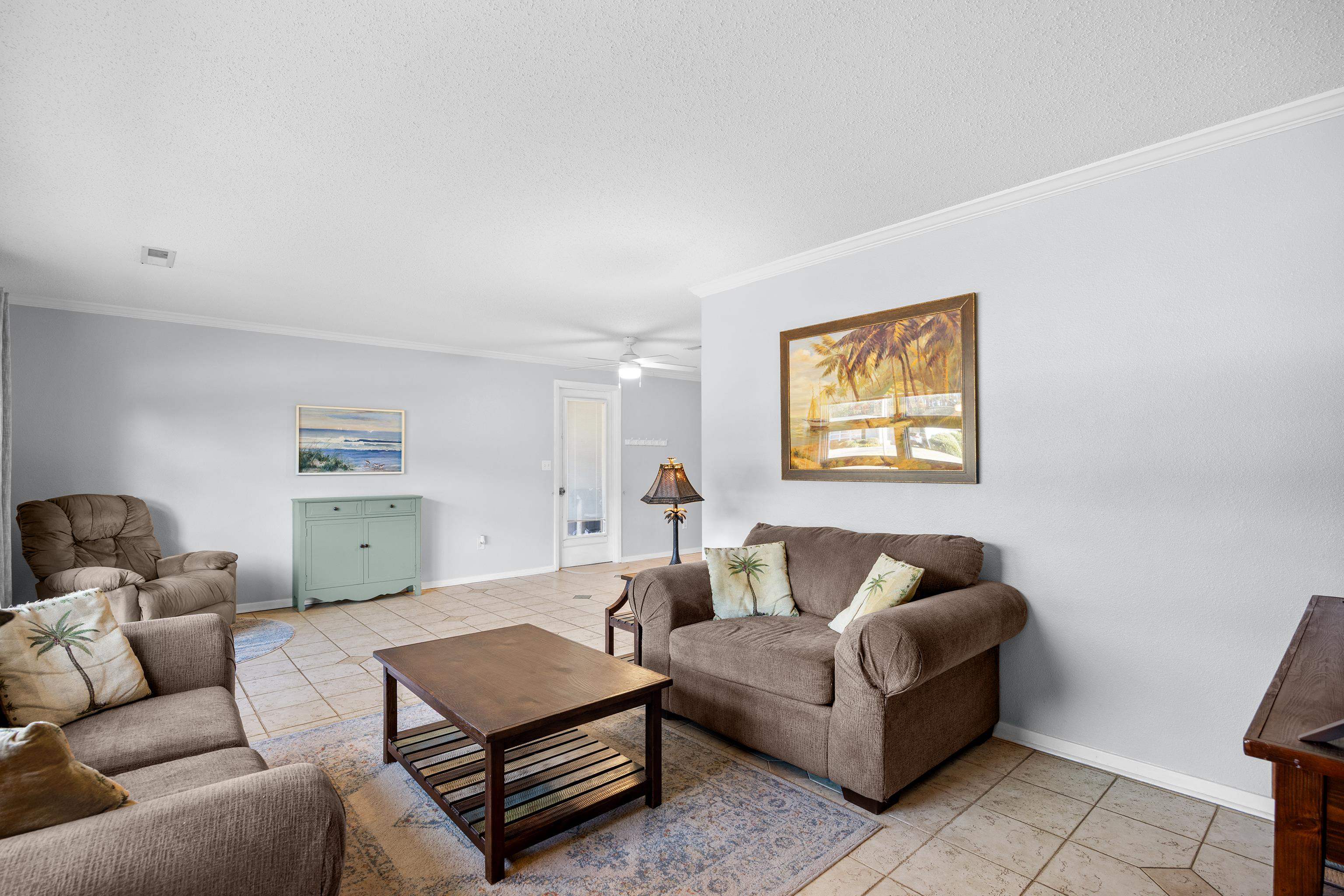 Located in desirable Seagate Village, this spacious 4-bedroom, 2-bath condo is one of the largest units in the community and is just 1.5 miles from the beach. The home features durable tile and laminate flooring throughout and a desirable split bedroom floor plan with two separate living areas, providing flexibility for entertaining, family living, or guests. The kitchen is central in the home and features cabinets and counterspace galore. The large addition includes a great room, two bedrooms, a full bathroom with a spacious walk-in shower, and a laundry area. All appliances, including the washer and dryer, are less than one year old. We always need extra storage and this home has it, there is even a walk-in storage closet. Enjoy Carolina living on the patio. There is a carport and the convenience of an extended driveway. The HOA includes yard maintenance, and golf carts are allowed for easy access to the beach, shopping, and The Market Common. This home combines space, comfort, and location for easy coastal living.