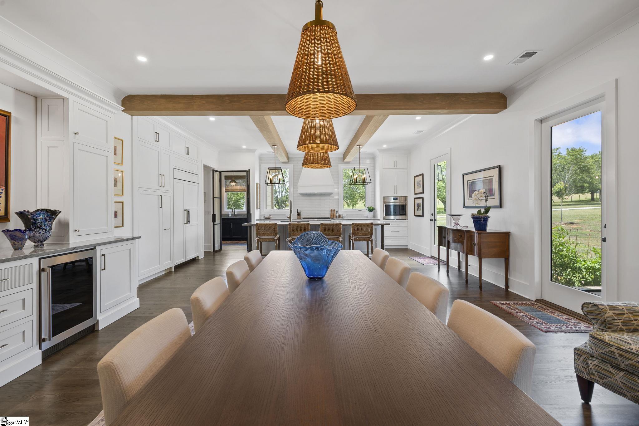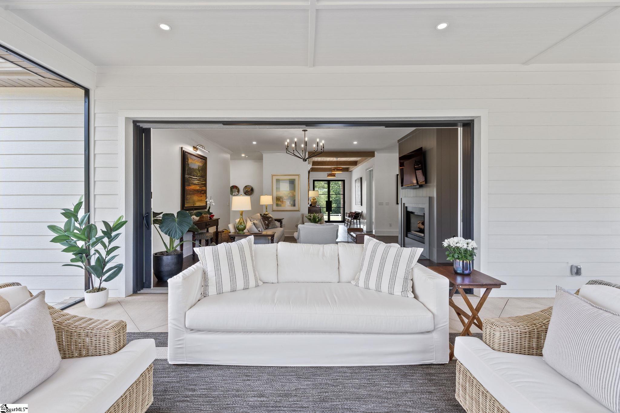 Set on 1.25 scenic acres just 10 minutes from Travelers Rest and 15 minutes from downtown Greenville, this custom build by Middlehouse Builders is an expertly designed single-level home with thoughtfully curated high end finishes and fixtures throughout. Inside, soaring 10-foot ceilings and wide-plank white oak hardwoods create a backdrop of luxury. Three spacious bedrooms feature king-sized layouts and private en suites, creating a retreat-like feel for family and guests. In the kitchen, a large quartzite island is complemented by custom inset cabinetry and a full suite of Wolf, Sub-Zero, and Cove appliances. A stunning scullery with steel French doors offers an elegant extension for prep and storage, while a built-in bar in the dining area features a wine cooler and beverage refrigerator. The design details are as thoughtful as they are striking: tongue-and-groove ceilings in the foyer, Moen and Kohler fixtures, custom tile work, and a double-sided vented gas fireplace connecting the dining and living spaces. The enormous screened porch with wood-burning fireplace, lift screen, and a fully retracting glass wall system creates a seamless indoor-outdoor flow perfect for entertaining or quiet evenings at home. Other great features include an outdoor shower, office nook, beautiful laundry room, crawl space with dehumidifier, two-car garage with epoxy flooring, and a mud area just off the garage. Additionally, enjoy expansive attic space for storage or with great potential for additional square footage if needed. Custom draperies and window treatments throughout convey, while furnishings and art are negotiable. From its scenic setting to its impeccable finishes, this home offers a rare combination of space, craftsmanship, and convenience, all just minutes from the best that award-winning Greenville has to offer. Schedule your private showing today.