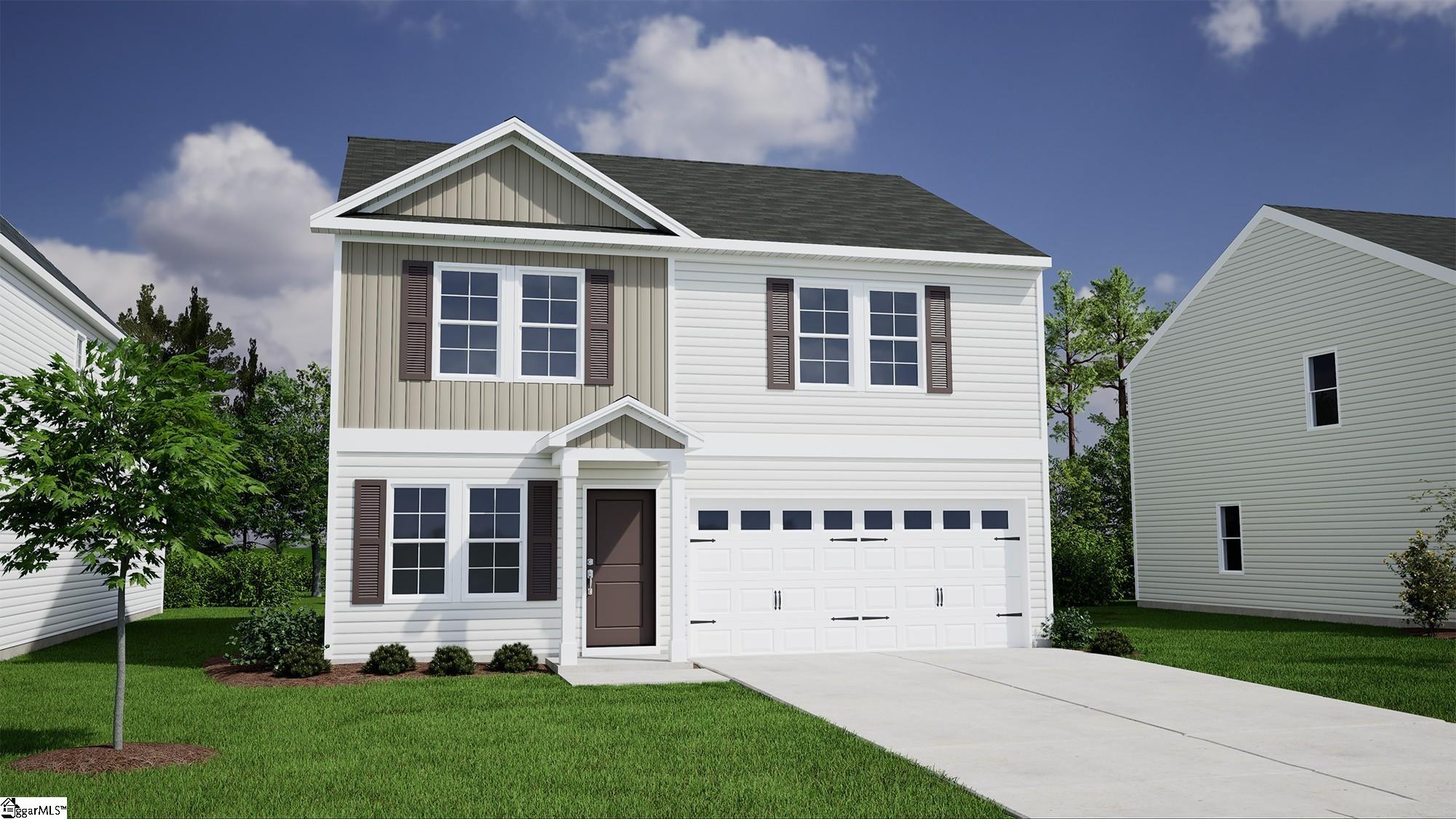 Welcome to Mungo Homes Guilford floorplan. This is a well-designed two-story home featuring four bedrooms and two-and-a-half bathrooms. As you enter, a welcoming flex room waits that is perfect for an office or dining room. It leads you into a spacious great room, great for family gatherings, entertaining and everyday living. The open-concept kitchen includes a large island, with granite countertops, Shaker-style cabinets, and a walk-in pantry for plenty of storage. A door off the great room provides access to the back patio, ideal for outdoor activities. Durable luxury vinyl plank flooring runs throughout the first floor, combining style and practicality. Upstairs, a centrally located loft which is a perfect for a home office, playroom, movie room or reading nook. Three secondary bedrooms share a full bathroom, while the primary suite features a vaulted ceiling, a private bathroom with double sinks, a linen closet, and an oversized walk-in closet. The laundry room is centrally located near the bedrooms upstairs. Designed for comfort and functionality, this home is a great fit for modern living Enjoy being just a stone’s throw from Linville Hills Park, surrounded by mature trees. Located minutes from Downtown Spartanburg, this community offers the perfect balance of peaceful surroundings and easy access to shopping, schools, hospitals, and major highways, including I-26 and I-85. Residents of Braxton Place are also zoned for the highly sought-after Dorman High School and are just 1.2 miles from R.P. Dawkins Middle School.