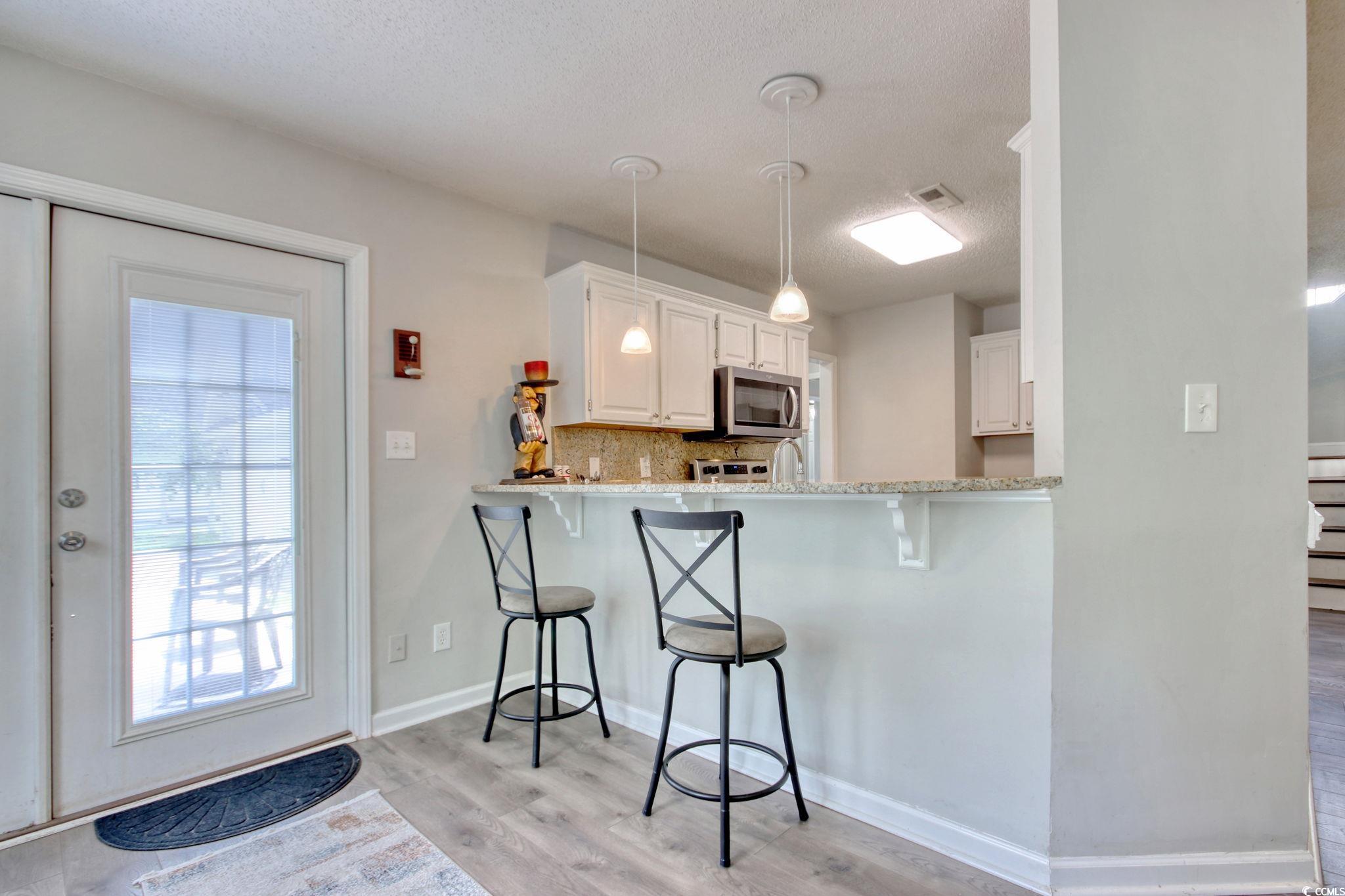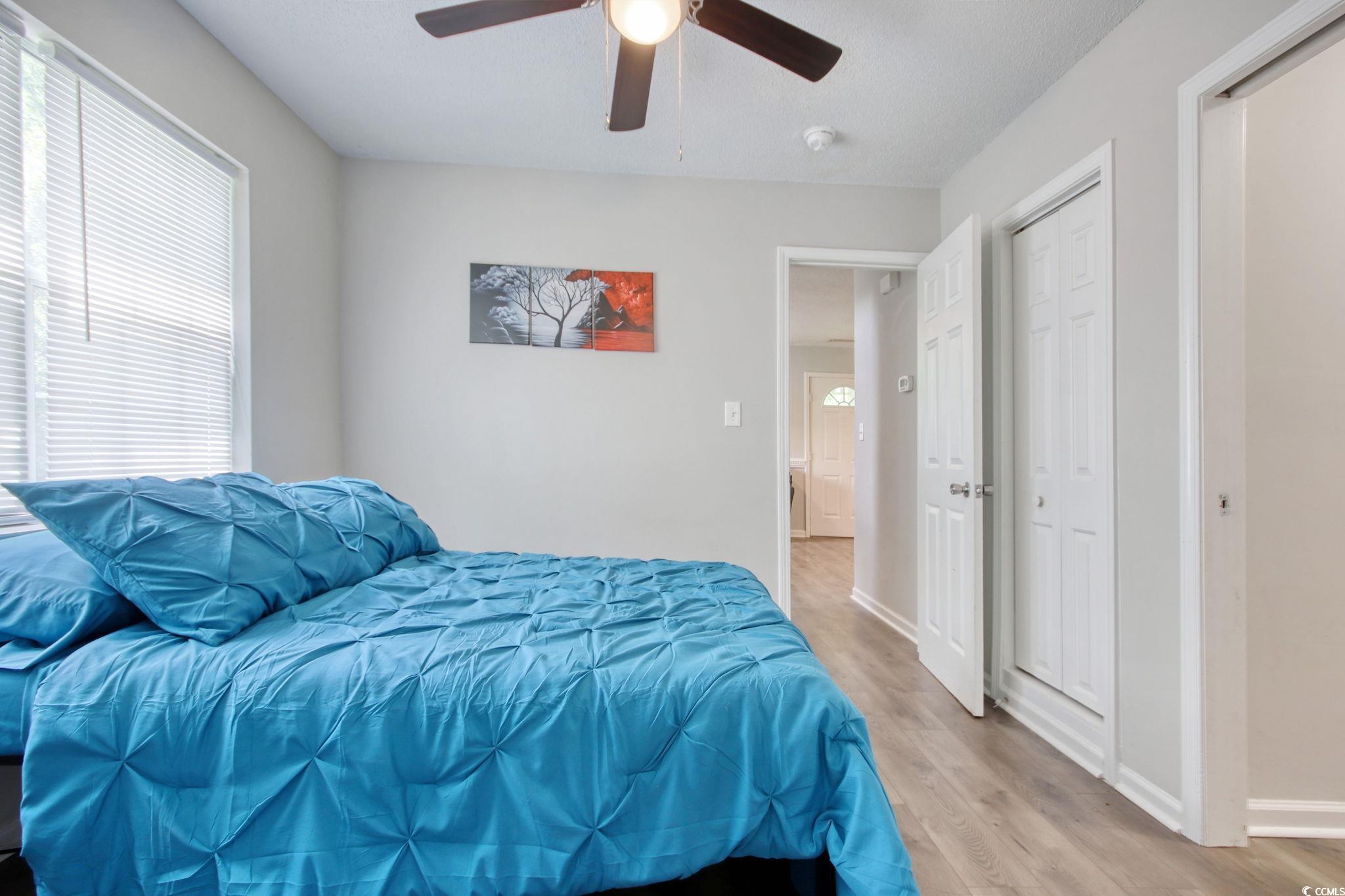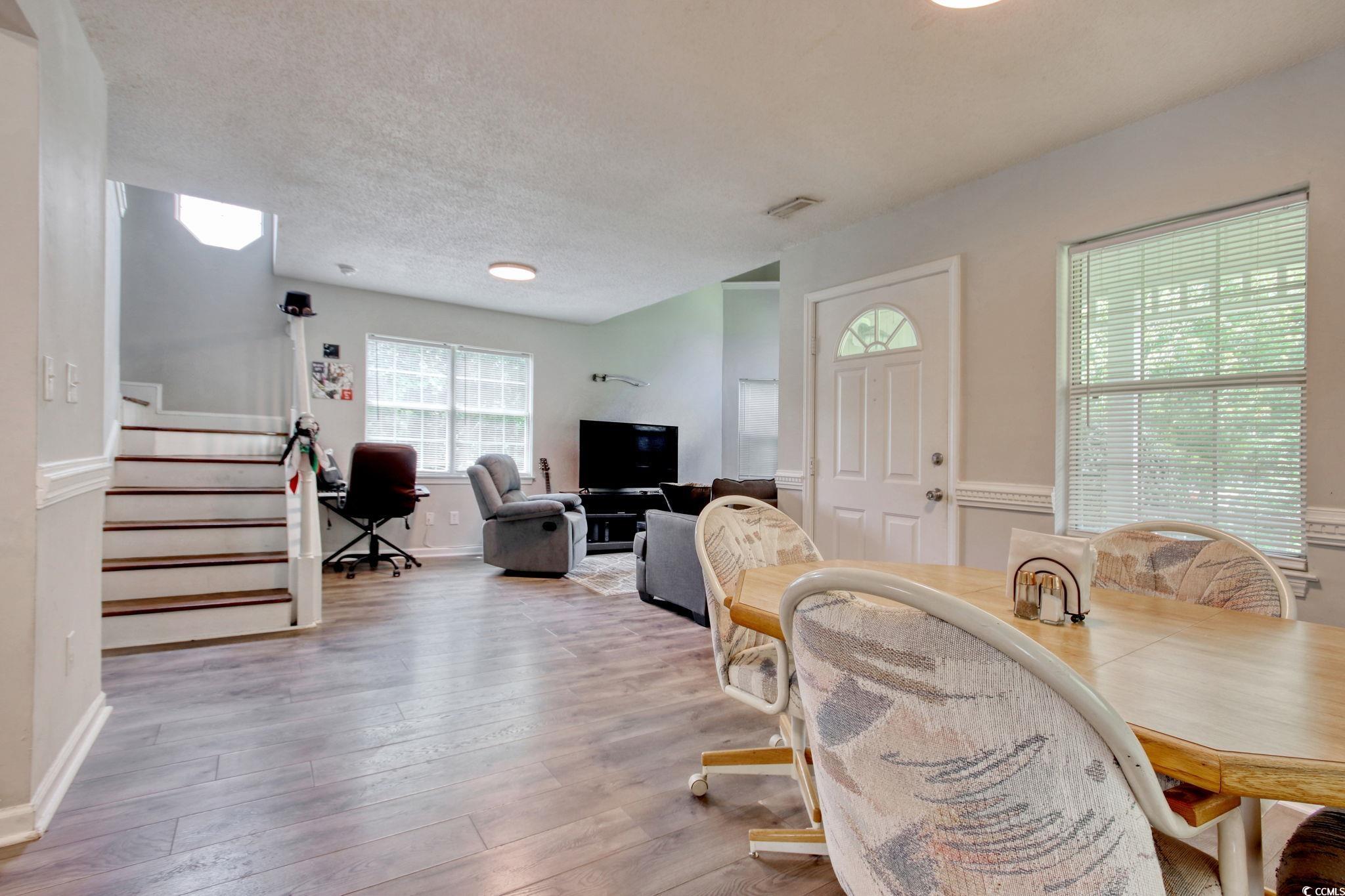 Welcome to the Farmington community, ideally located near Arrowhead Golf Course just off Burcale Road. This neighborhood offers convenient access to Coastal Grand Mall, Tanger Outlets, and is only a short drive from the beach. This charming 3-bedroom, 2-bathroom two-story home features beautiful flooring throughout, stainless steel appliances, stylish tile showers, and ample closet space. You'll find two bedrooms upstairs and one on the main floor, offering flexible living options. Situated on a desirable corner lot, the home also includes a detached two-car garage with overhead storage, a welcoming front porch, a spacious driveway, and an upstairs balcony overlooking the front yard.
