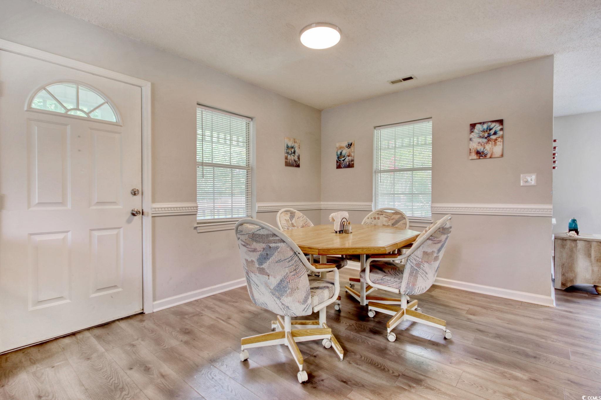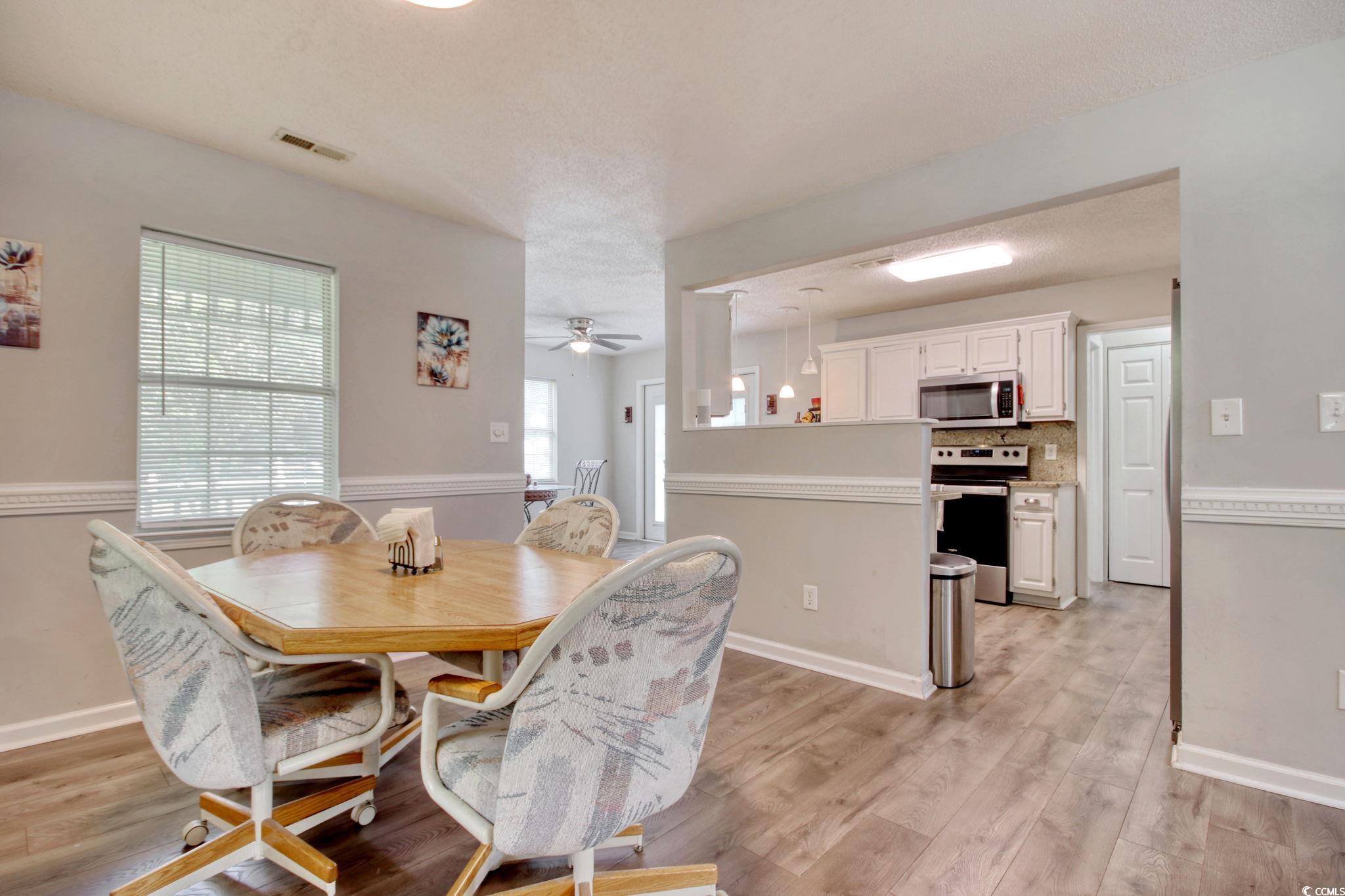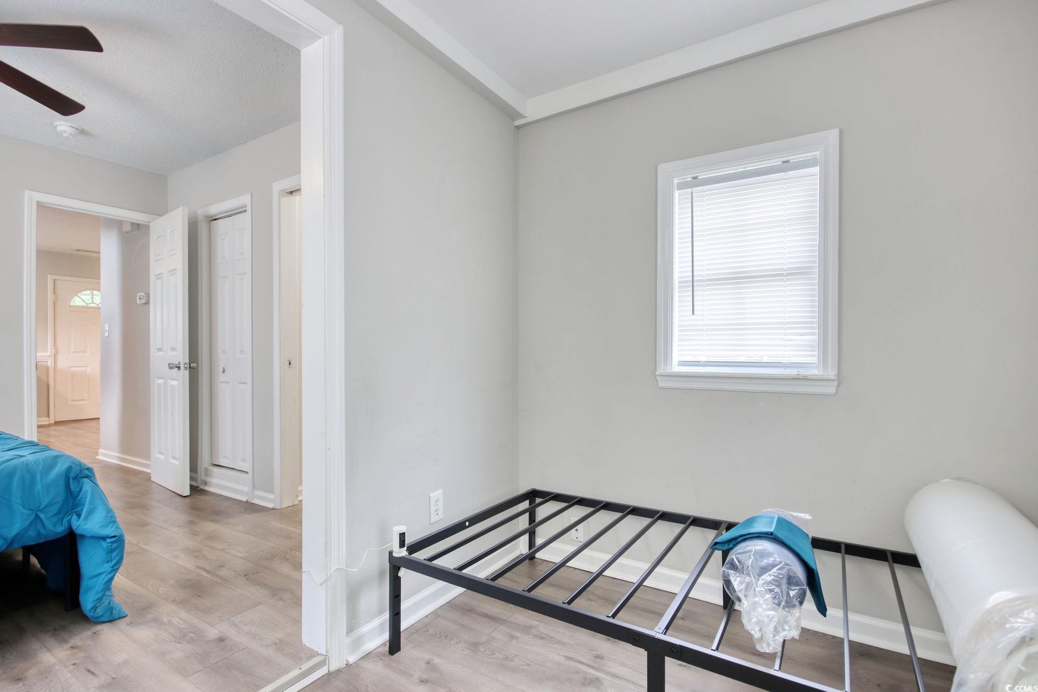 Welcome to the Farmington community, ideally located near Arrowhead Golf Course just off Burcale Road. This neighborhood offers convenient access to Coastal Grand Mall, Tanger Outlets, and is only a short drive from the beach. This charming 3-bedroom, 2-bathroom two-story home features beautiful flooring throughout, stainless steel appliances, stylish tile showers, and ample closet space. You'll find two bedrooms upstairs and one on the main floor, offering flexible living options. Situated on a desirable corner lot, the home also includes a detached two-car garage with overhead storage, a welcoming front porch, a spacious driveway, and an upstairs balcony overlooking the front yard.
